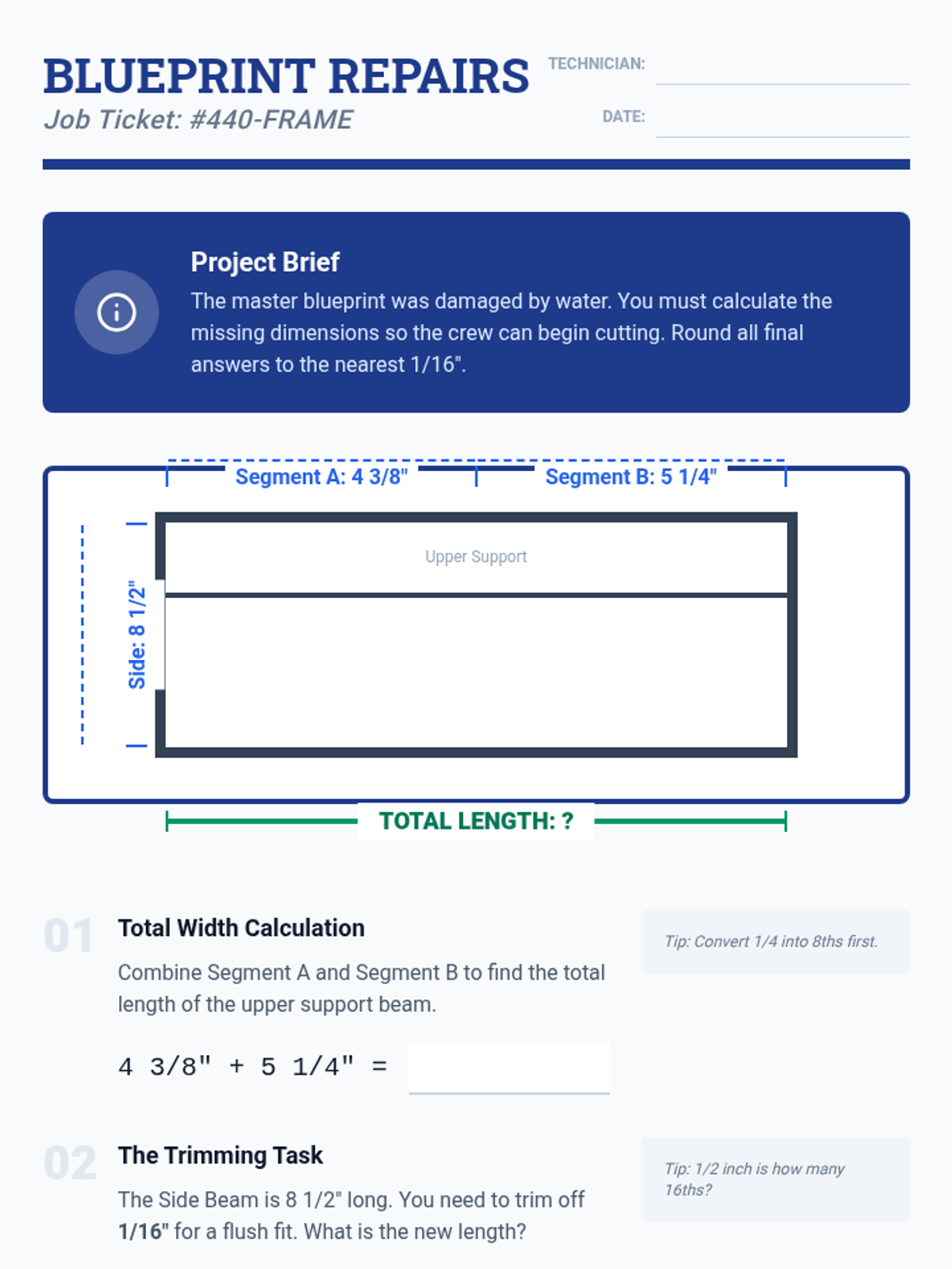 A specialized math sequence for 11th-grade students focusing on practical fraction operations and ratios through the lens of construction and design. Students move from basic measurement precision to complex scaling tasks using physical manipulatives like tape measures and Cuisenaire rods.