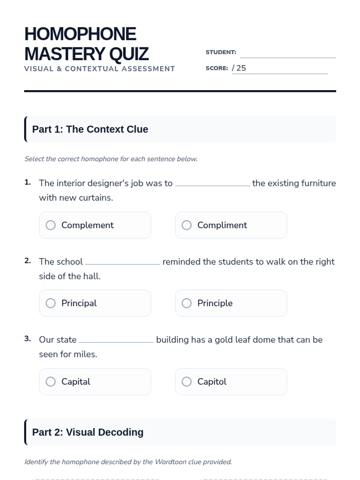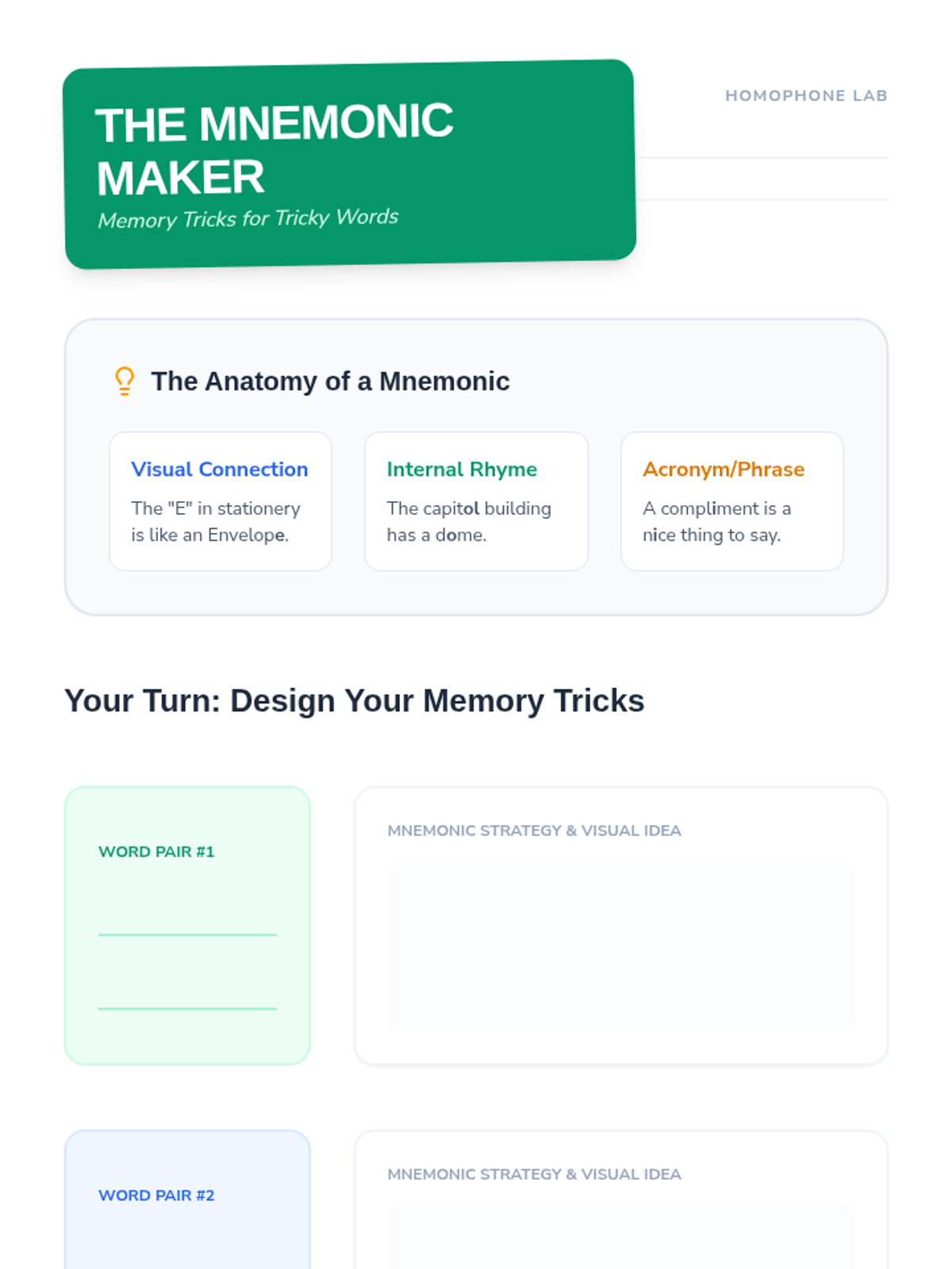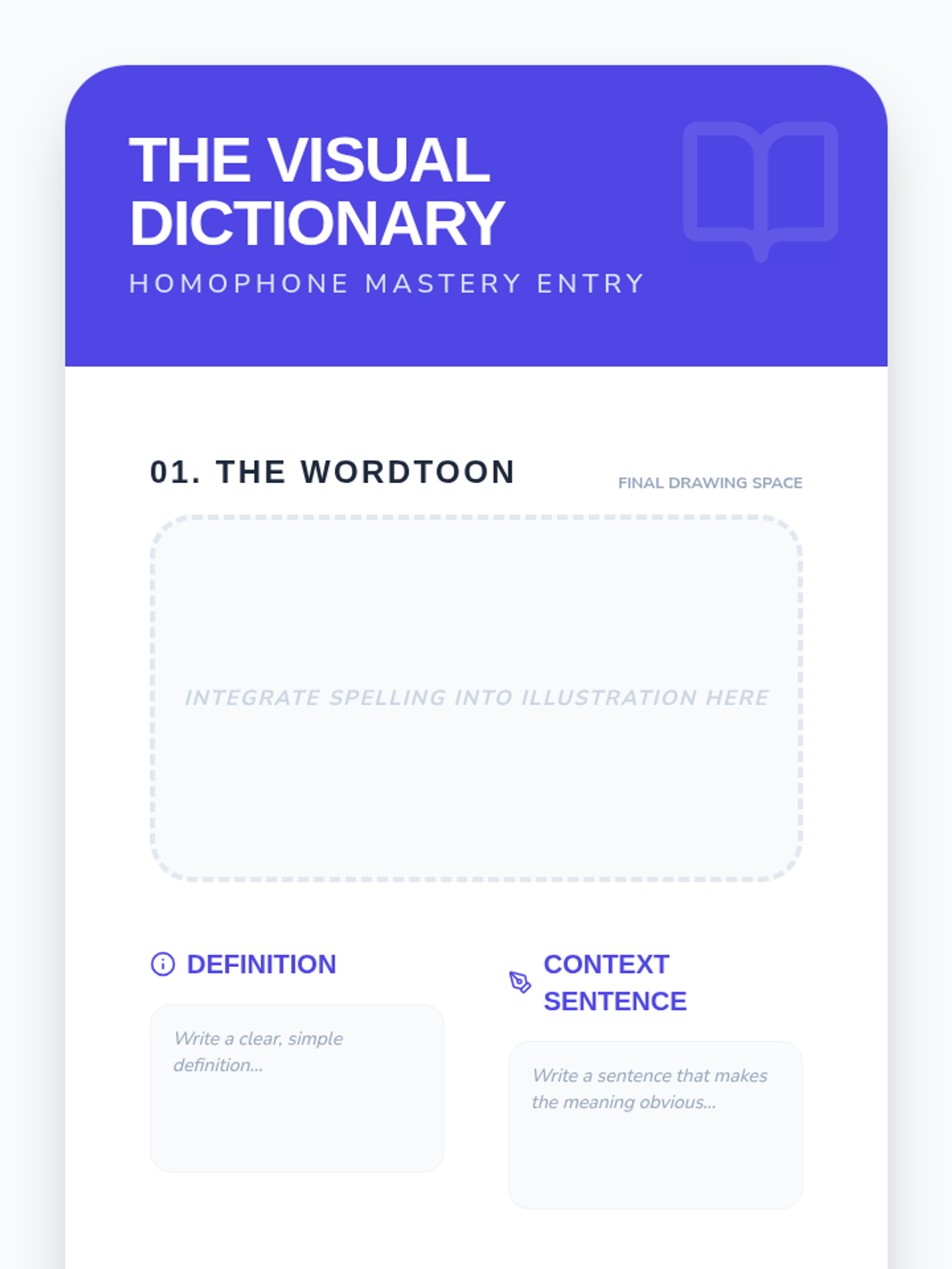 A project-based ELA sequence for 6th graders to master complex homophones through visual associations, etymology, and mnemonic devices. Students move from diagnosing personal errors to creating a collaborative visual dictionary.