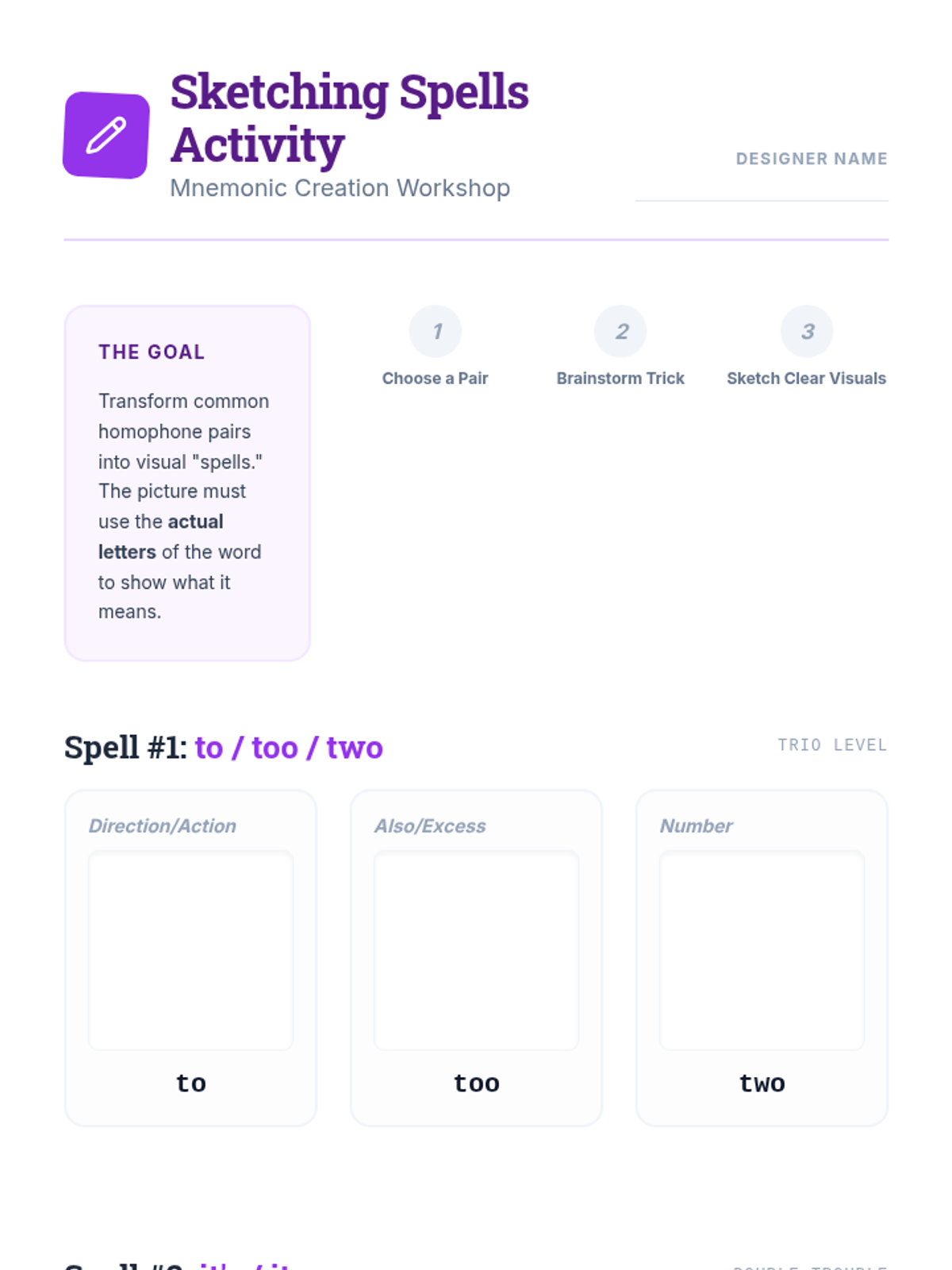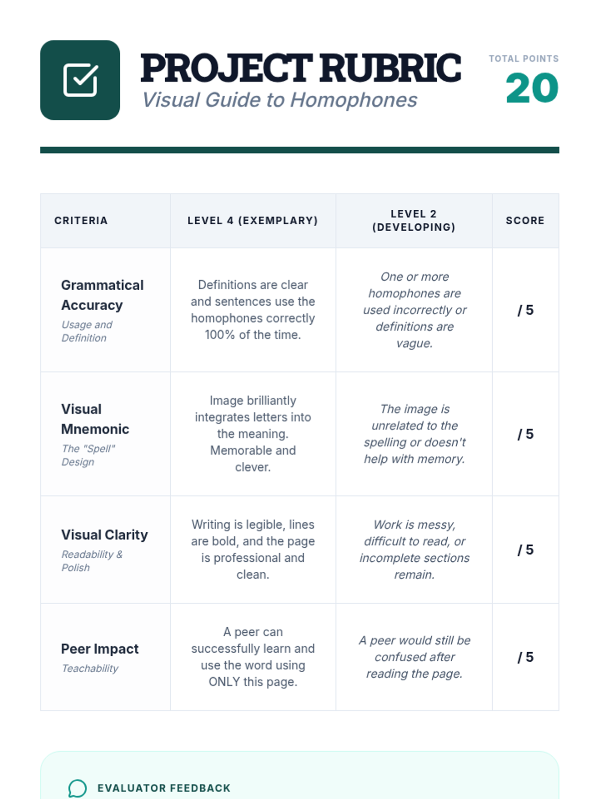 A 5-lesson sequence for 6th Grade students focused on mastering homophones through visual mnemonics, error analysis, and project-based design. Students move from identifying real-world grammar fails to creating their own visual dictionary of commonly confused words.