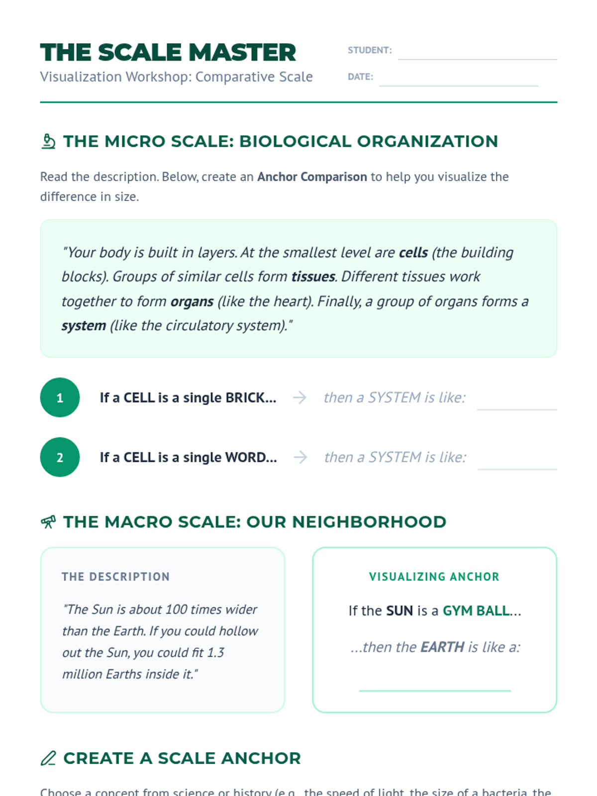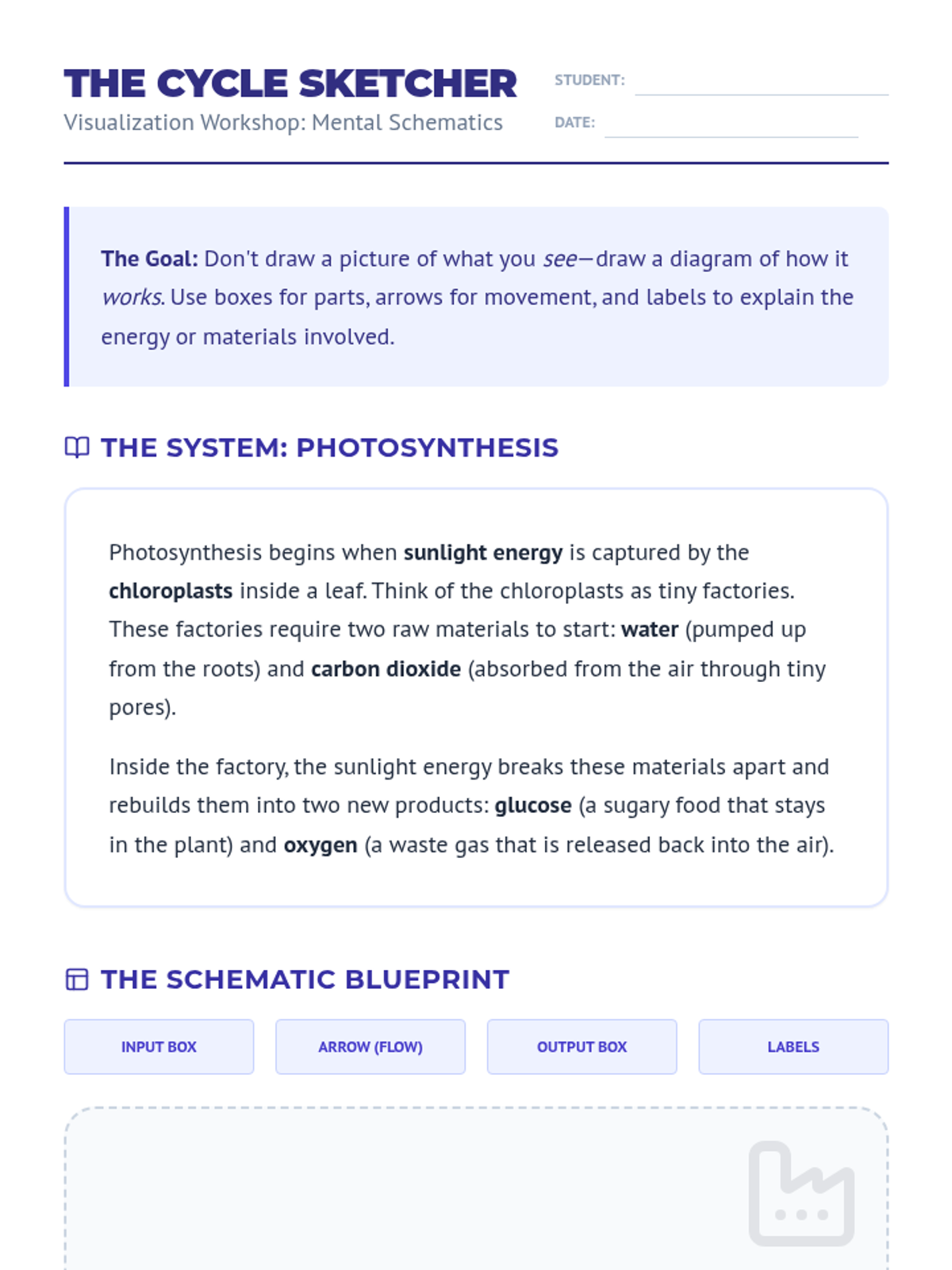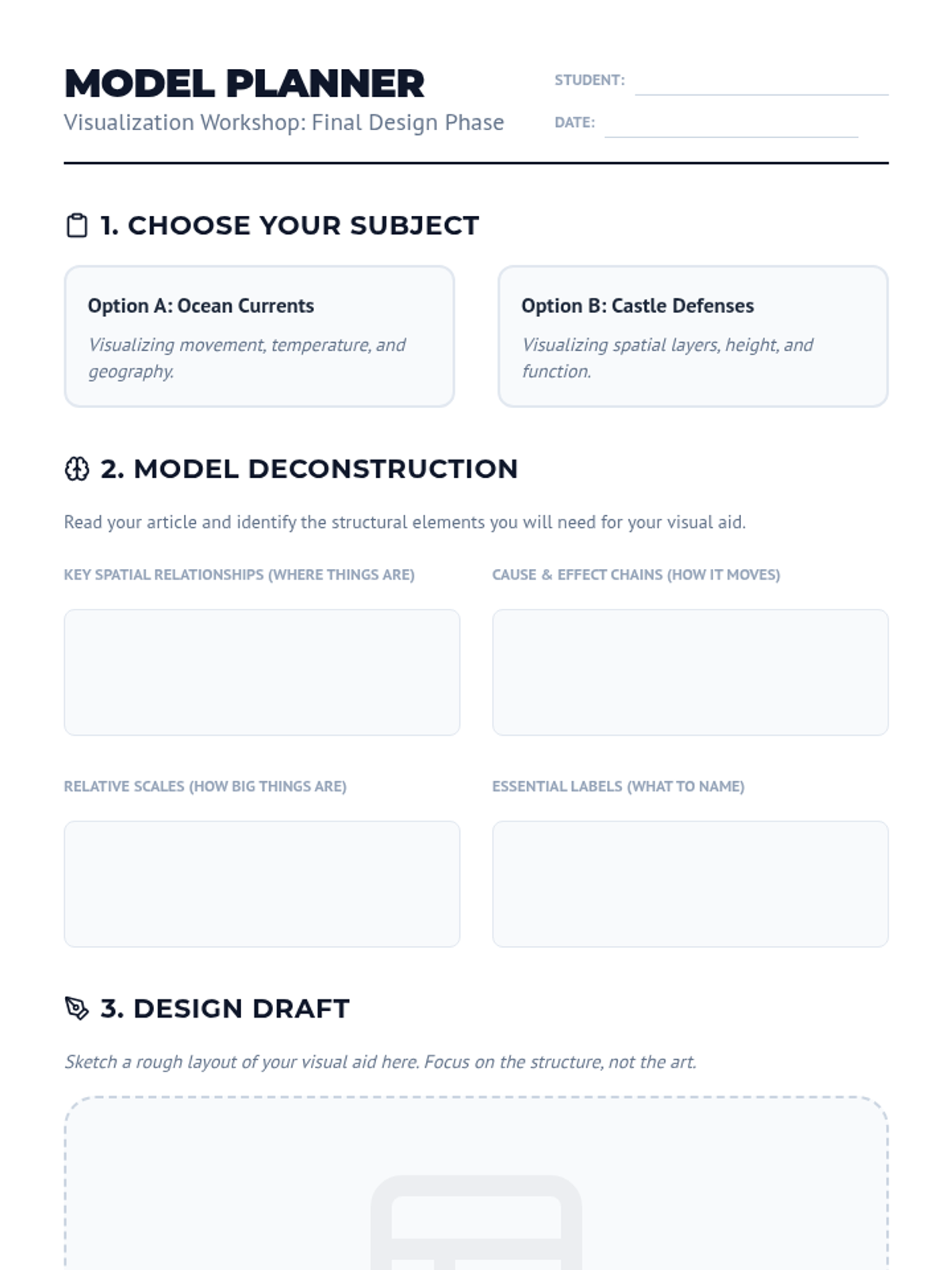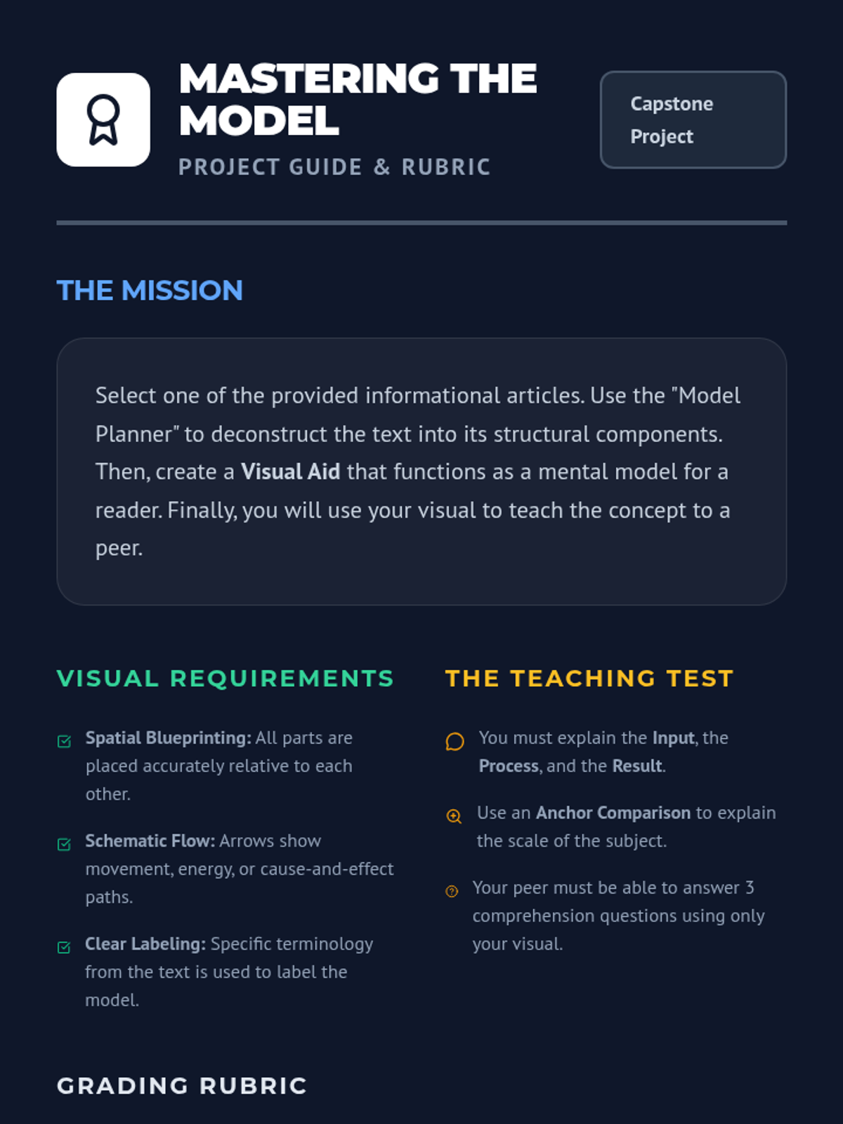 A 5-lesson sequence for 6th-grade students focused on using visualization strategies to understand informational texts, including spatial relationships, schematic diagrams, cause-and-effect flowcharts, and concepts of scale. Students move from sensory imagery to building mental models of complex systems and processes.