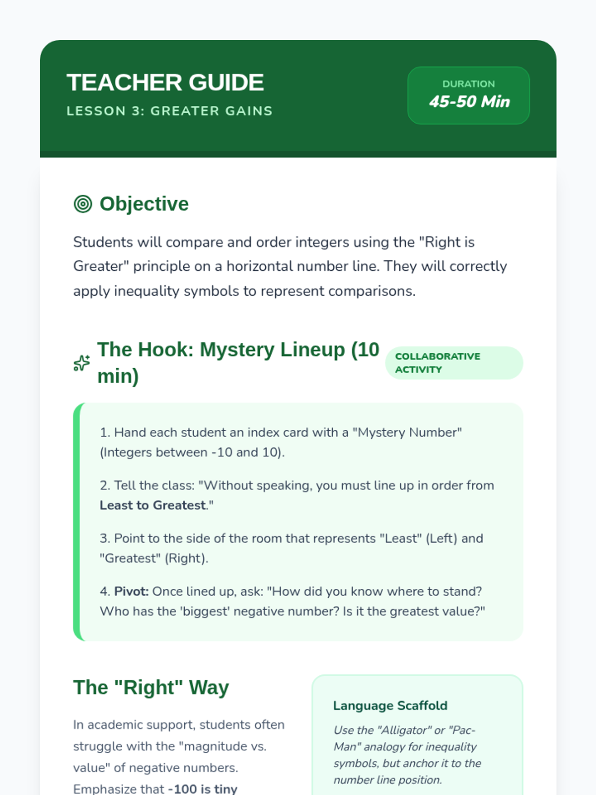 A 12-lesson Tier 2 intervention series focused on 6th-grade Expressions and Equations. Using the All Learners Network (ALN) High Leverage Concepts, students build conceptual understanding of variables, equality as balance, and the structure of expressions through number sense routines and low-floor, high-ceiling tasks.