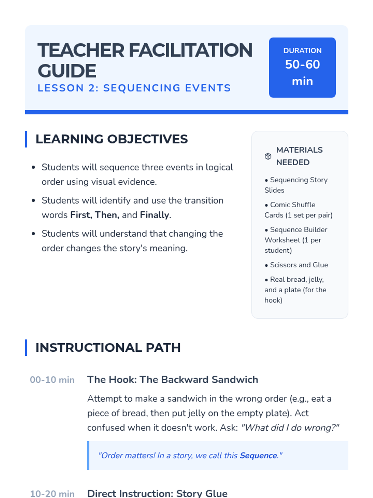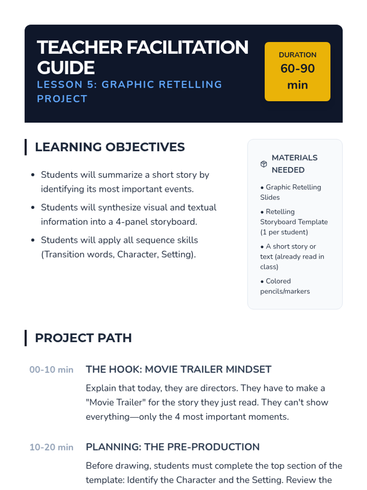 A 5-lesson sequence for 6th-grade ELL beginners focusing on visual literacy, sequencing, character analysis, and retelling through graphic narratives. Students build comprehension skills by 'reading' images and patterns before transitioning to text-based analysis.