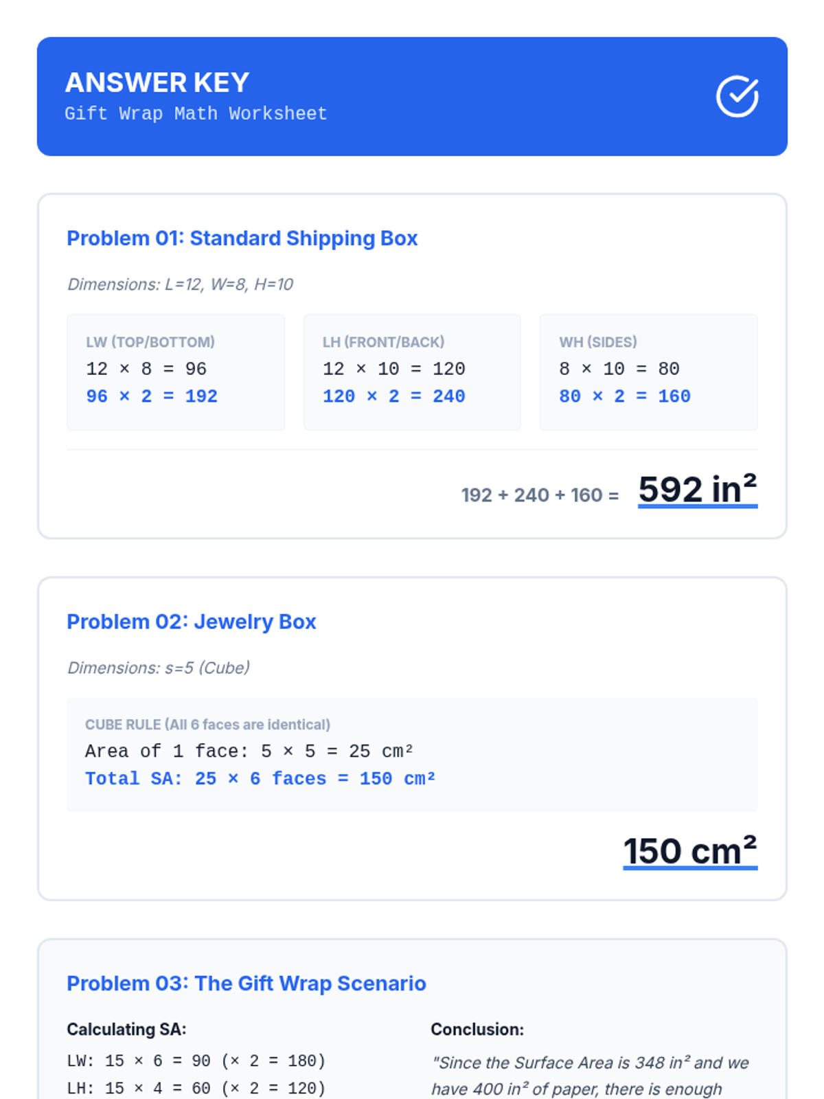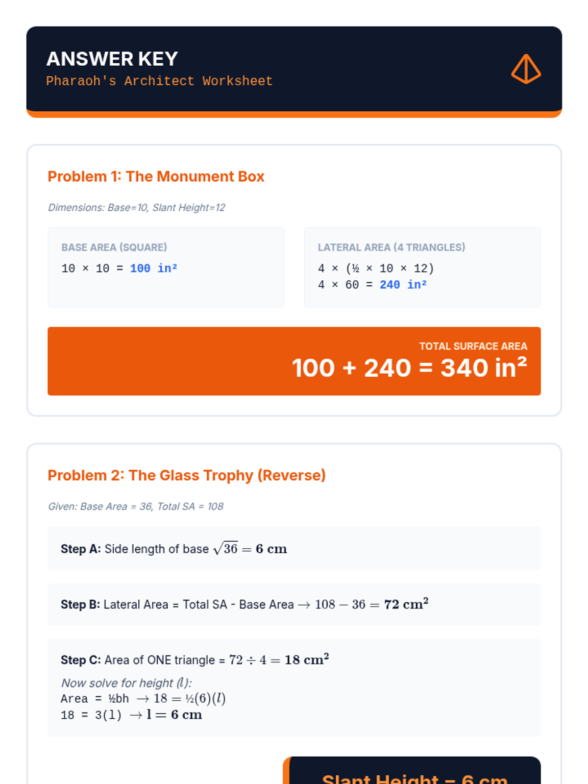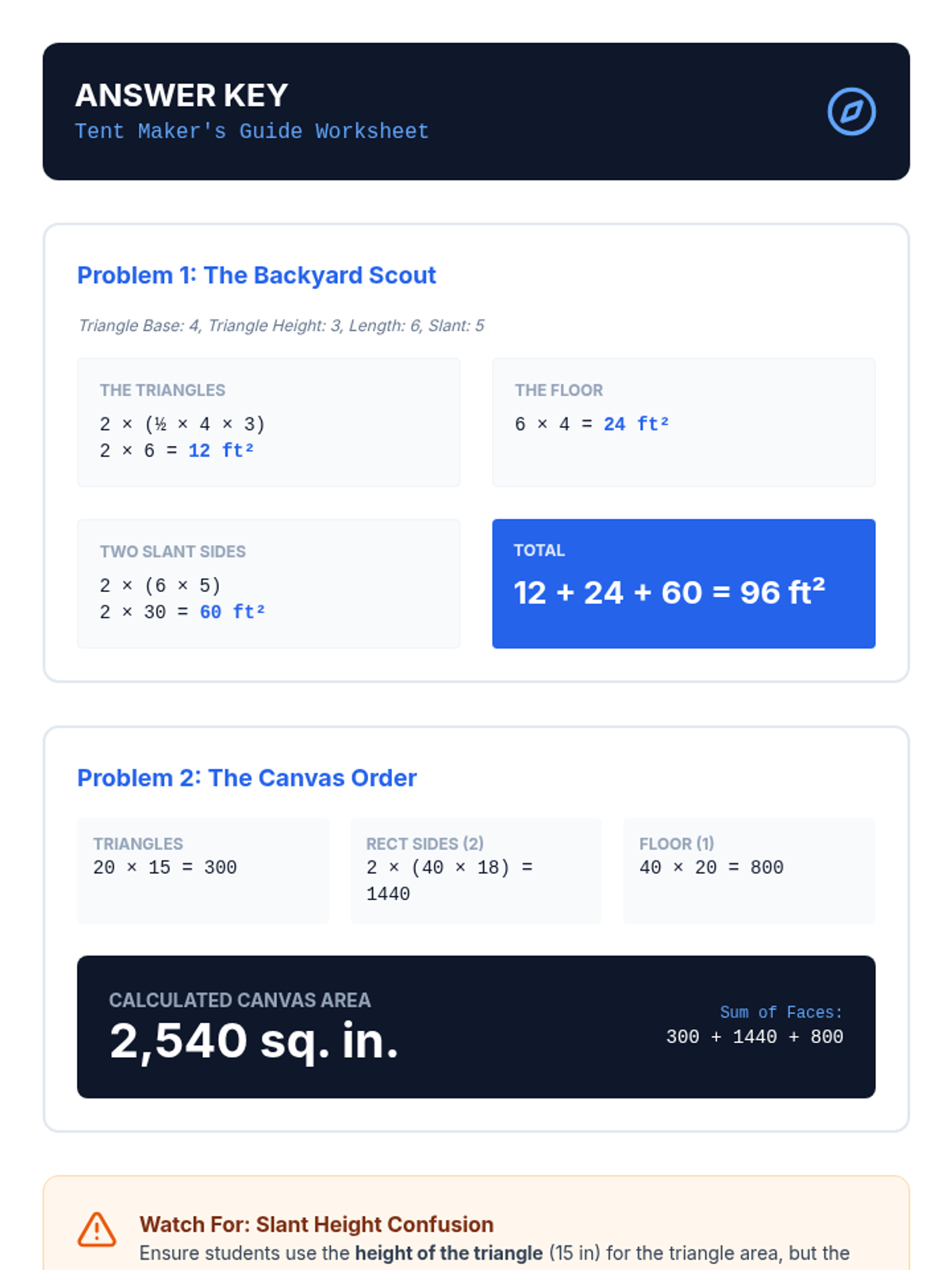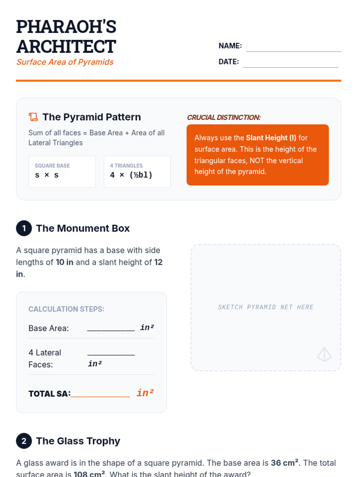 This sequence builds spatial reasoning by connecting 2D nets to 3D surface area. Students move from physical deconstruction of boxes to calculating surface area for rectangular prisms, triangular prisms, and pyramids, culminating in a packaging optimization challenge.