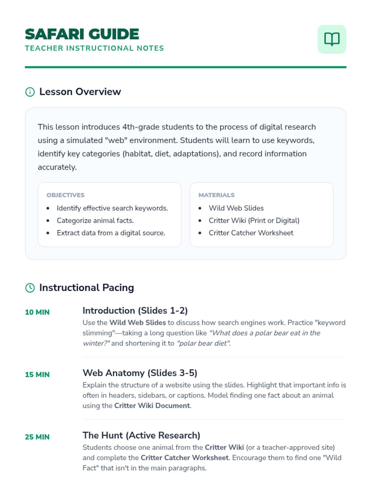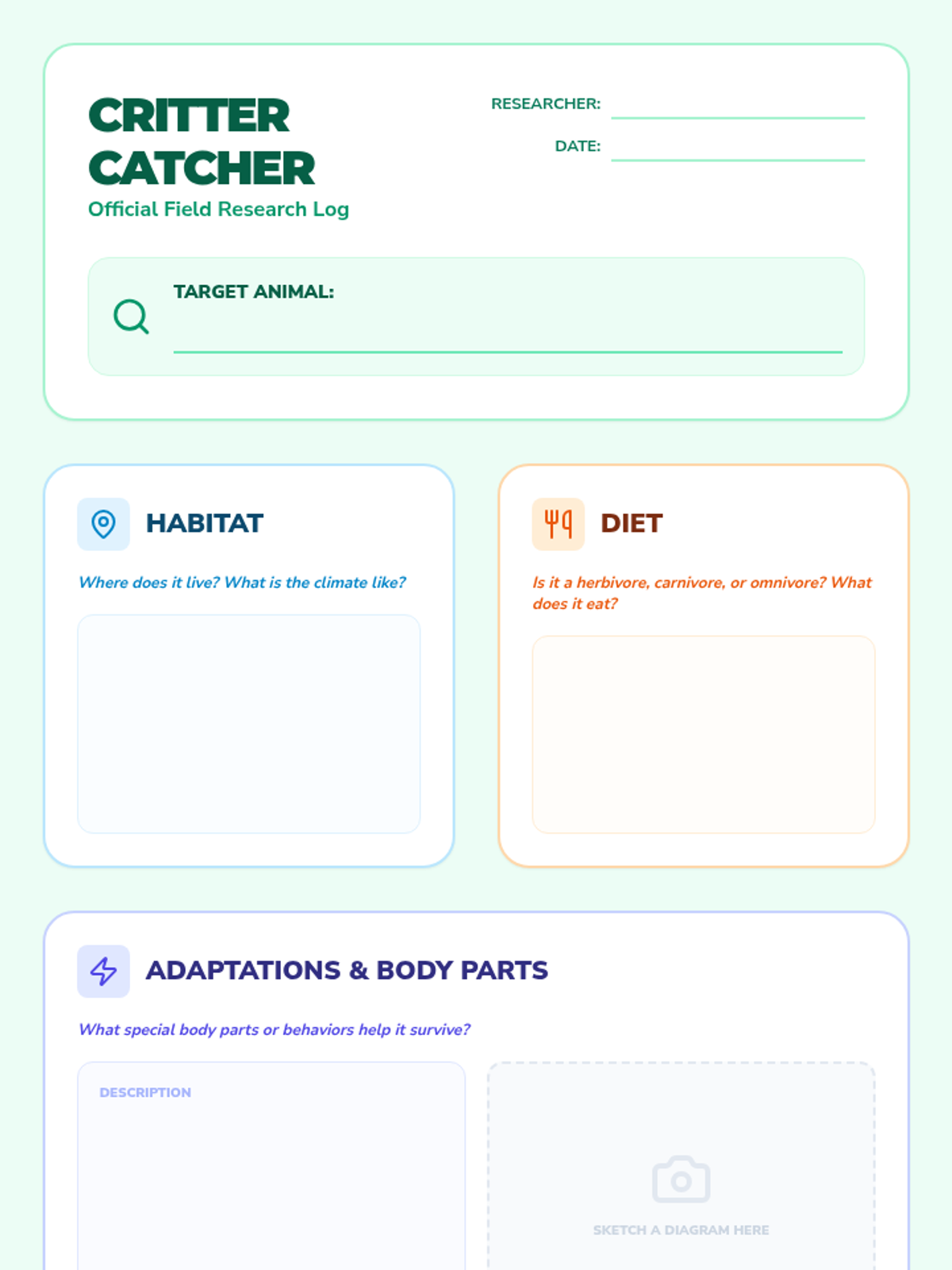 A unit focused on animal adaptations, habitats, and the research process for 4th-grade students, guiding them from initial curiosity to a finished research profile.
