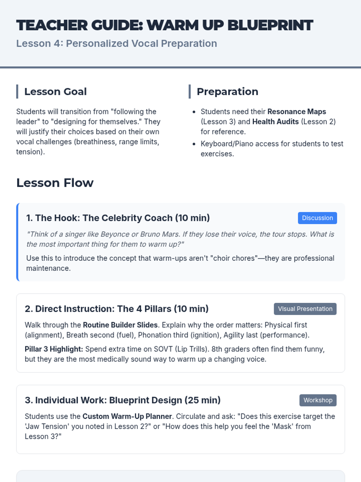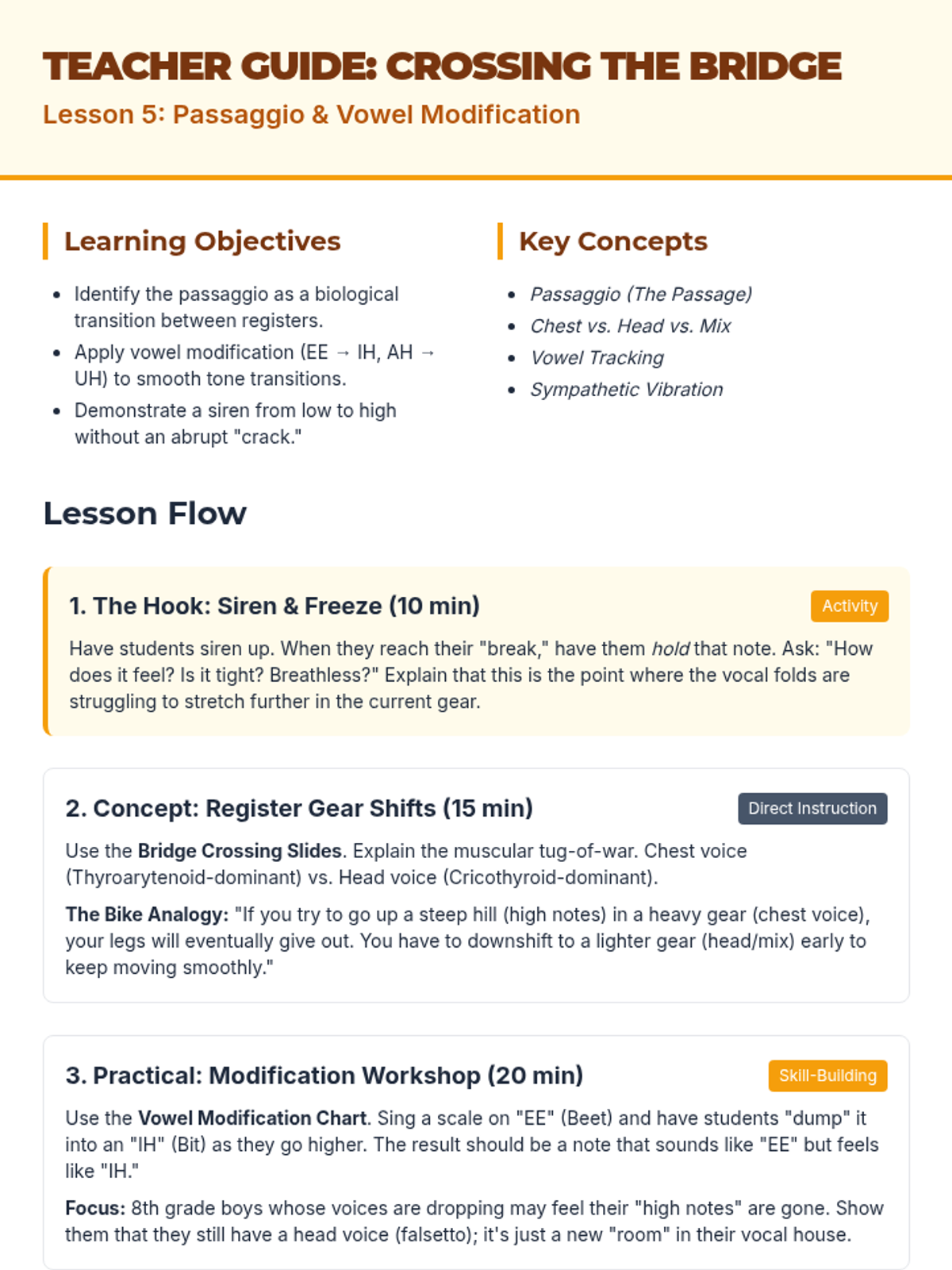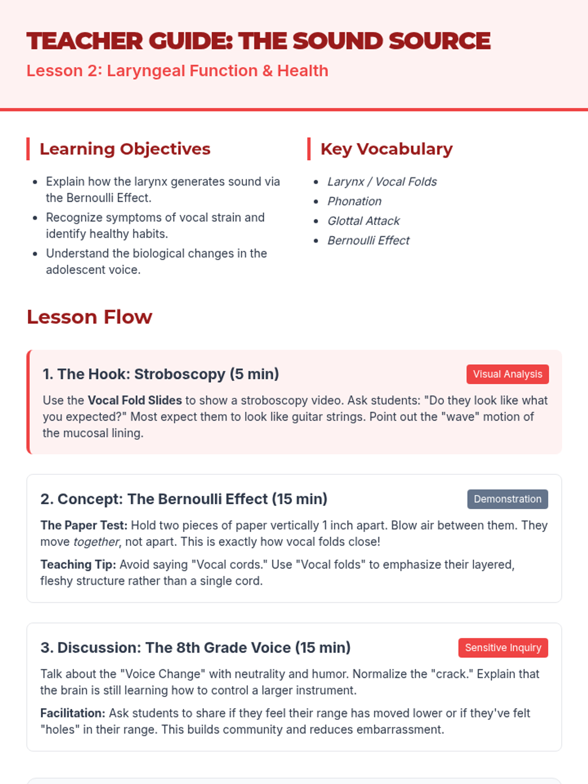 A comprehensive 5-lesson unit for 8th-grade choir students exploring the biological and physical aspects of singing, from breath management to vocal health and resonance.