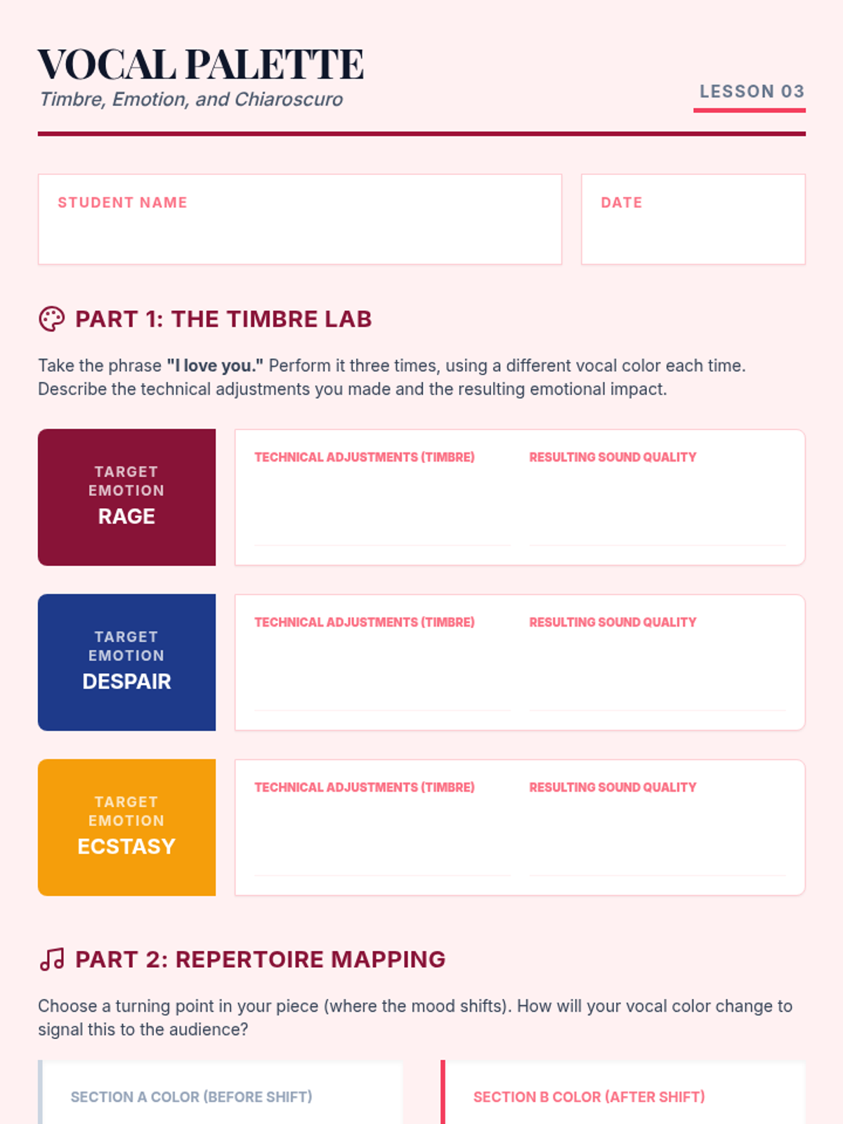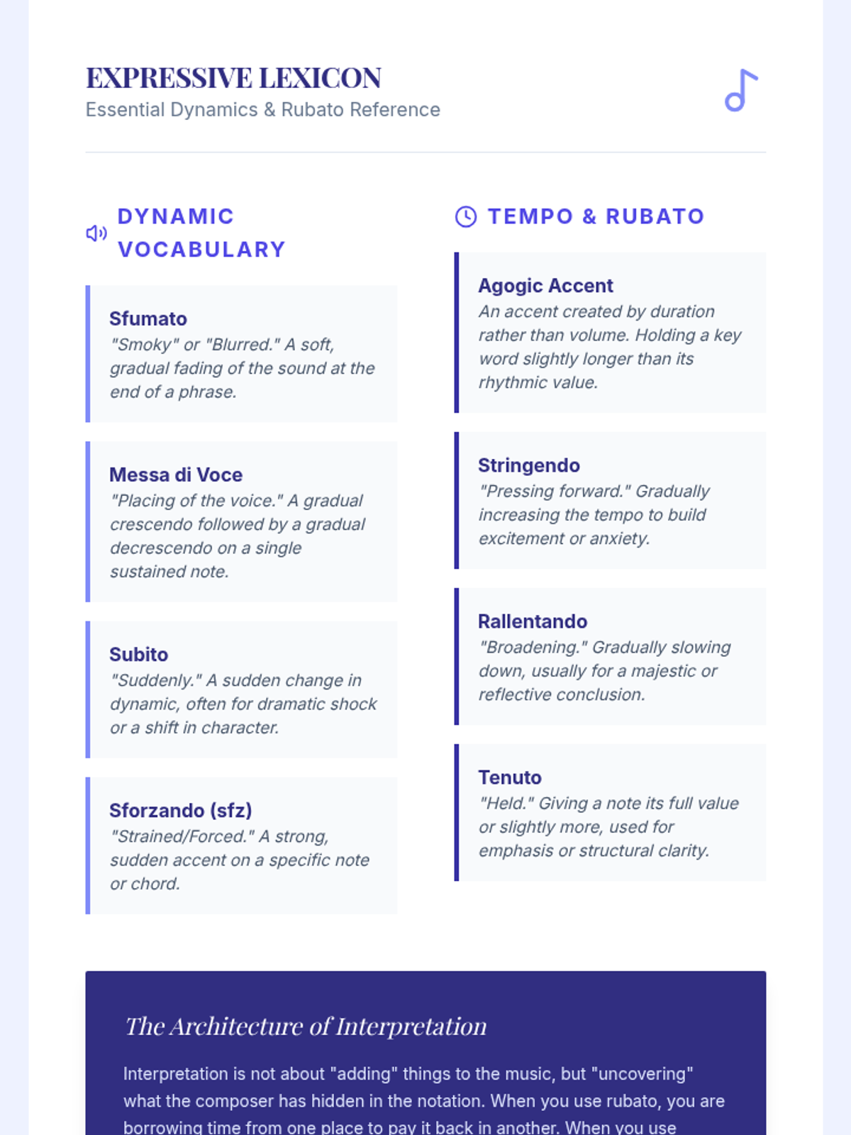 A comprehensive undergraduate sequence bridging technical vocal proficiency with artistic interpretation through text analysis, phrasing, timbre, and historical context.