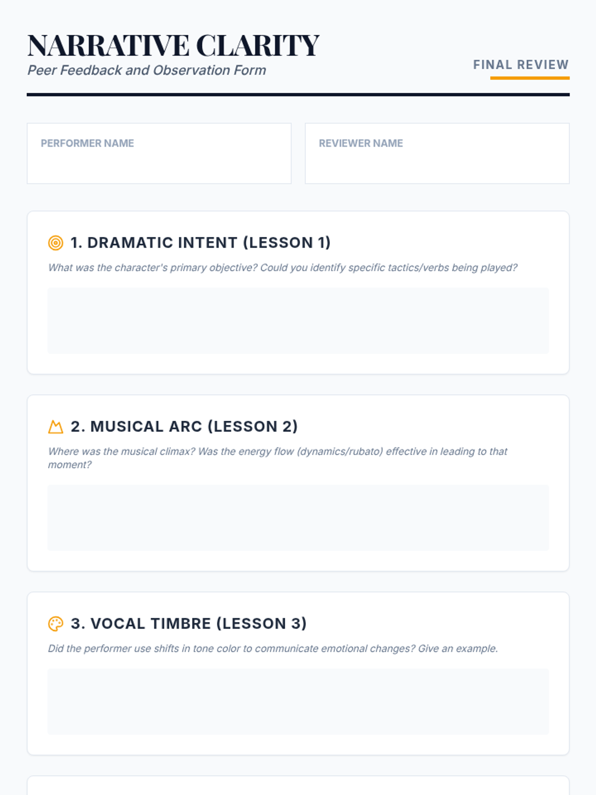 An advanced playwriting module for graduate students focusing on non-linear, fragmented, and experimental dramatic structures. Students interrogate traditional narrative shapes and develop a comprehensive structural blueprint for a full-length experimental work.