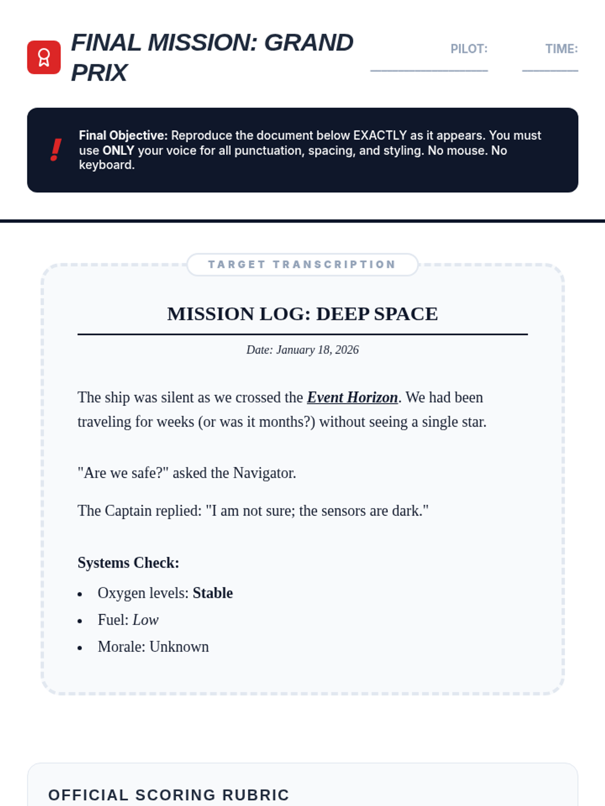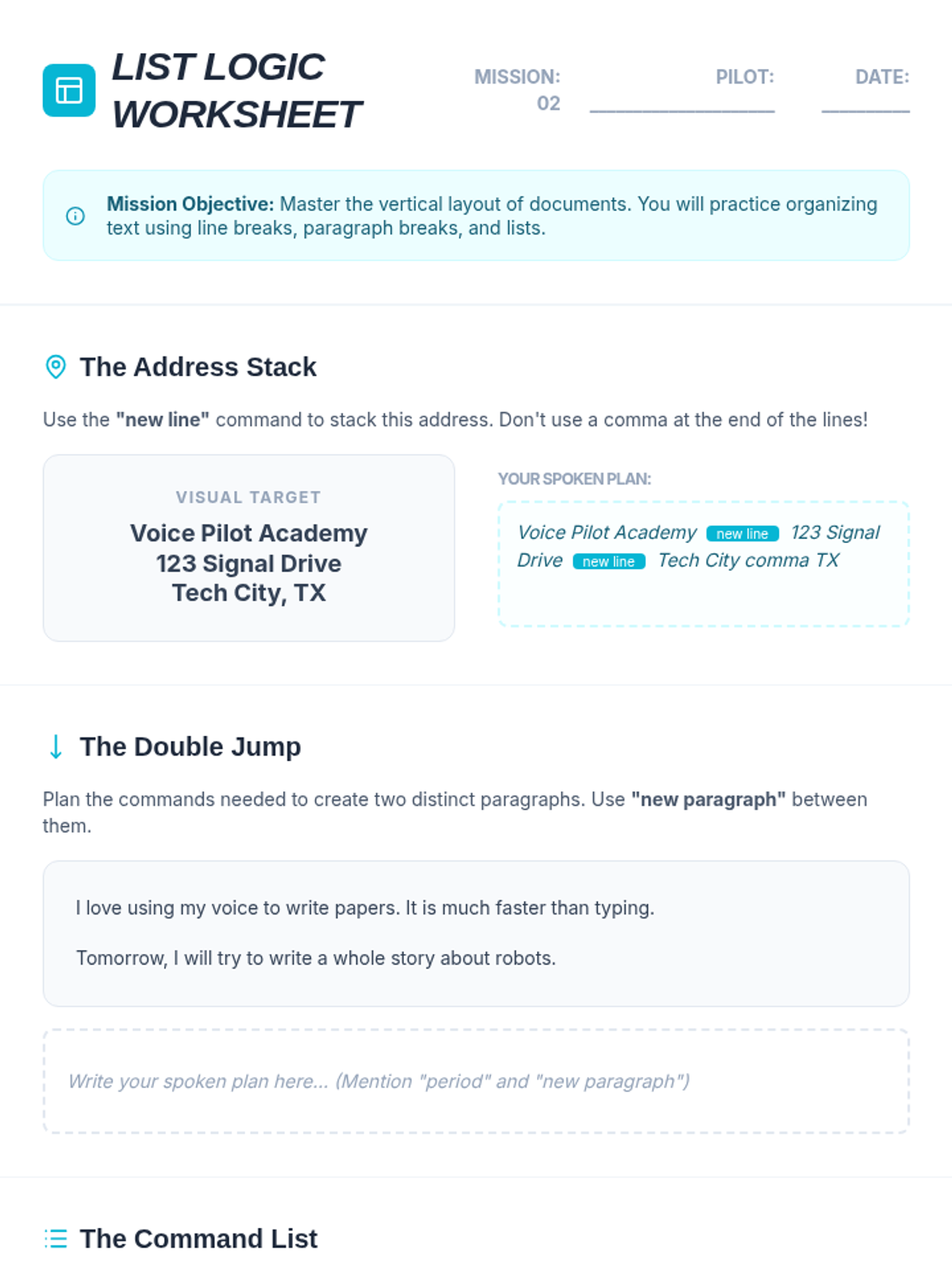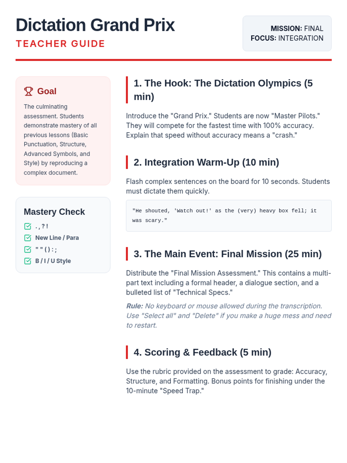 A comprehensive sequence for 7th graders to master assistive technology through speech-to-text punctuation and formatting. Students progress from basic sentences to complex, hands-free document creation.