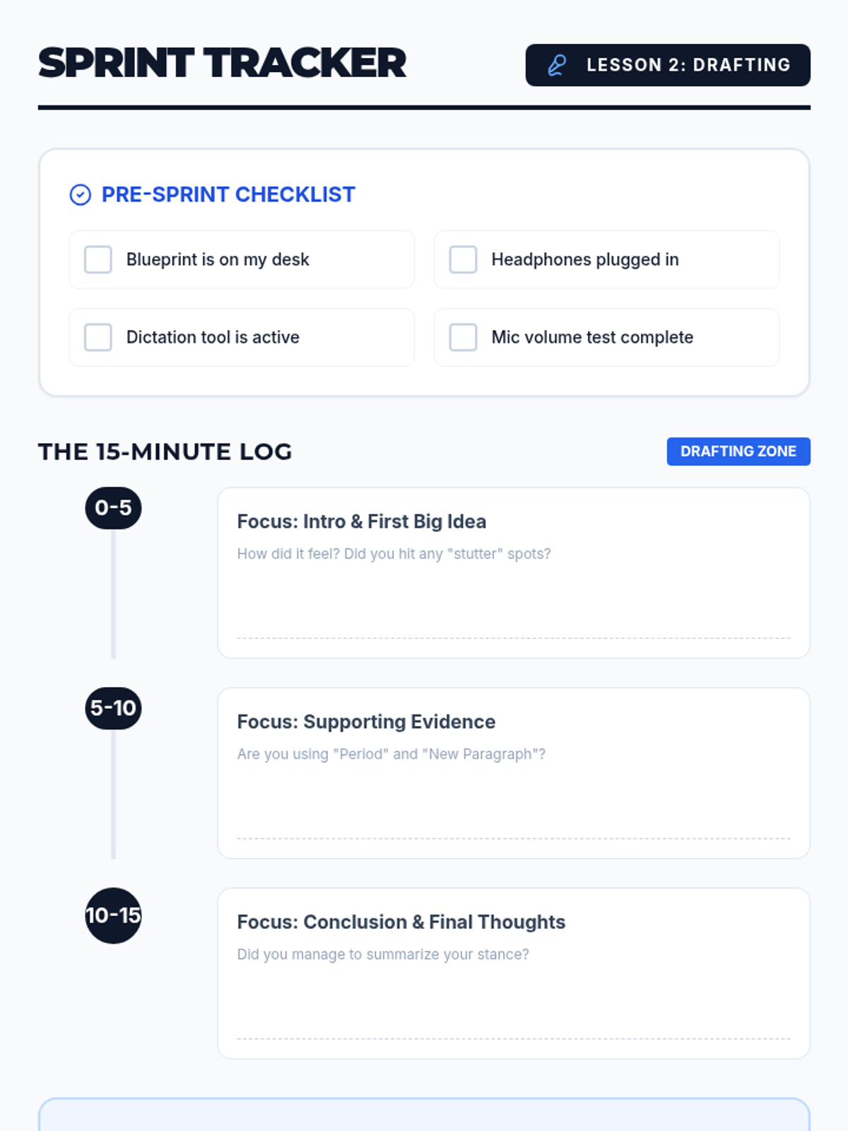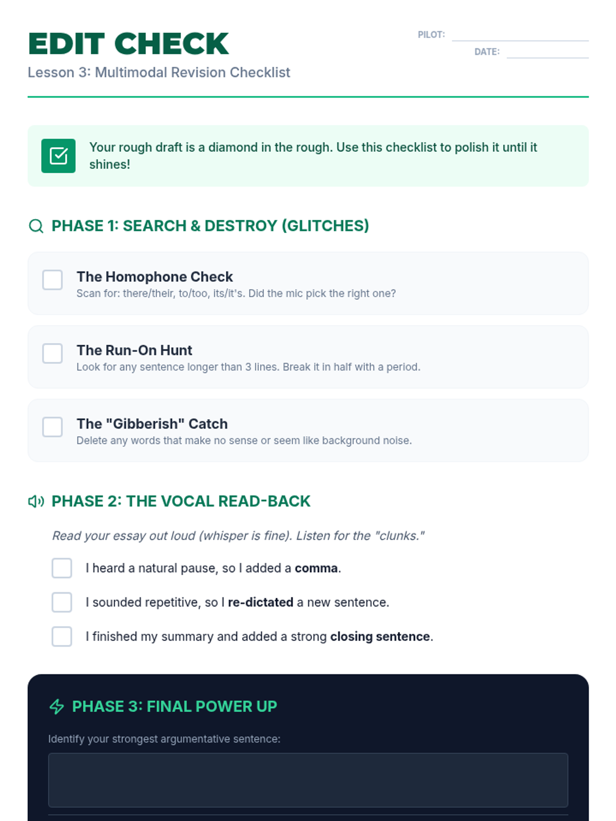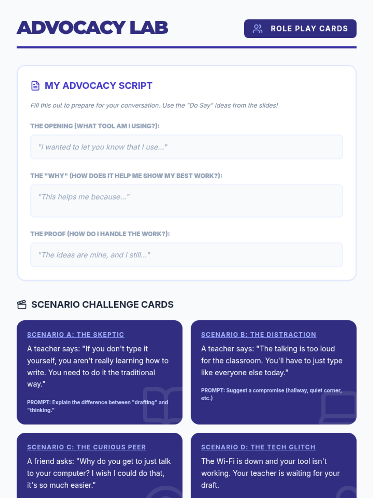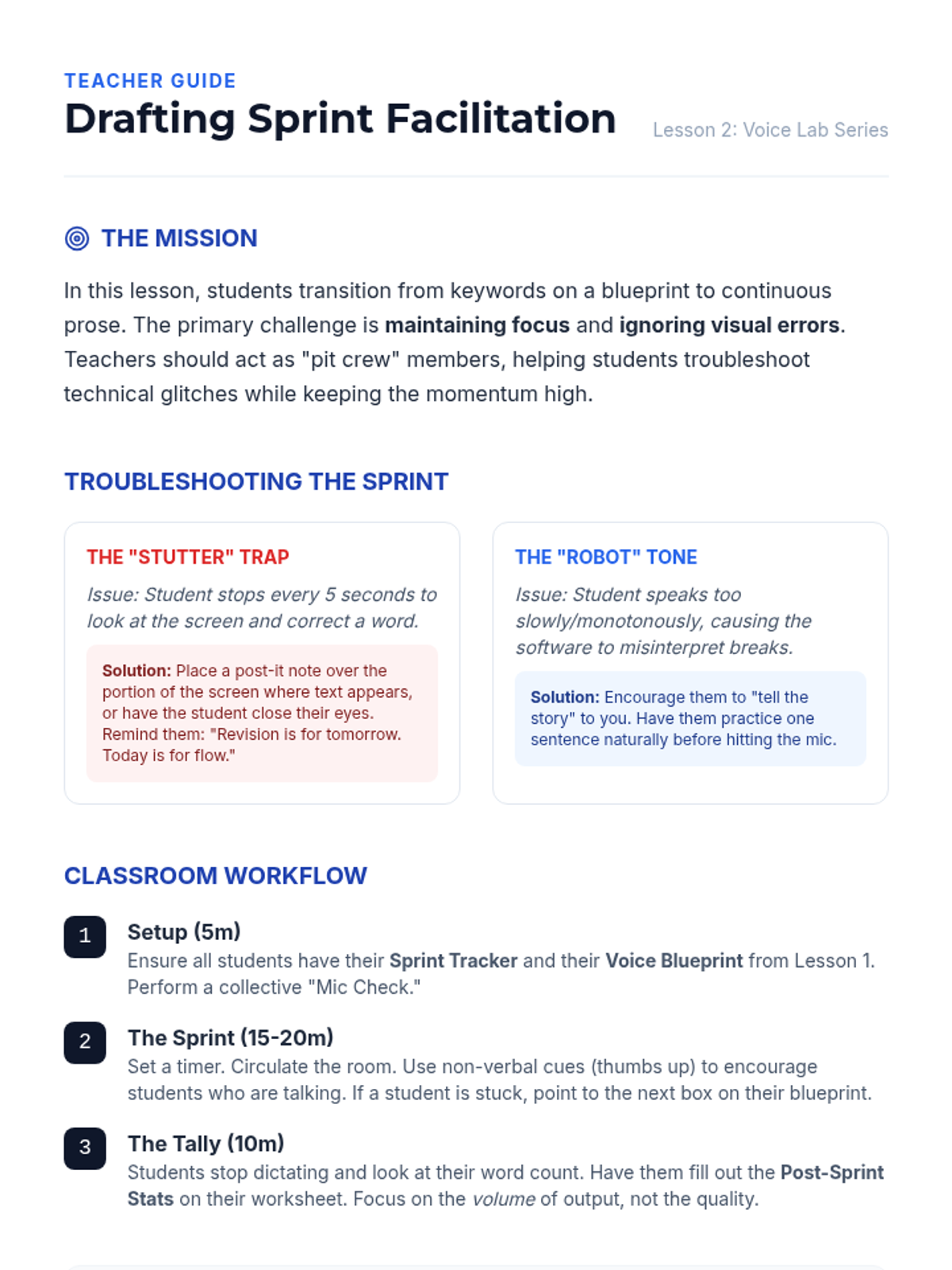 A sequence for 8th-grade students to master speech-to-text technology for academic writing, moving from oral planning to independent drafting and self-advocacy.