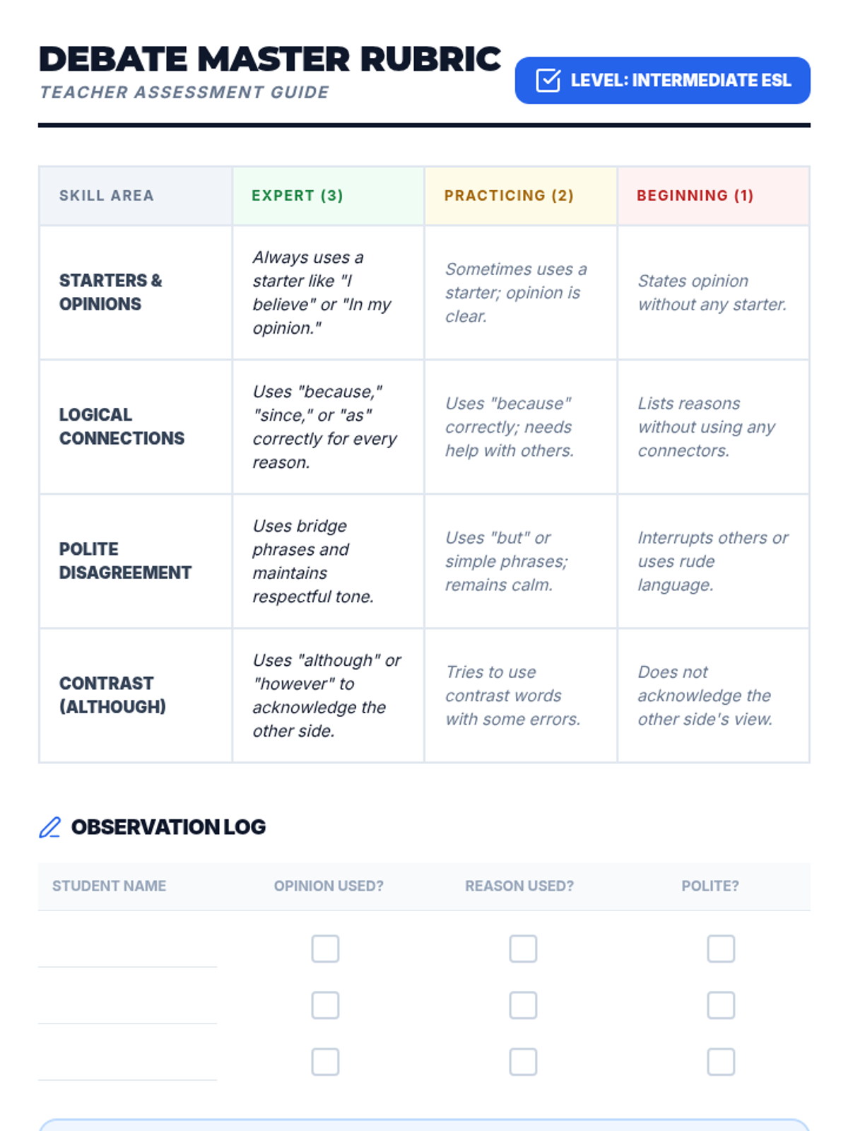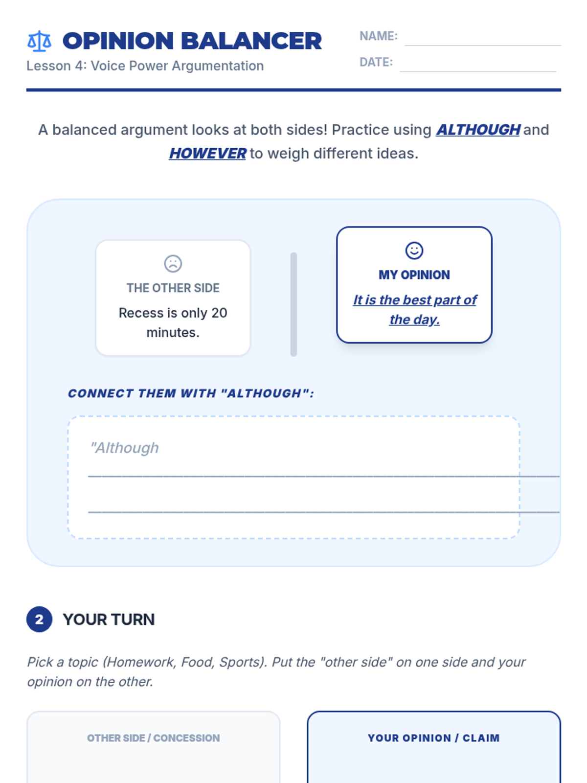 This sequence guides 3rd Grade ESL students through the process of forming opinions, justifying them with logic, and engaging in respectful debate using complex sentence structures.