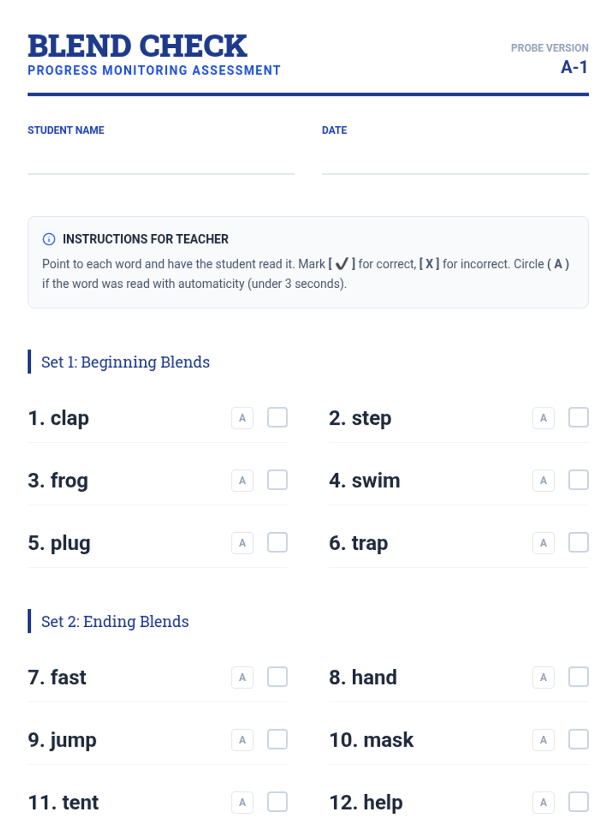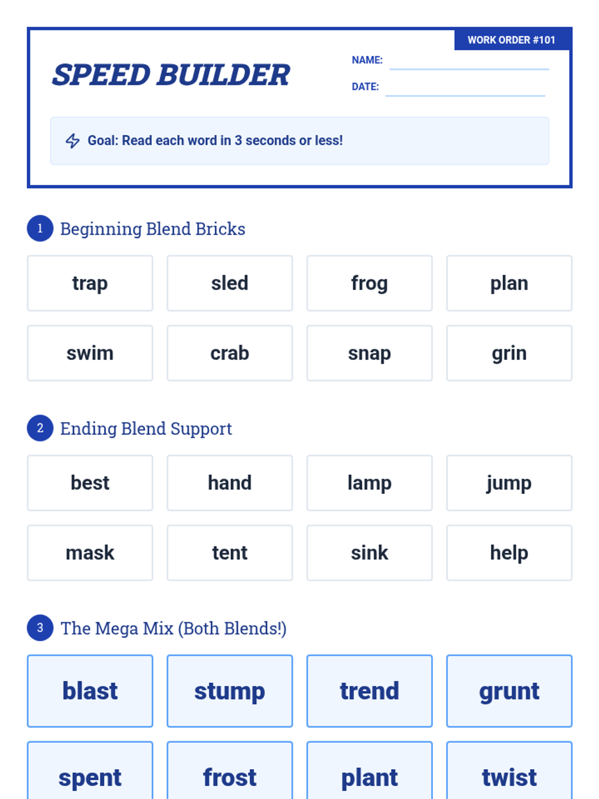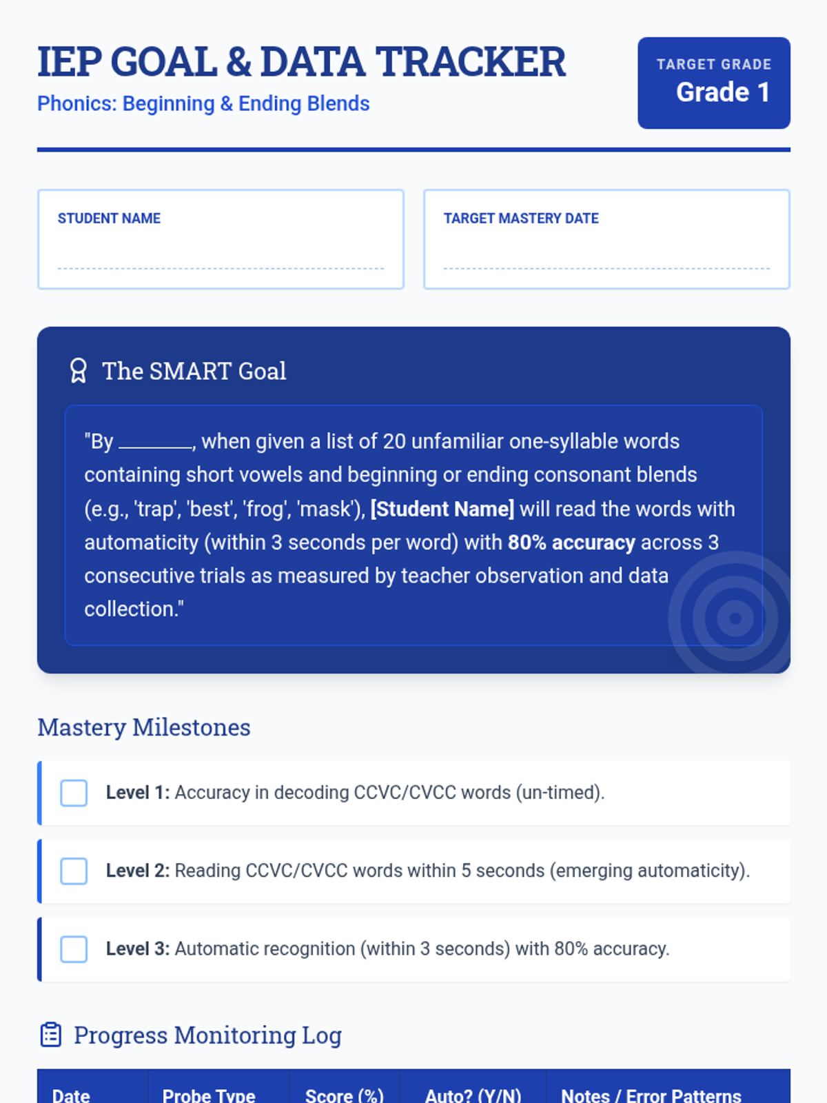 A series of targeted sessions designed to move students from slow decoding to automatic recognition of CVCC and CCVC words. This unit focuses on the specific phonics patterns required for 1st-grade foundational reading goals.