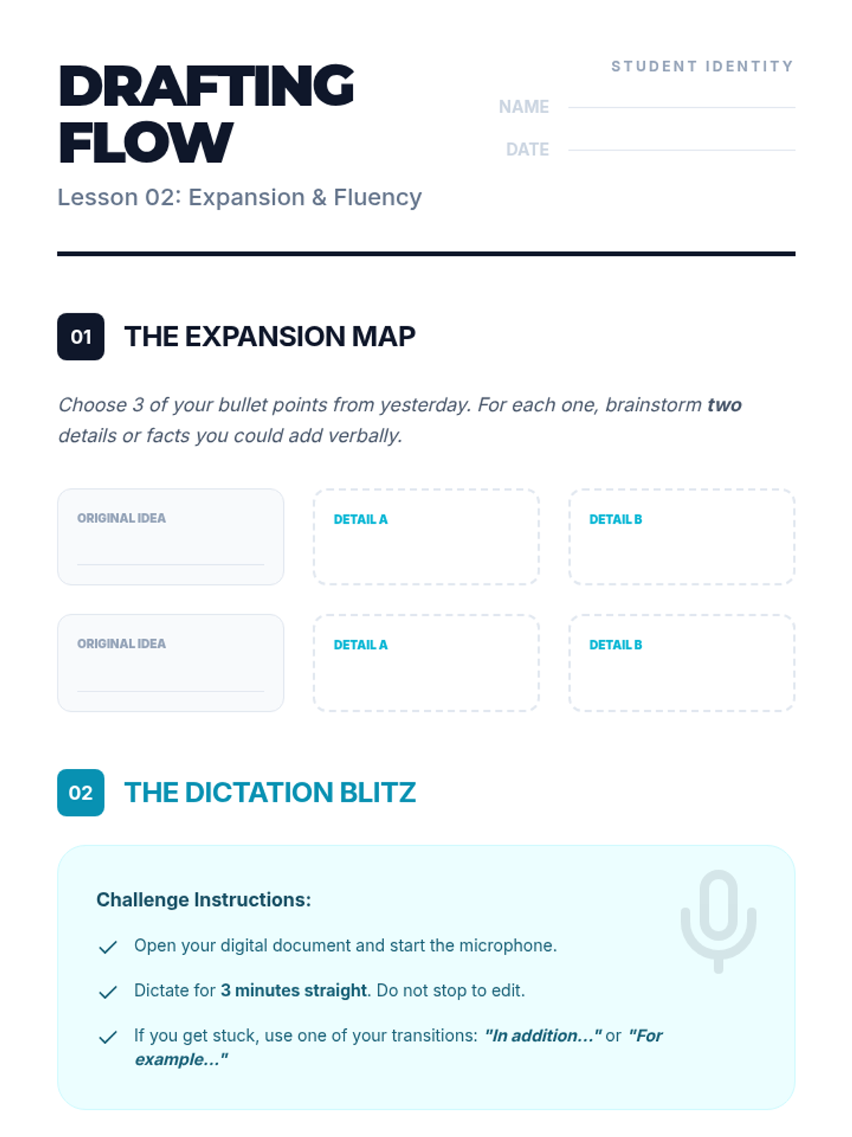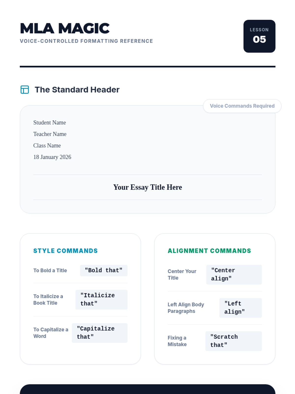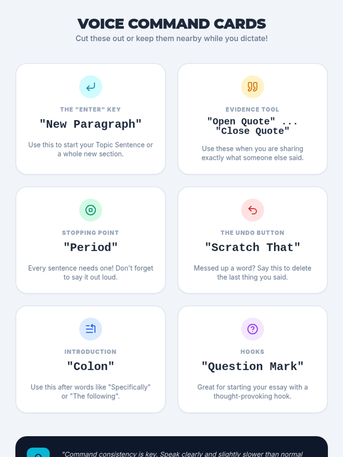This 5-lesson sequence guides 7th-grade students through the process of writing academic essays using speech-to-text assistive technology. It covers the entire writing process from rapid brainstorming and outlining to drafting, structuring arguments, and final formatting, all using voice commands.