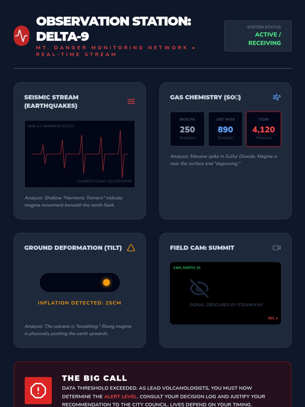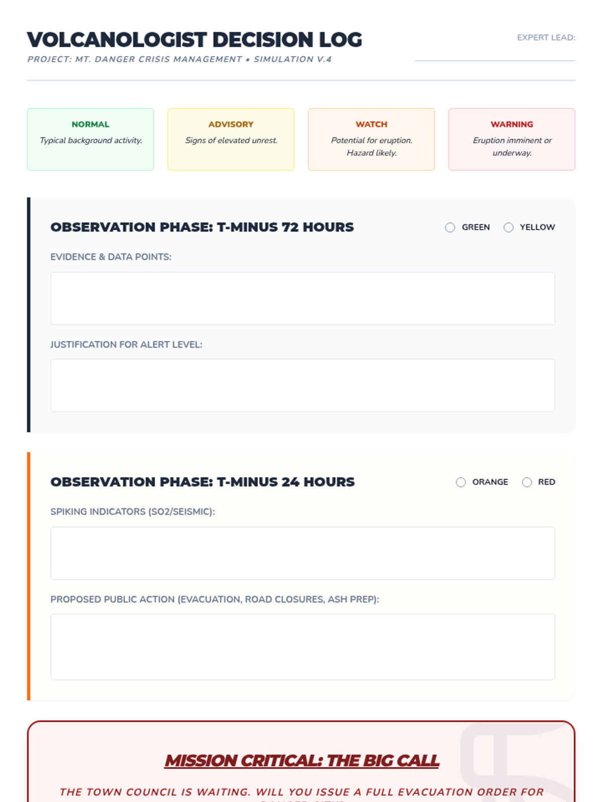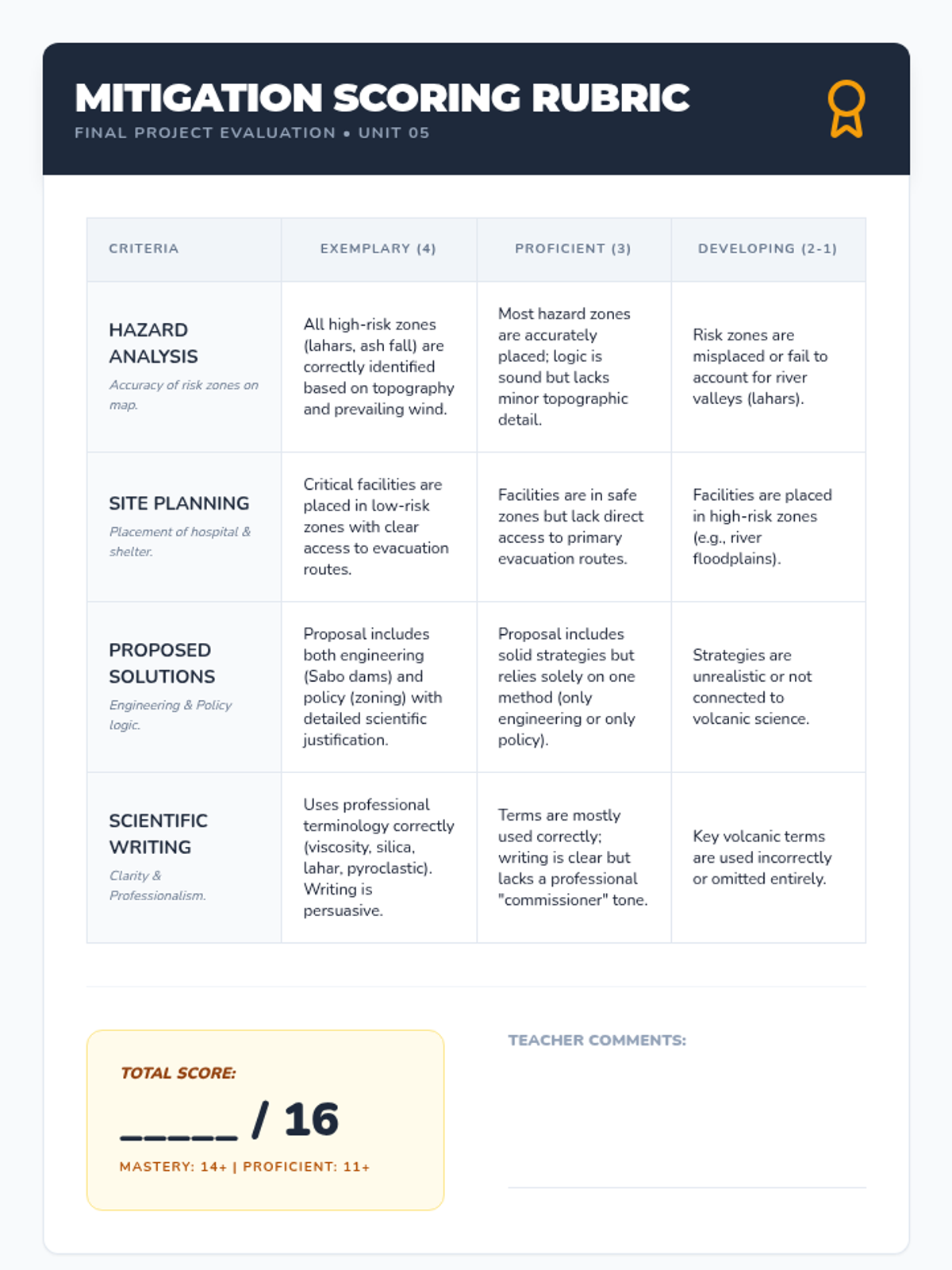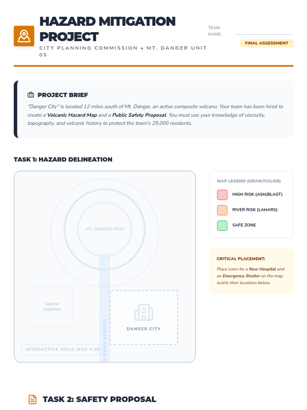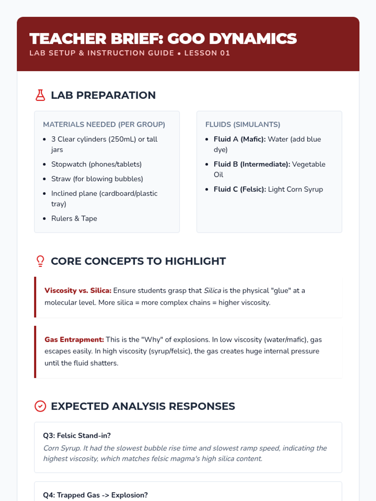 A comprehensive 8th-grade Earth Science unit exploring how magma chemistry dictates eruption styles, landform shapes, and community risk. Students progress from lab-based viscosity experiments to professional-level hazard mapping and monitoring simulations.