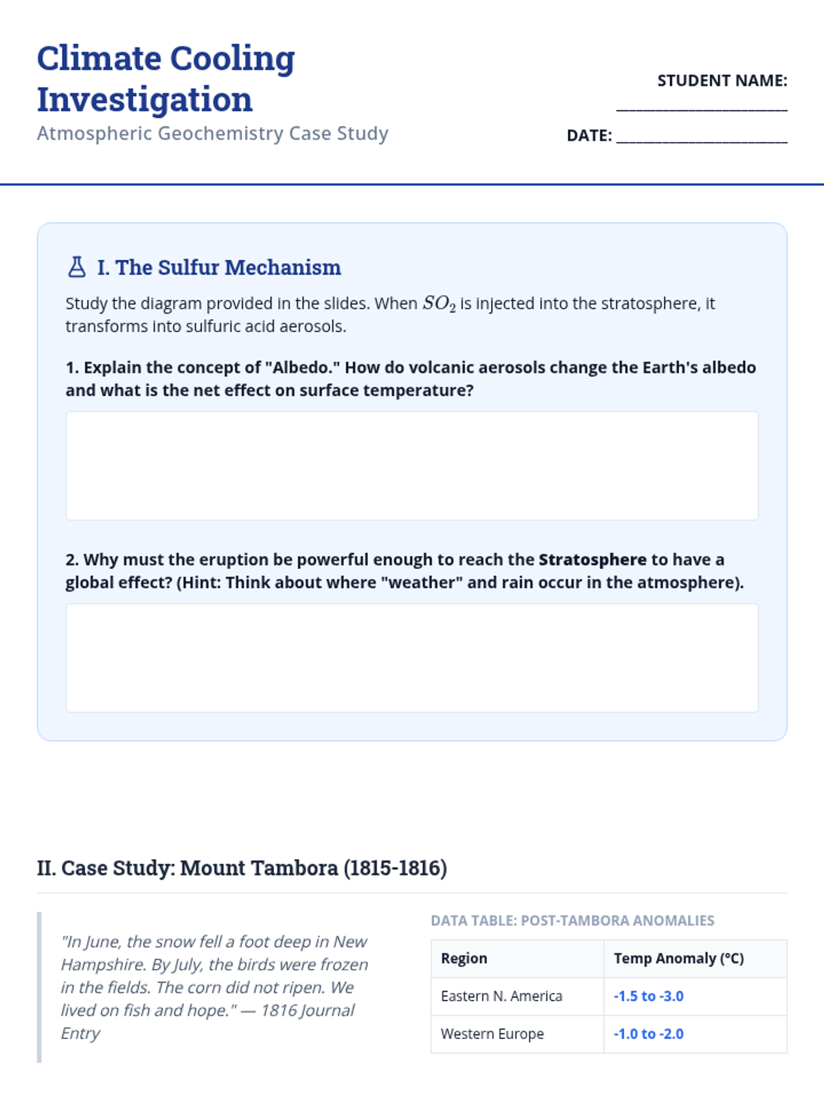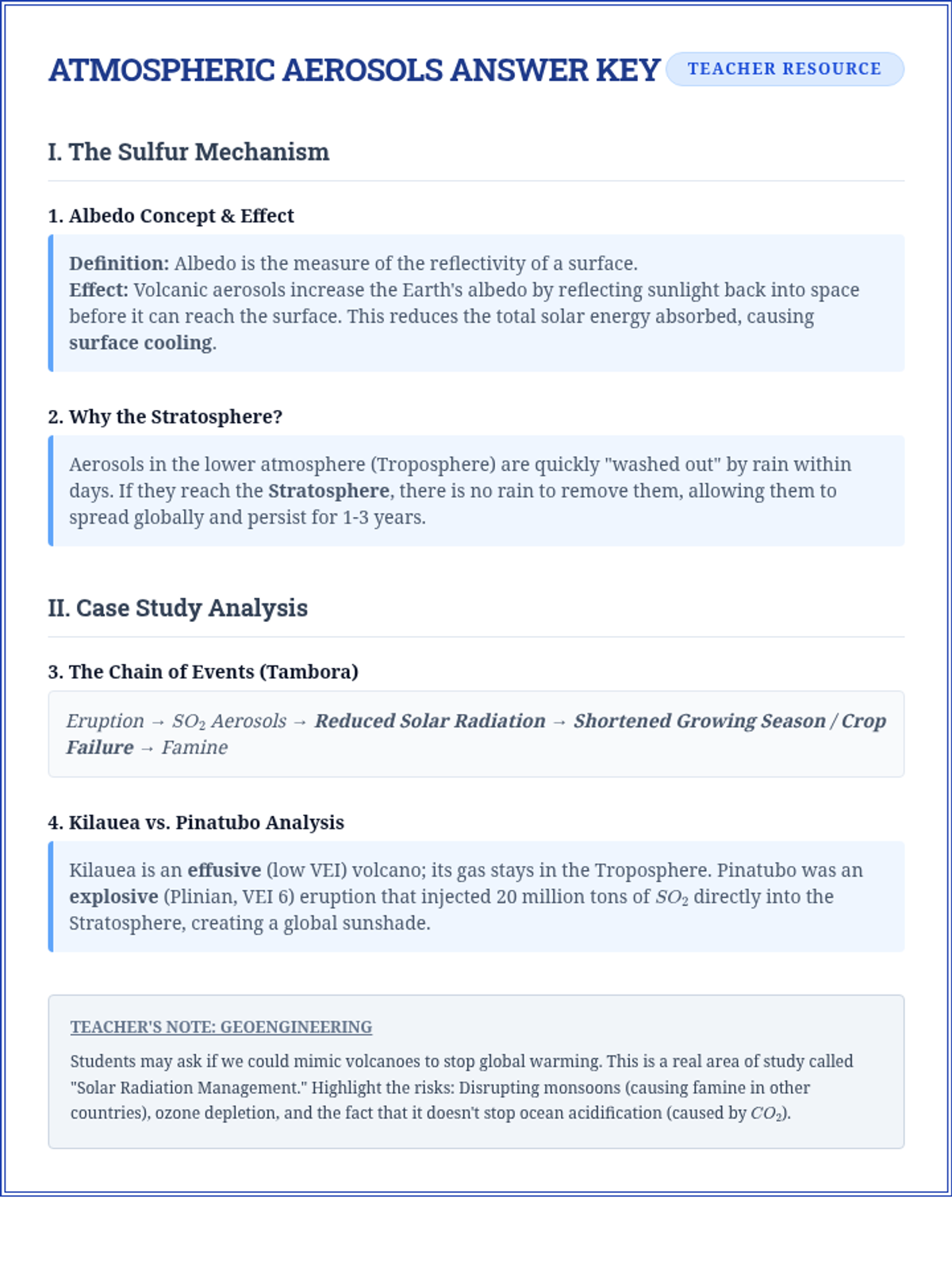 This sequence explores the chemical and physical drivers of volcanic activity, from the microscopic behavior of silica polymers to the global-scale impacts of sulfur aerosols on climate. Students analyze magma viscosity, eruption styles, hazard modeling, and pre-eruptive monitoring to understand how volcanic systems shape the Earth and human society.