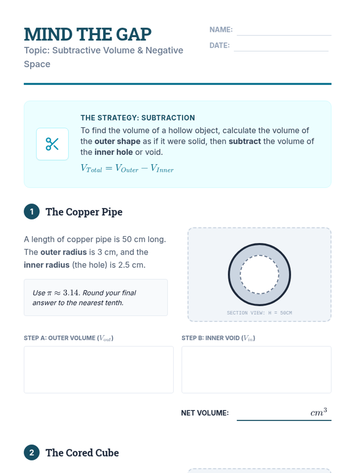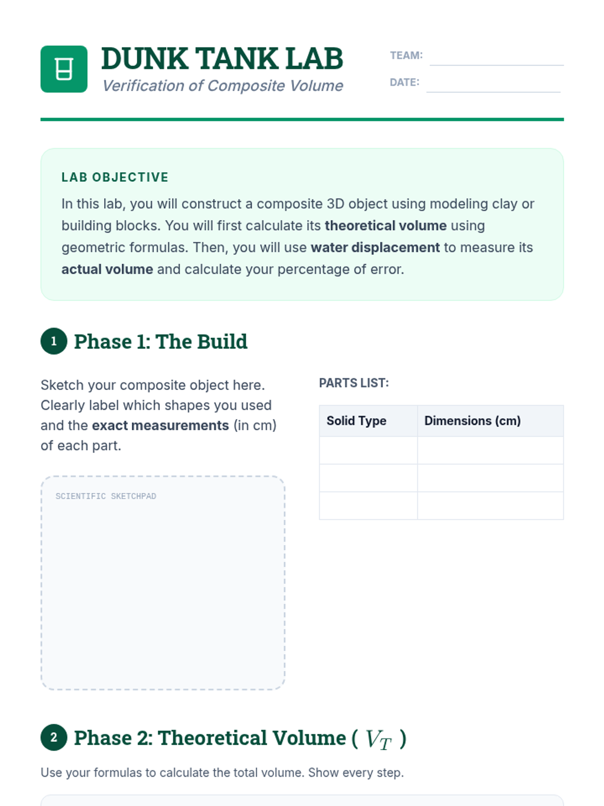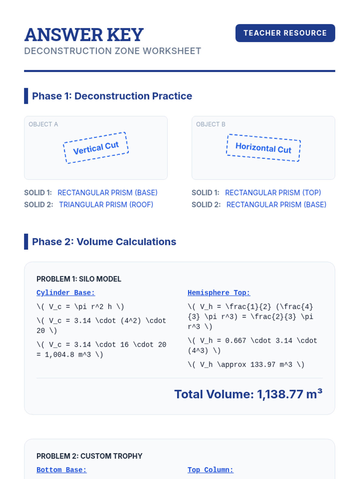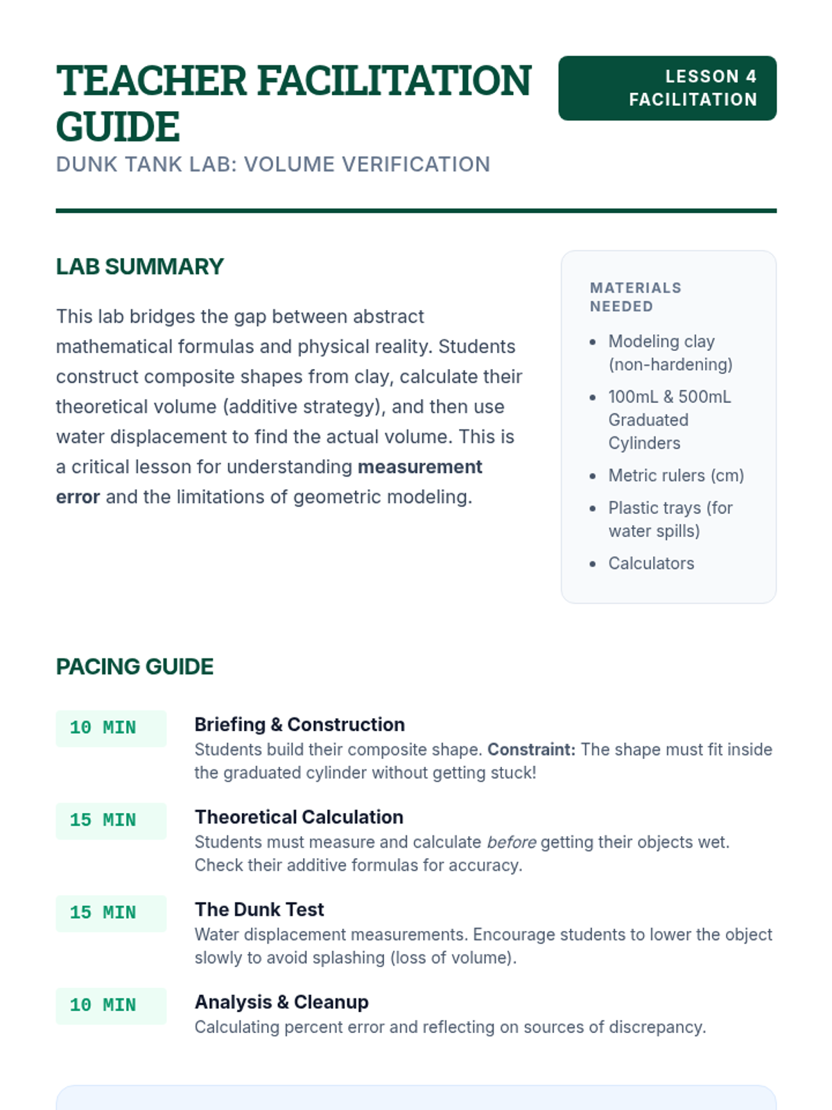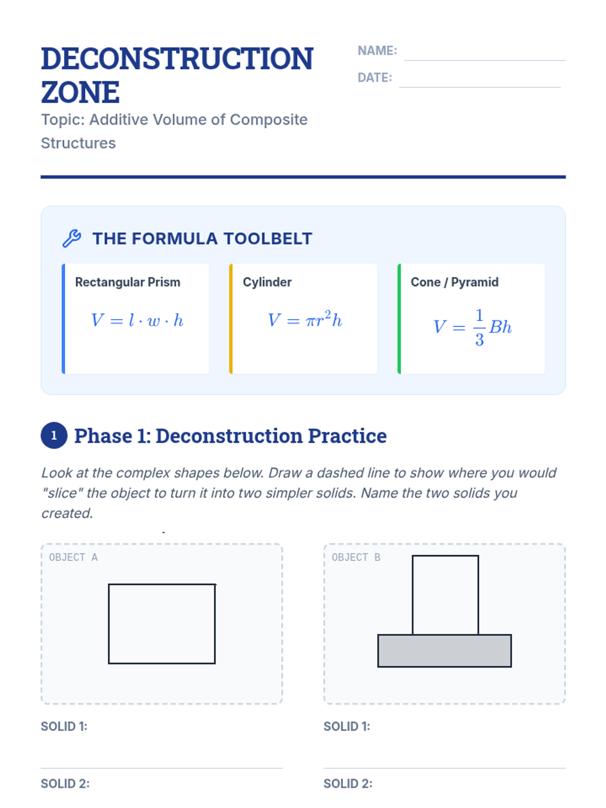 A 5-lesson geometry sequence where students master calculating the volume of composite 3D structures using additive and subtractive strategies, culminating in a real-world design project.