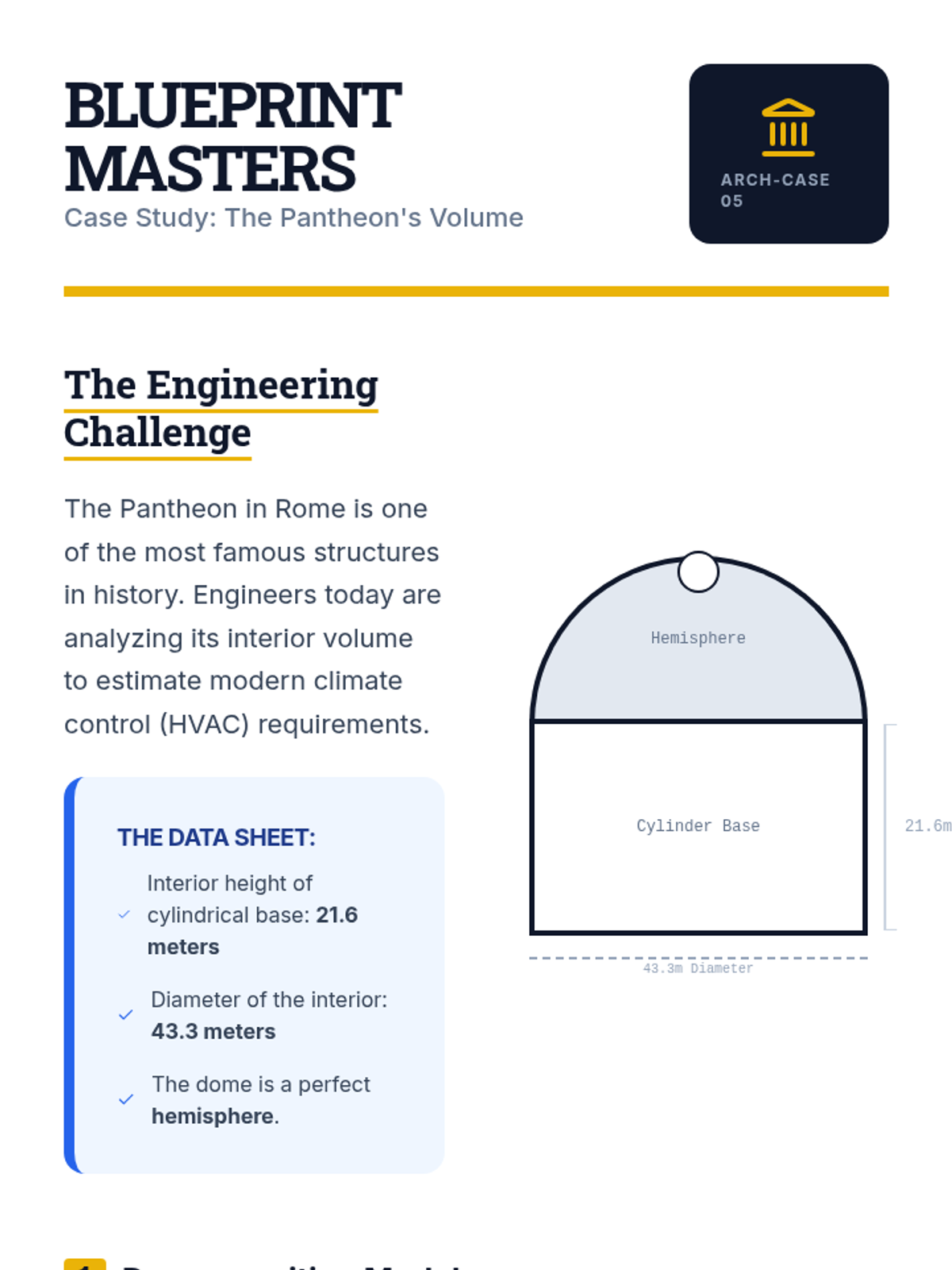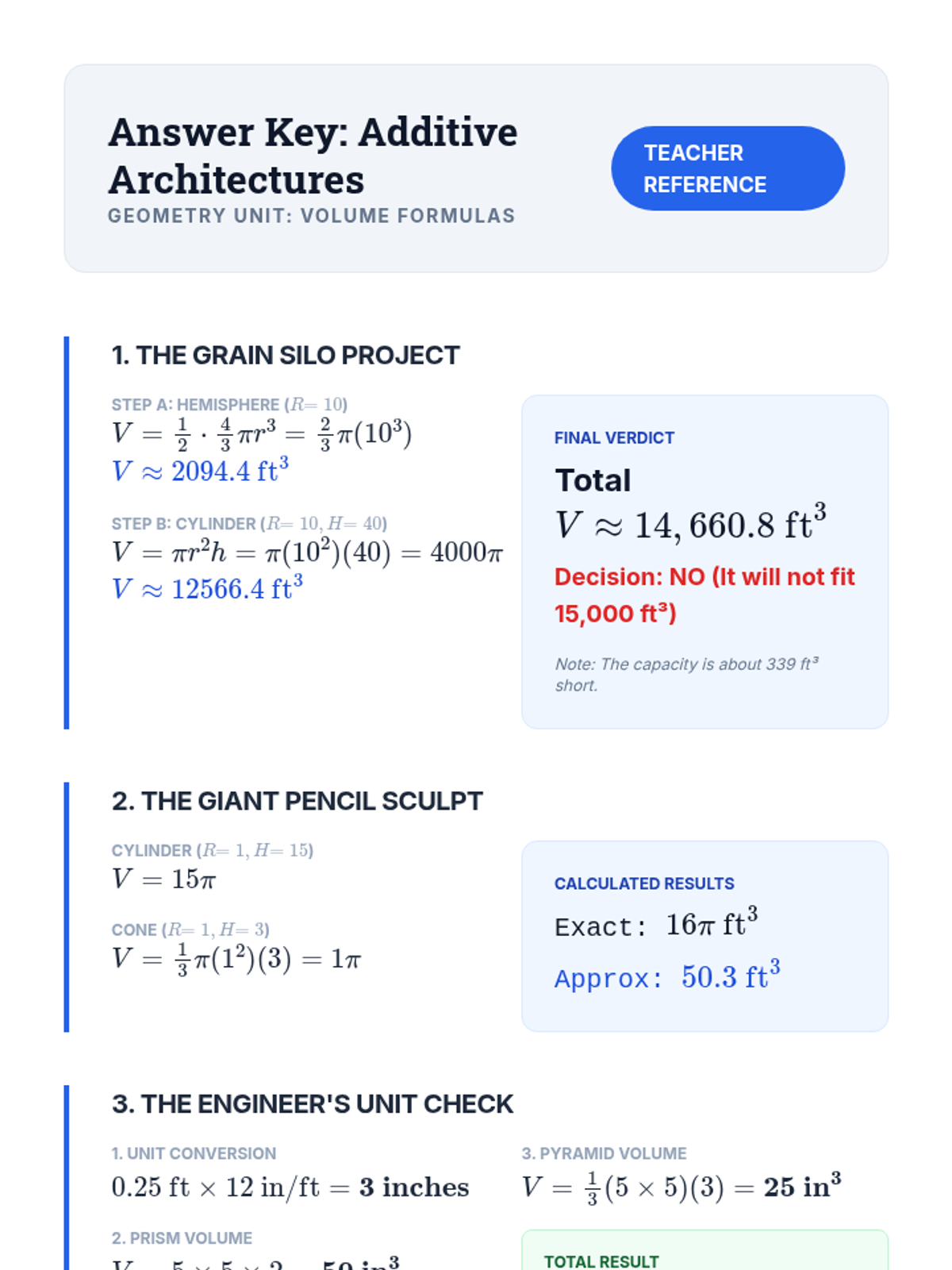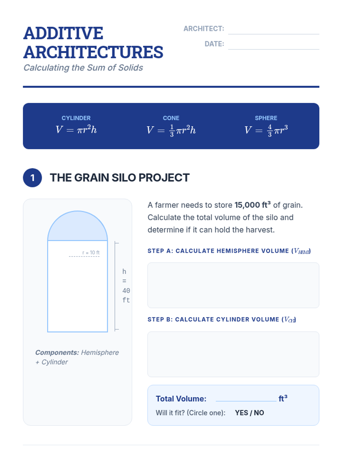 A 10th-grade geometry sequence focusing on modeling complex structures using composite and subtractive volume techniques, solids of revolution, and real-world architectural applications.