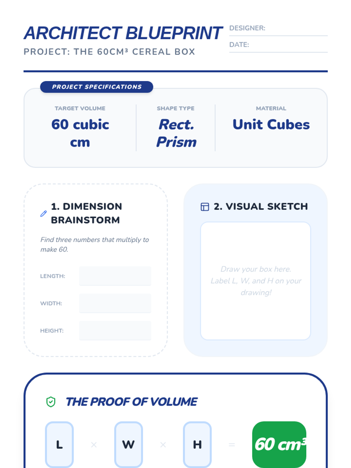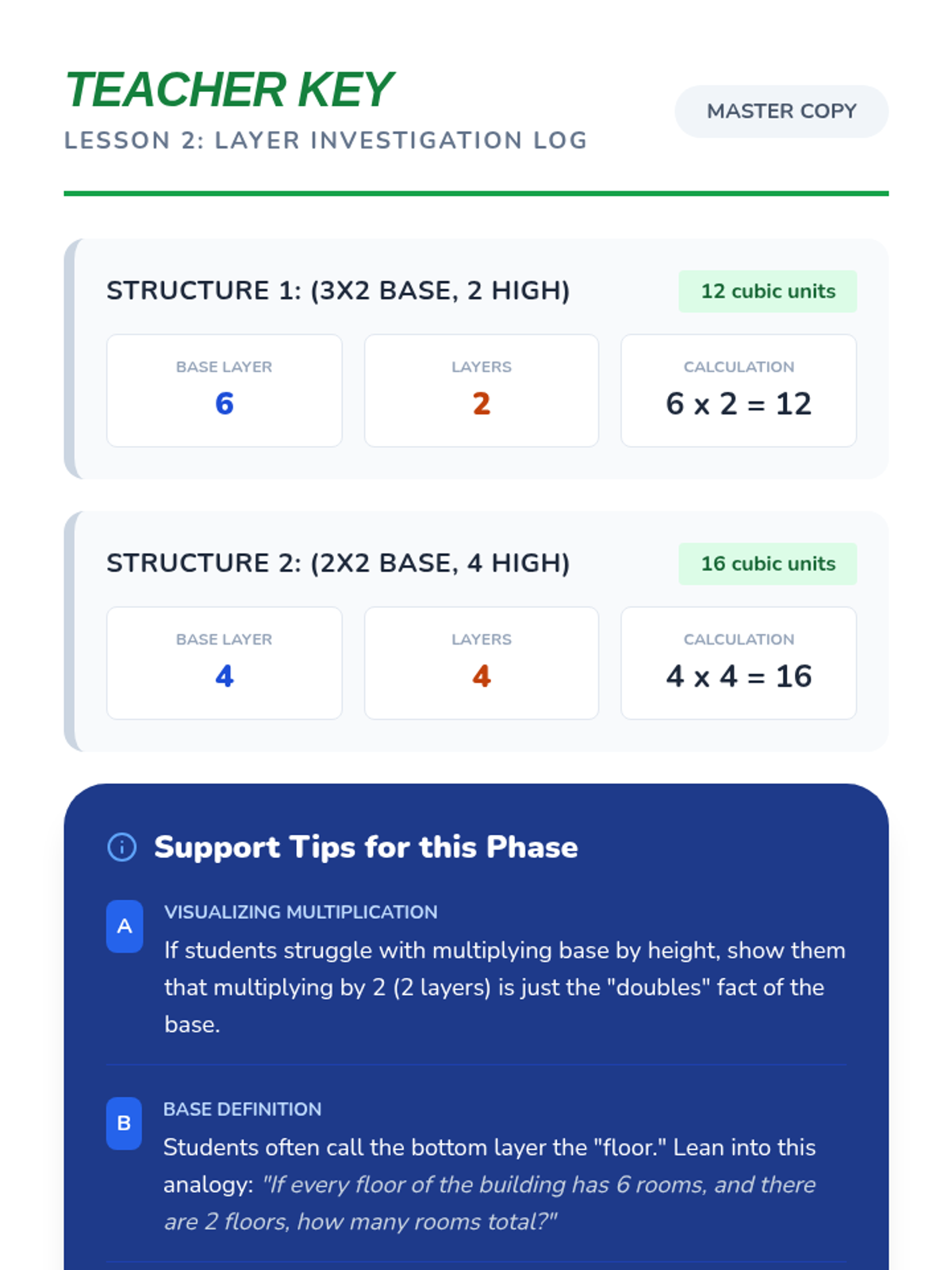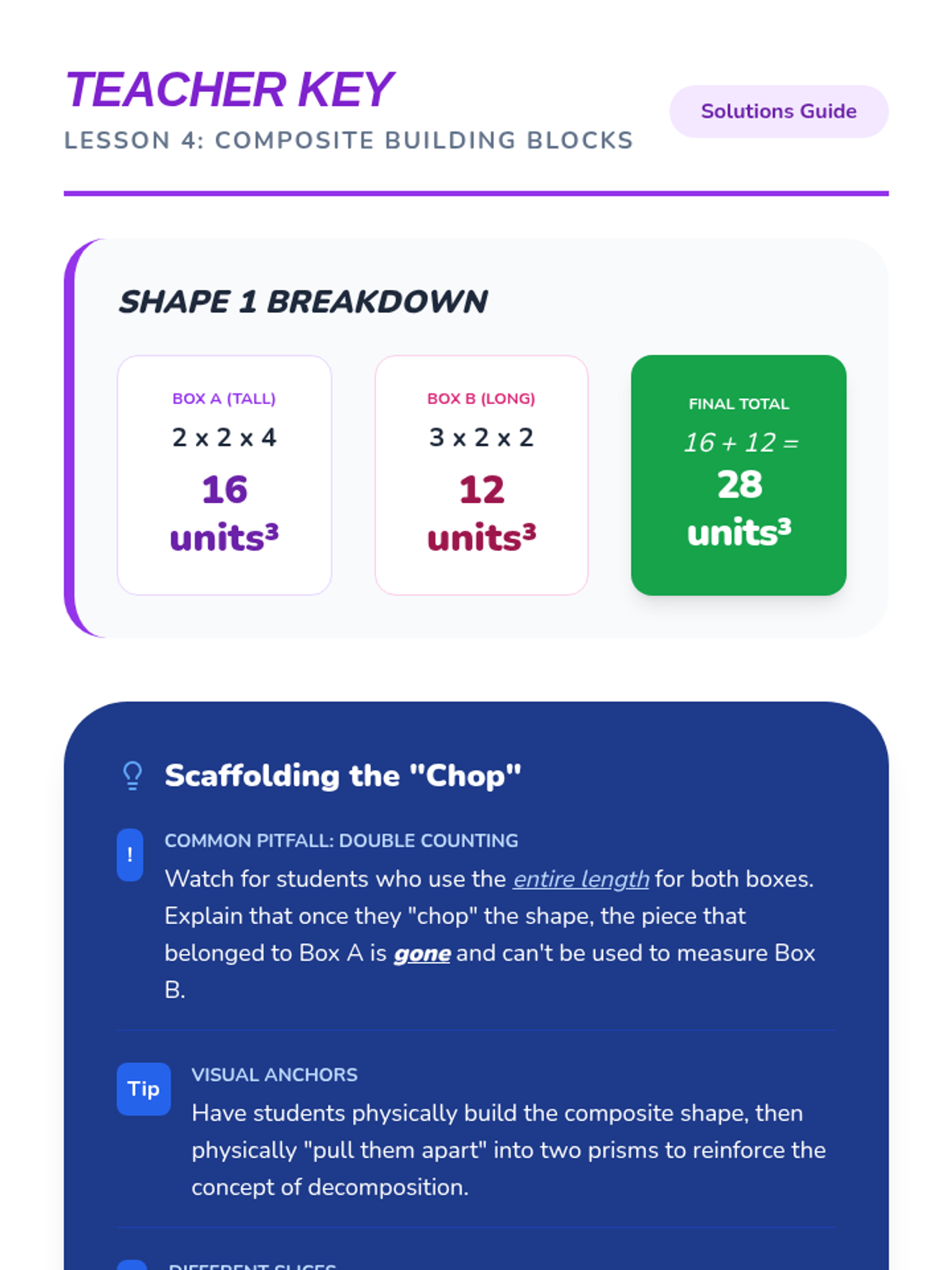 A 5-lesson sequence for 5th Grade students focusing on the conceptual development of volume using unit cubes, specifically designed for academic support. Students progress from physical building and counting to discovering the multiplicative formula and applying it to composite shapes and real-world design challenges.