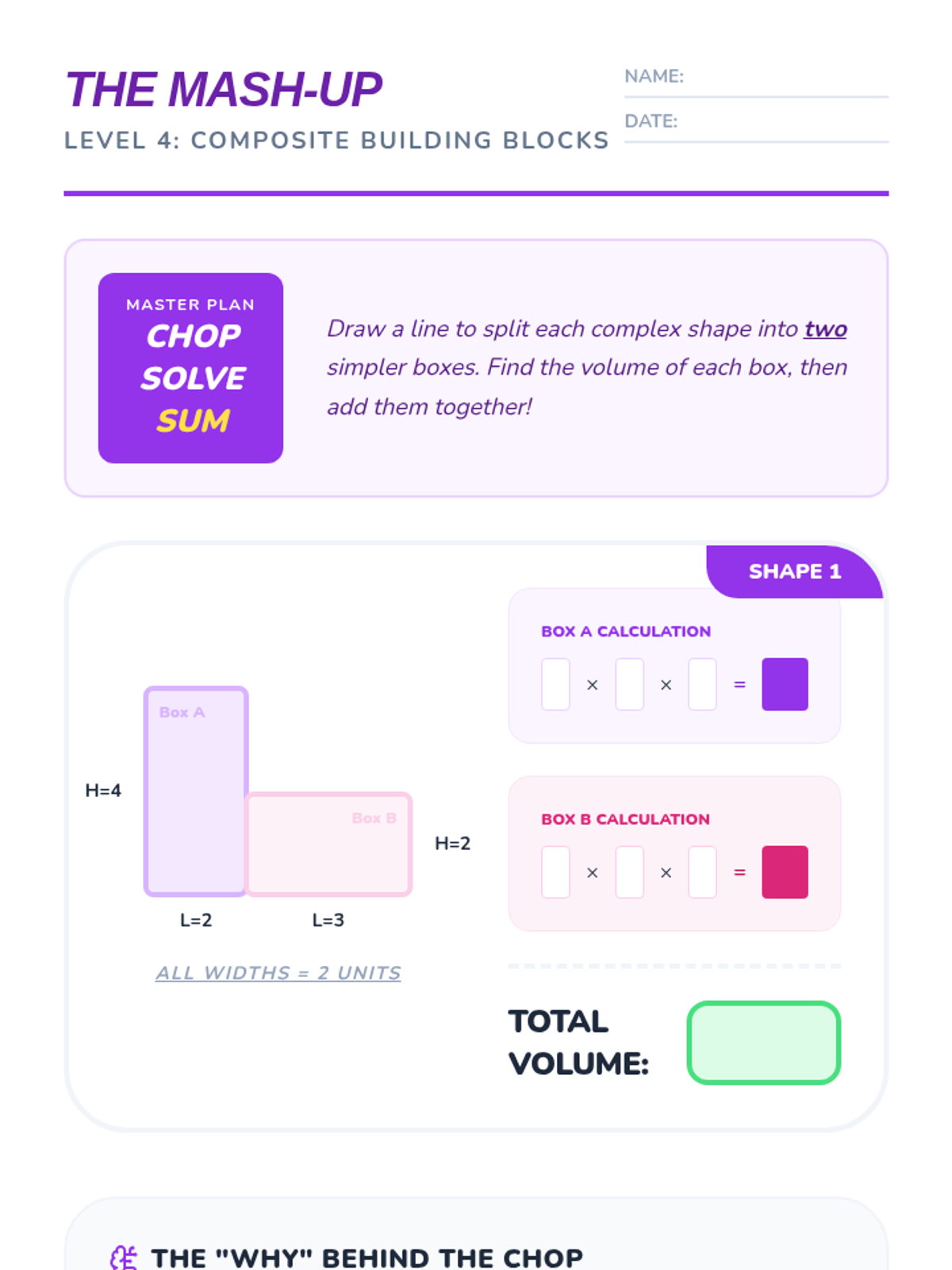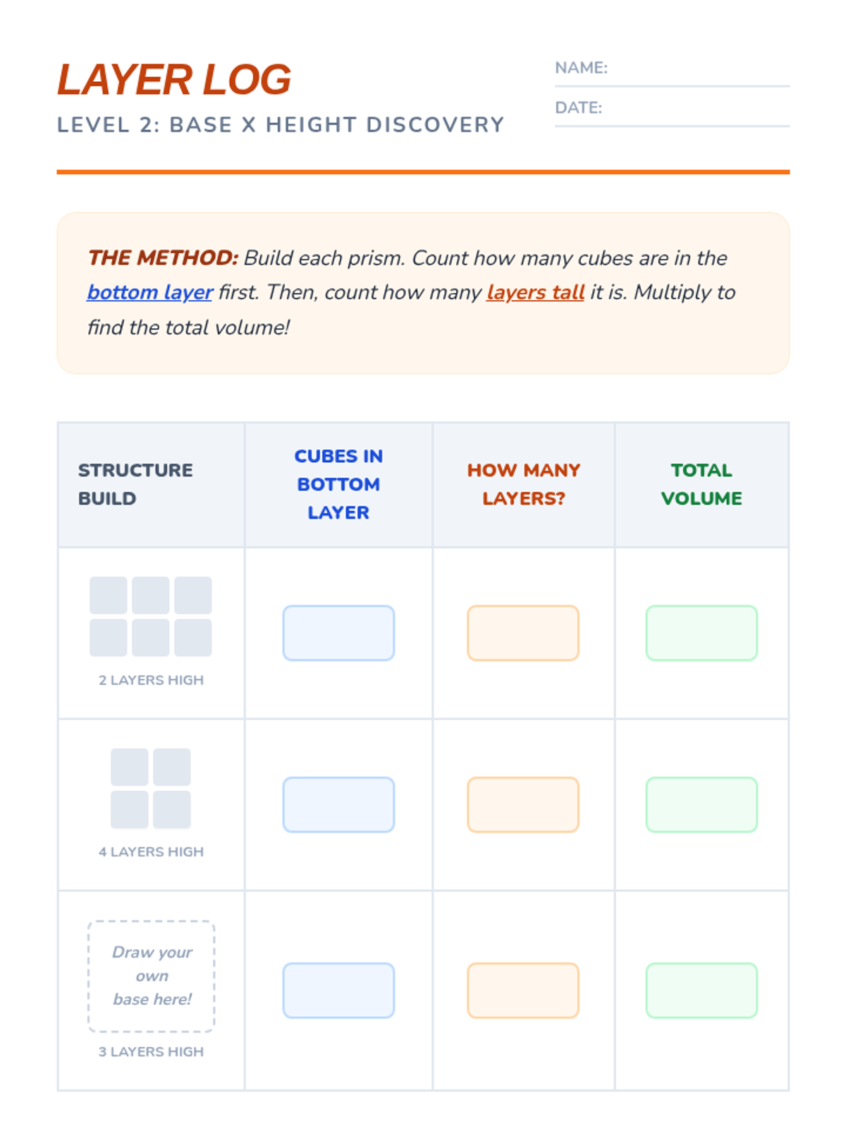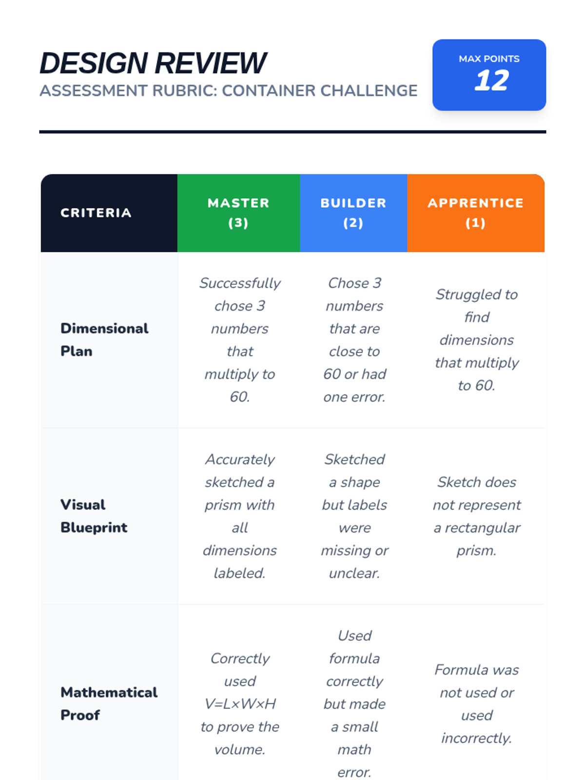A 5-lesson sequence for 5th Grade students focusing on the conceptual development of volume using unit cubes, specifically designed for academic support. Students progress from physical building and counting to discovering the multiplicative formula and applying it to composite shapes and real-world design challenges.