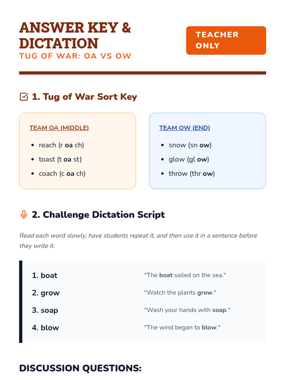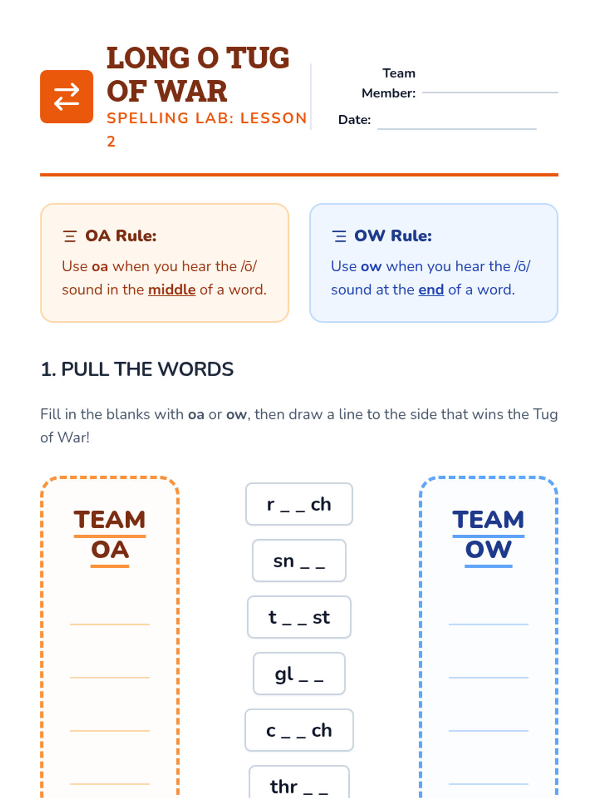 This sequence teaches 2nd-grade students the orthographic mapping and positional rules for common vowel teams (ai/ay, oa/ow, and the varied sounds of ea), moving from recognition to accurate spelling and application.