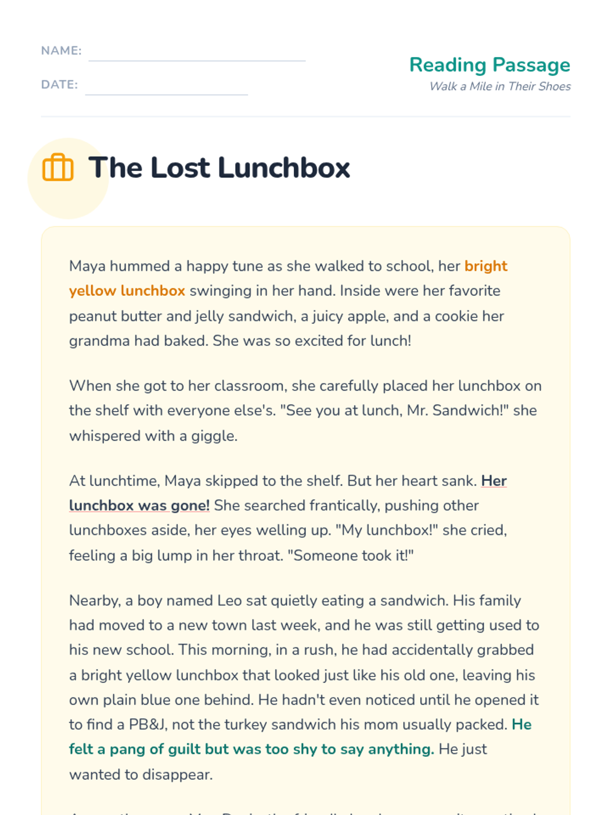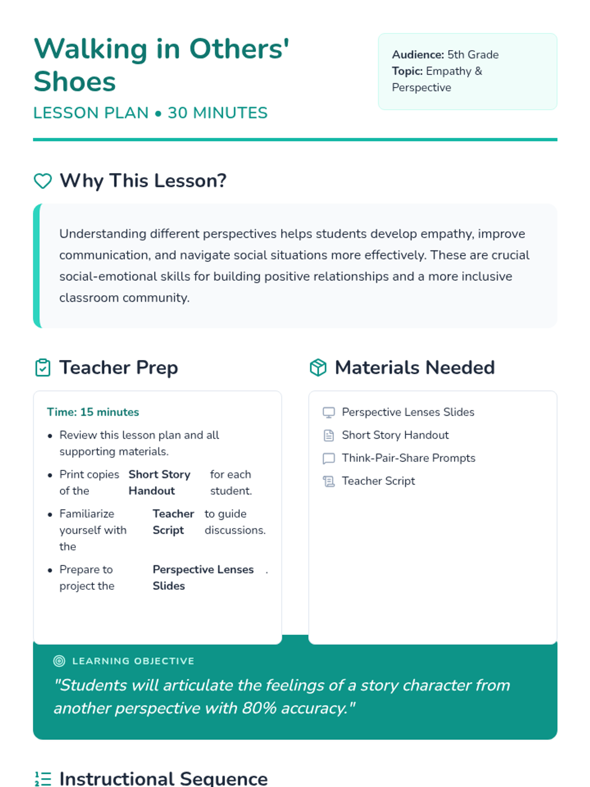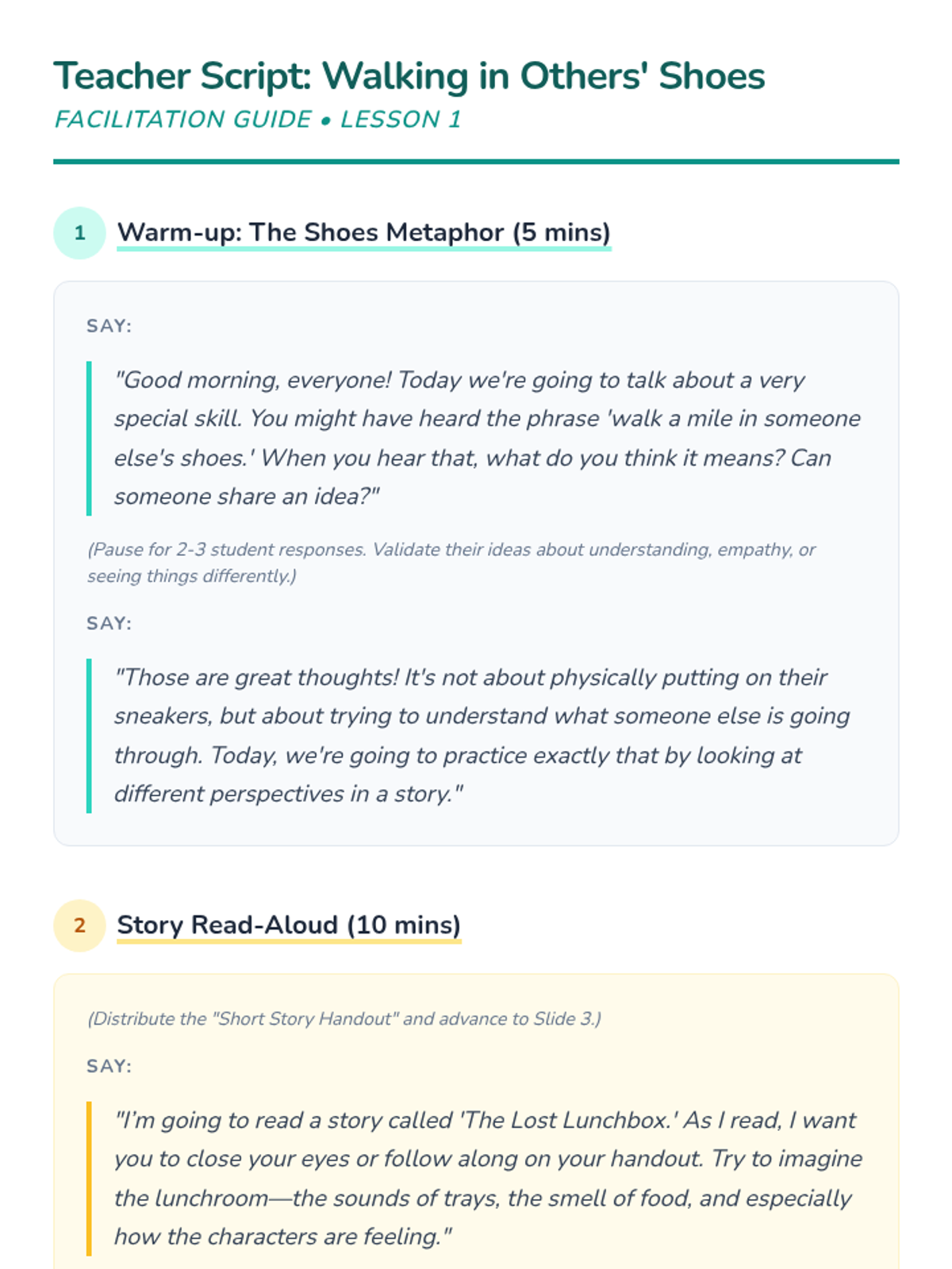 A two-part series designed to help 5th-grade students develop empathy. Students move from identifying feelings in story characters to practicing empathetic responses in real-life scenarios.