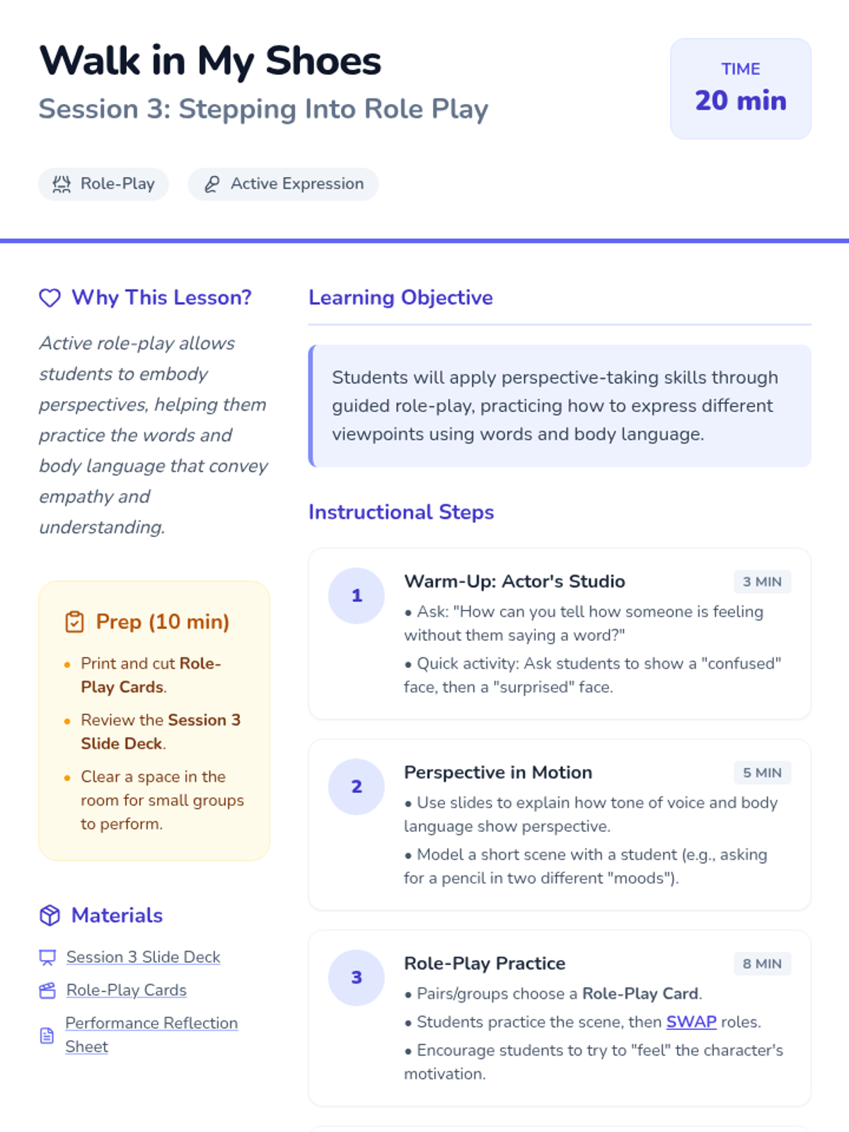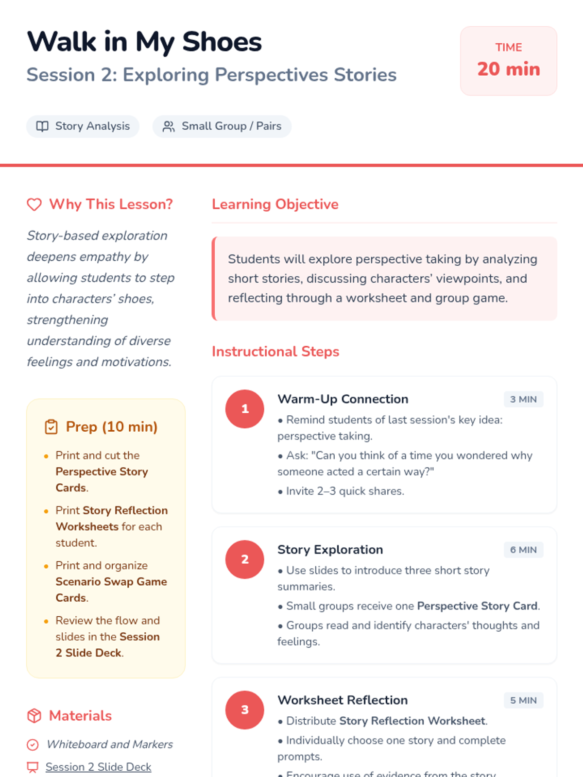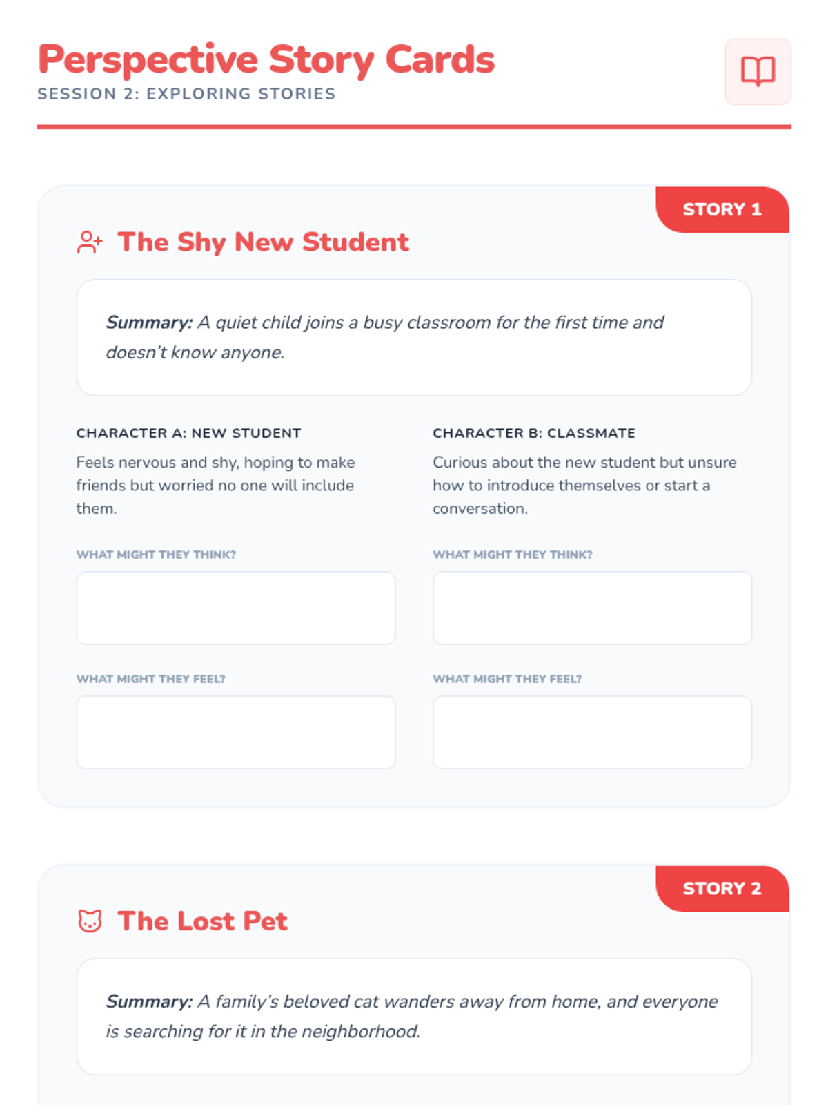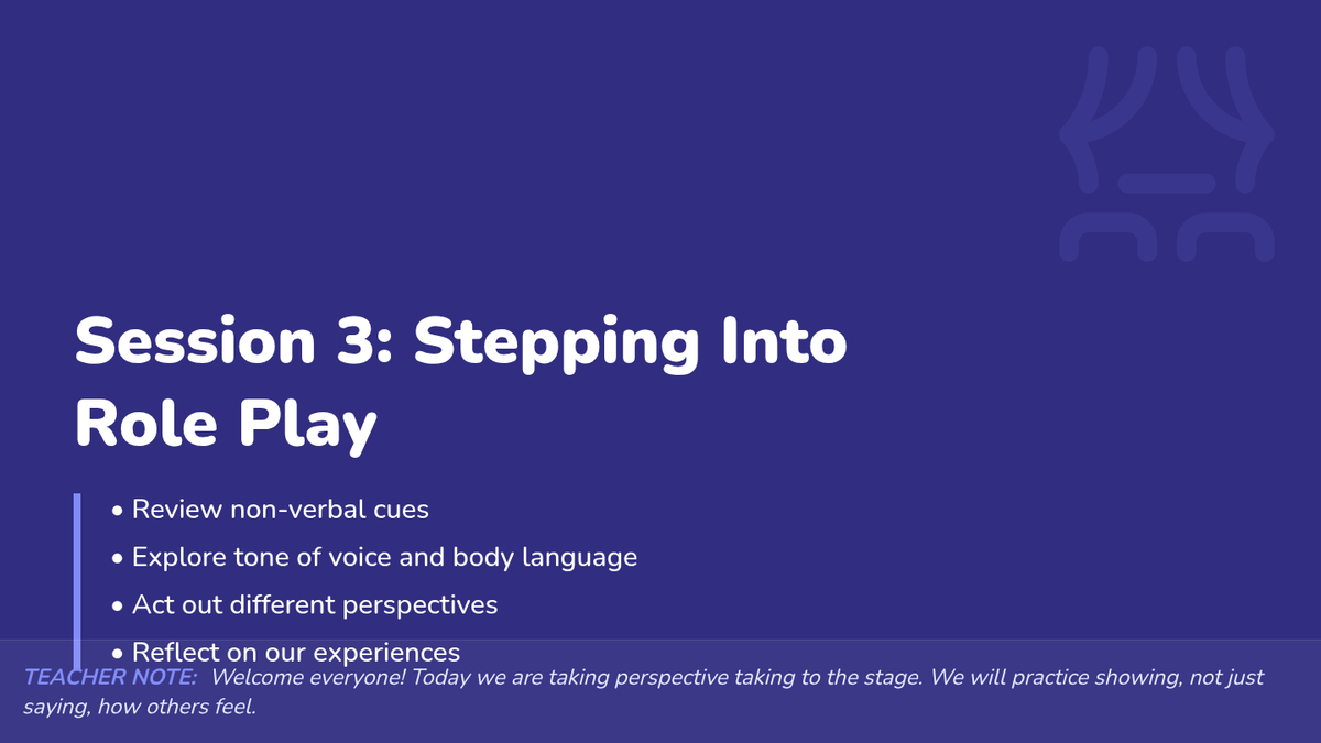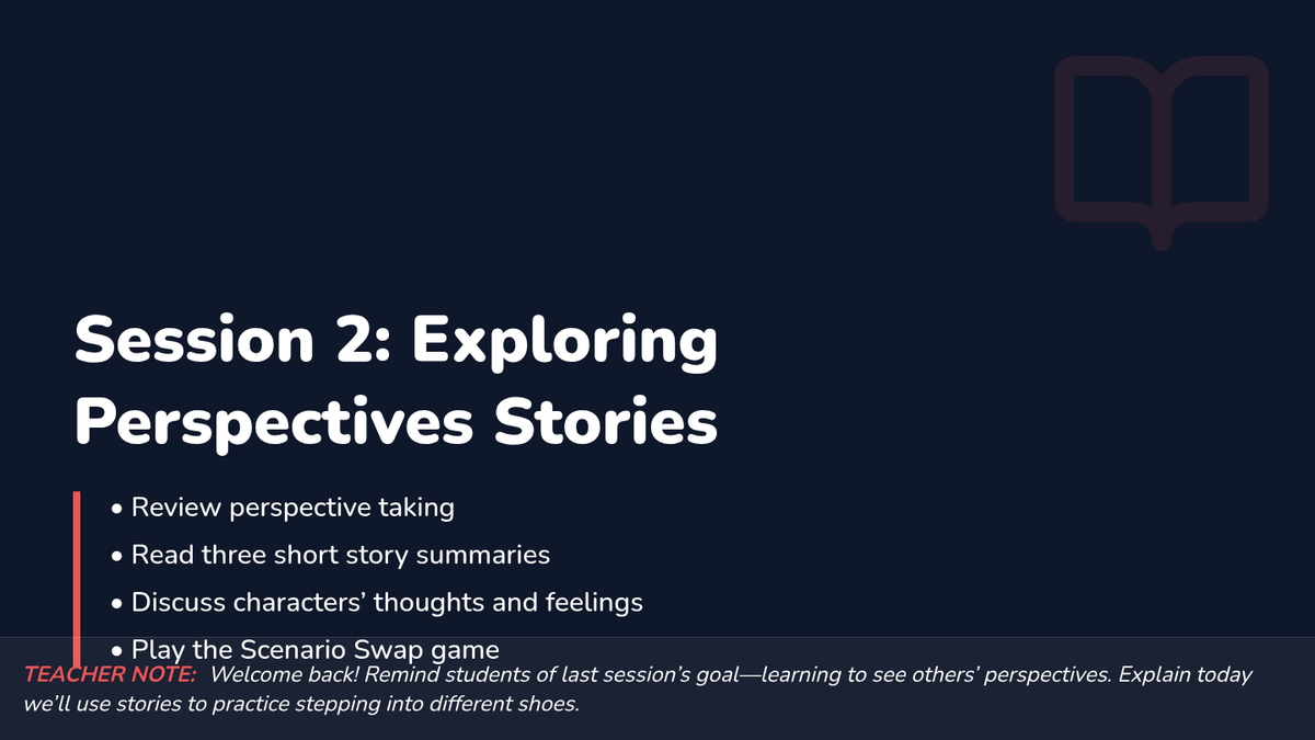 A 5-session social-emotional learning series for 4th graders focused on developing perspective-taking skills and empathy through stories, games, and role-play.