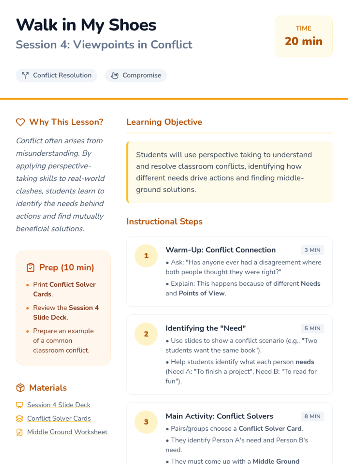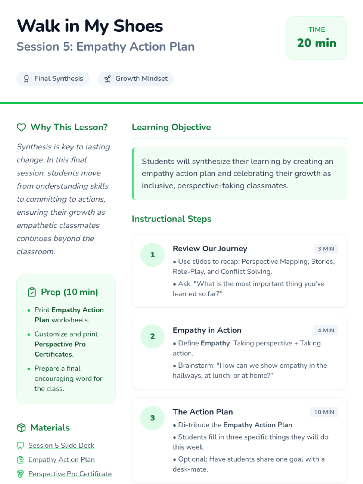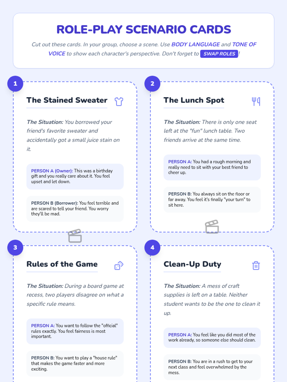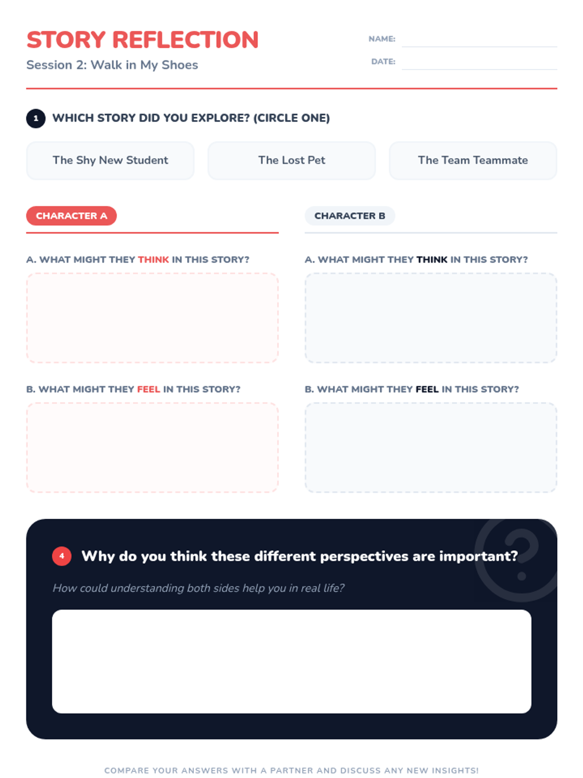 A 5-session social-emotional learning series for 4th graders focused on developing perspective-taking skills and empathy through stories, games, and role-play.