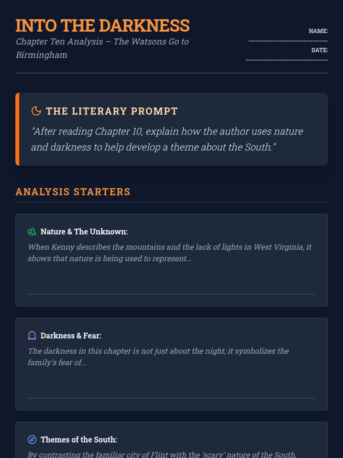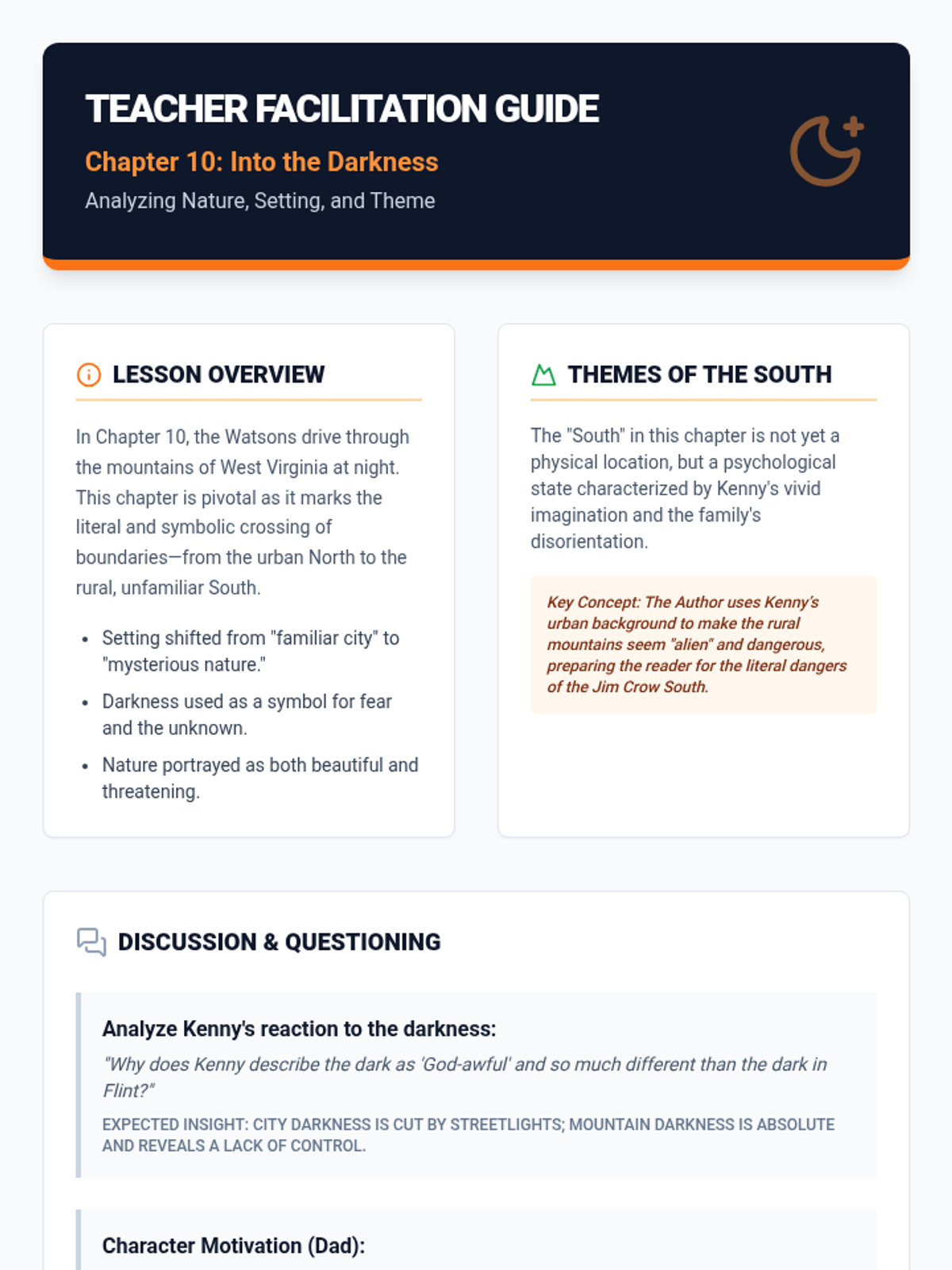 A series of lessons focused on analyzing key chapters of 'The Watsons Go to Birmingham - 1963', with a specific focus on plot development, theme, and author's craft.