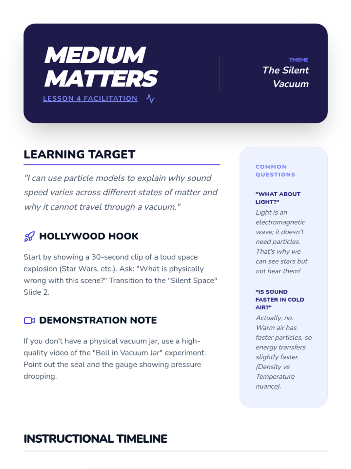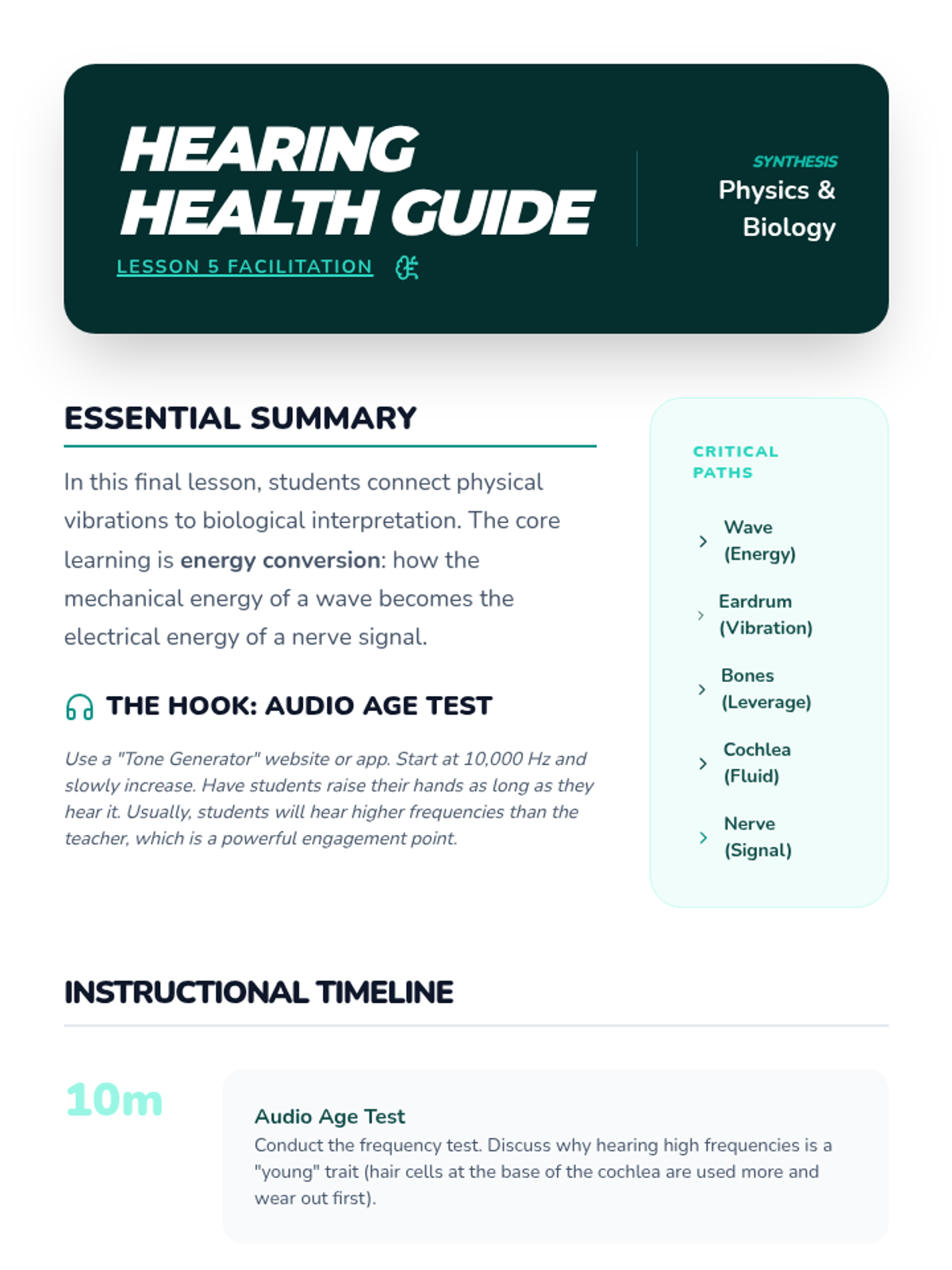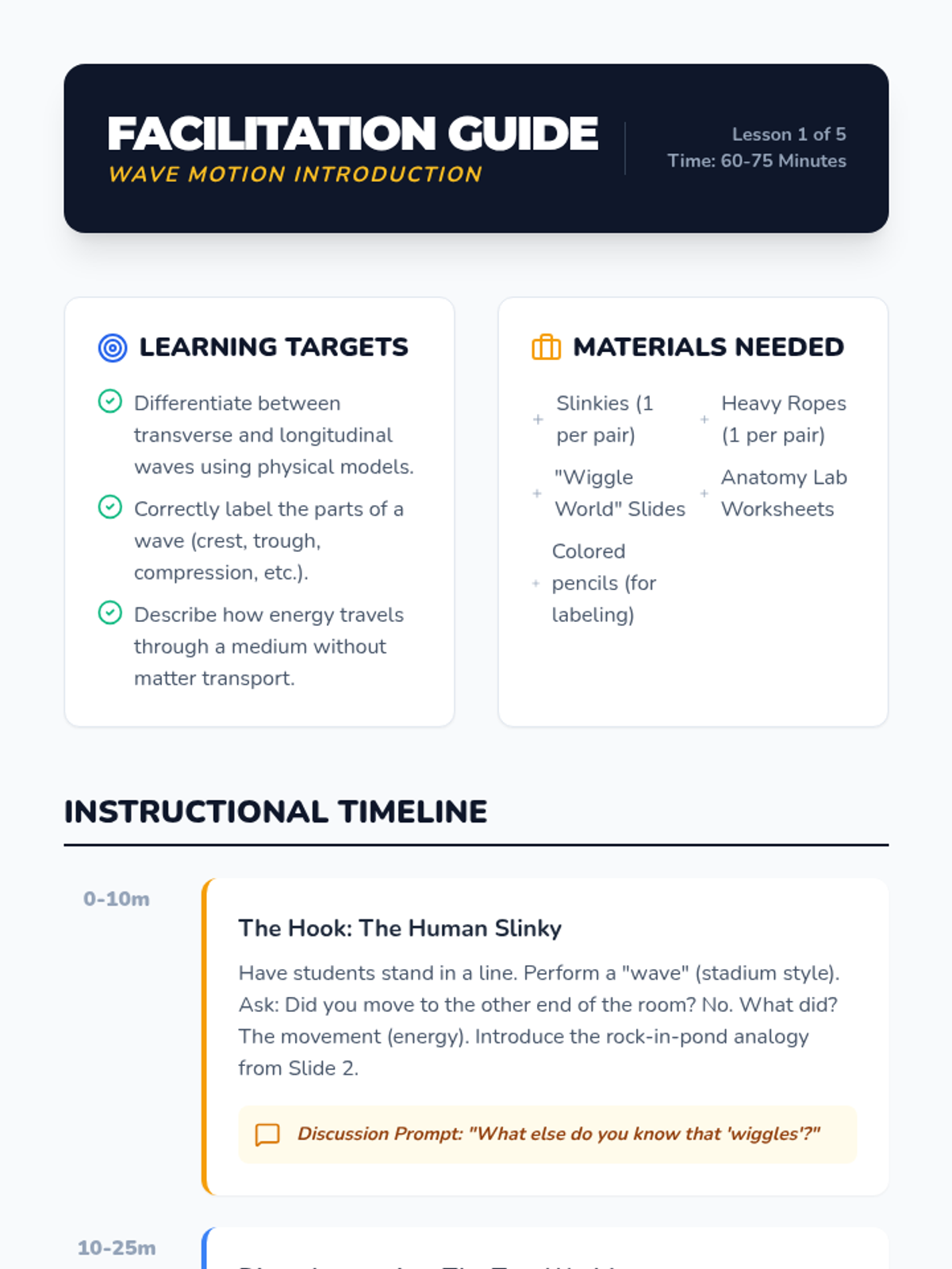 This sequence introduces students to the fundamental nature of mechanical waves, specifically focusing on sound. Students begin by differentiating between transverse and longitudinal waves using physical models before narrowing their focus to sound propagation. Through inquiry-based investigations, they discover the relationships between frequency and pitch, as well as amplitude and volume. By the end of the sequence, students will be able to diagram wave properties and explain how physical changes in a wave source affect auditory perception.