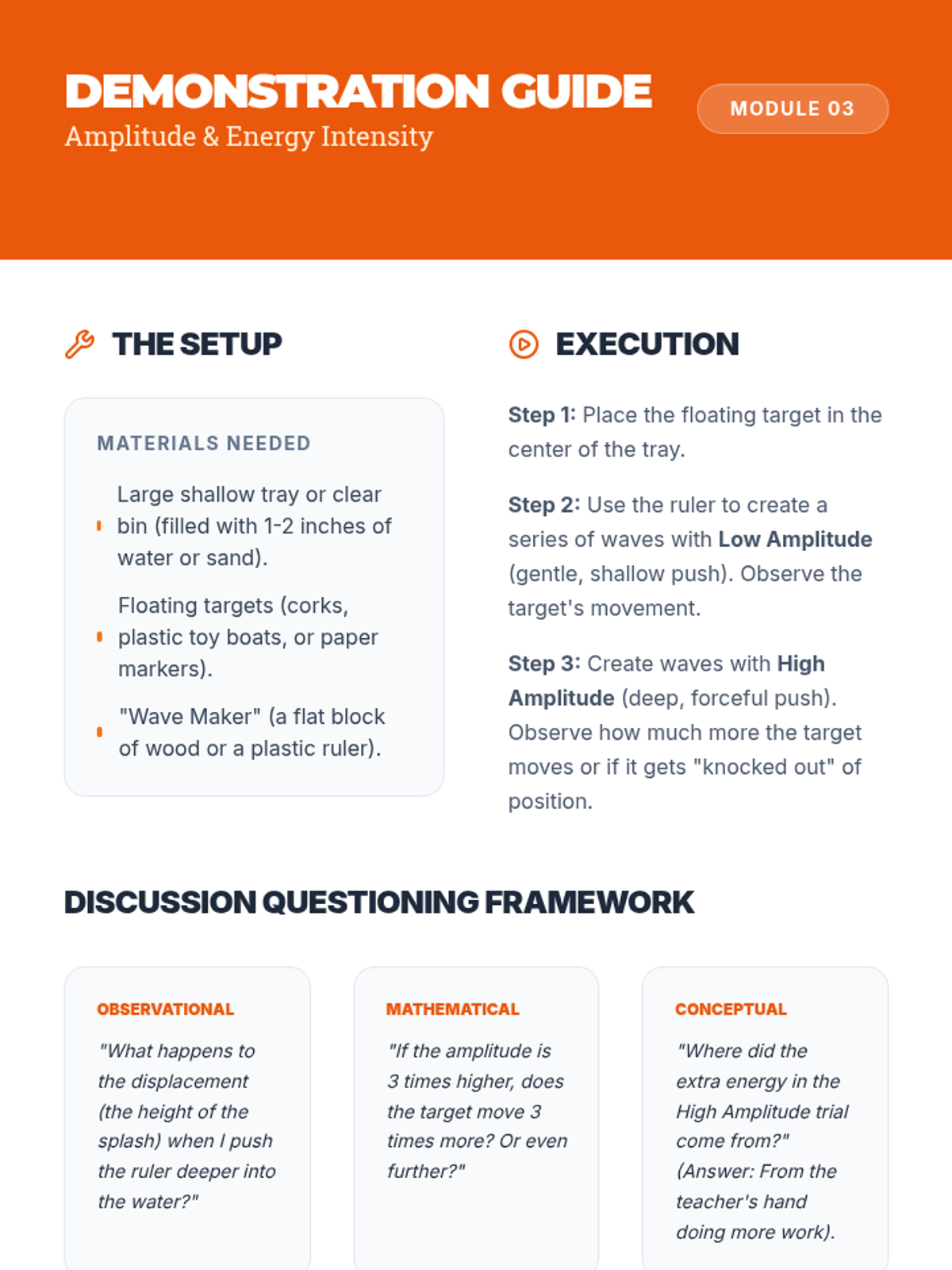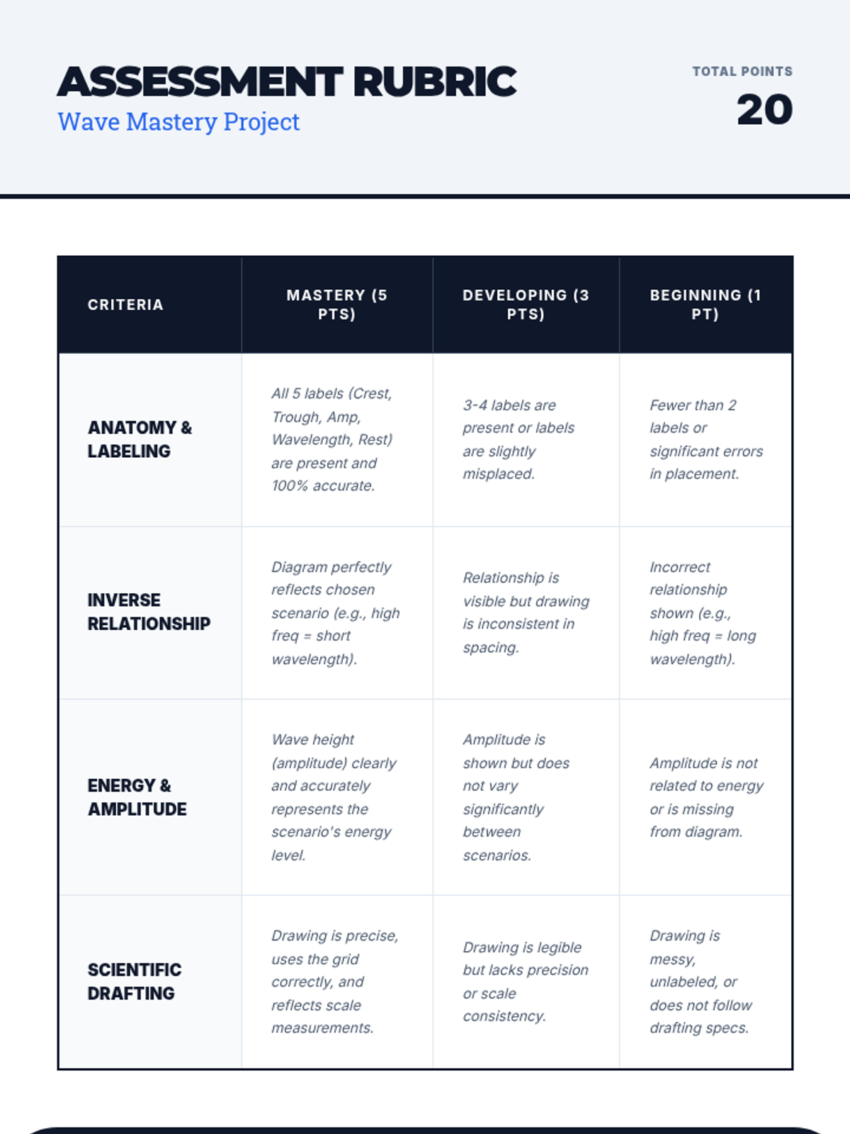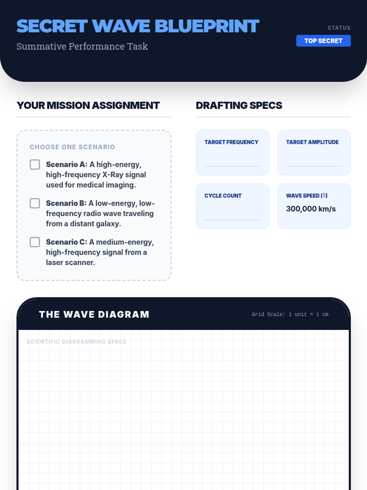 A comprehensive 6th-grade physics sequence exploring the physical properties of electromagnetic waves. Students progress from hands-on modeling of transverse waves to analyzing the mathematical relationships between frequency, wavelength, and energy.