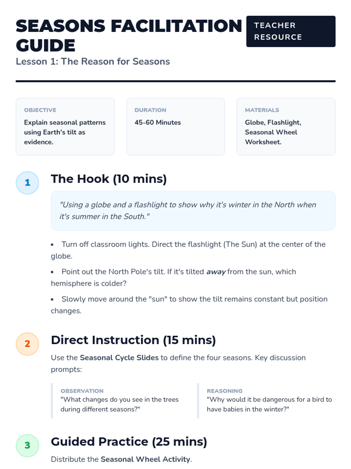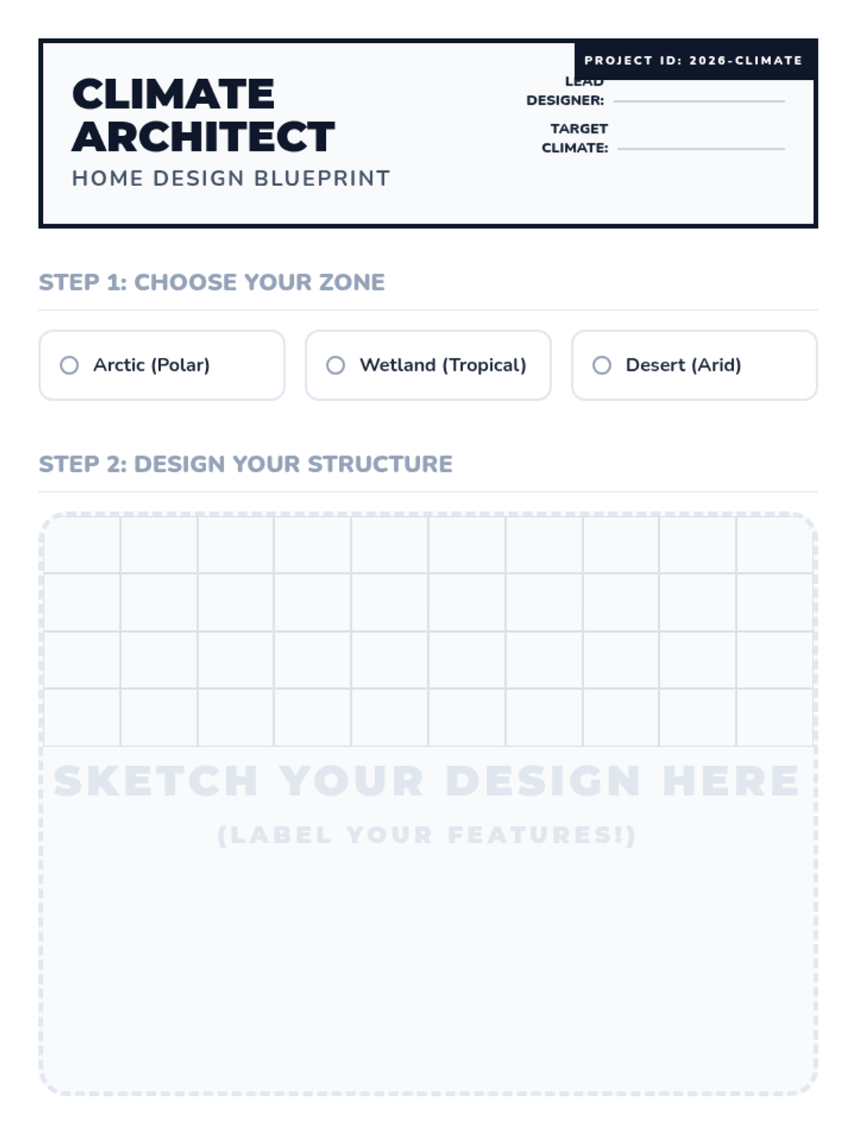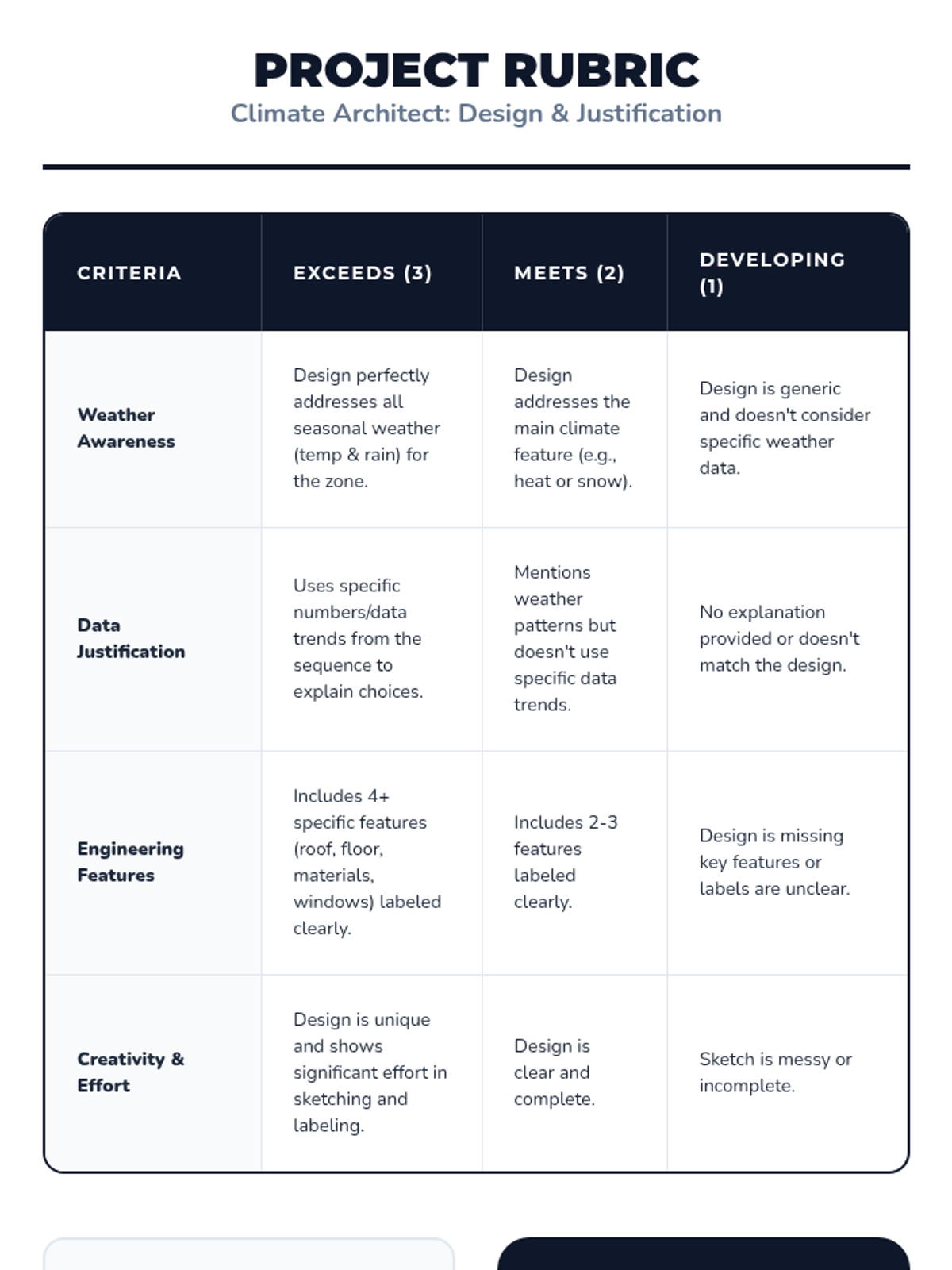 A comprehensive 3rd-grade sequence exploring the cyclical nature of weather through data analysis, graphing, and comparative geography. Students move from understanding Earth's tilt to designing climate-adapted structures using evidence-based reasoning.