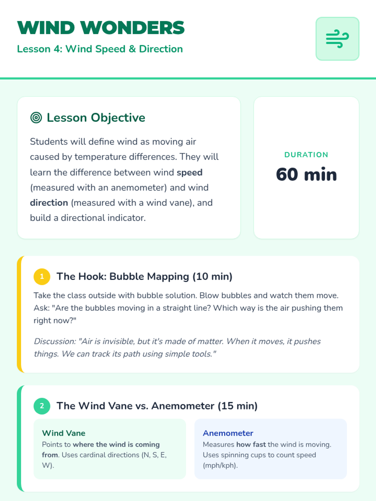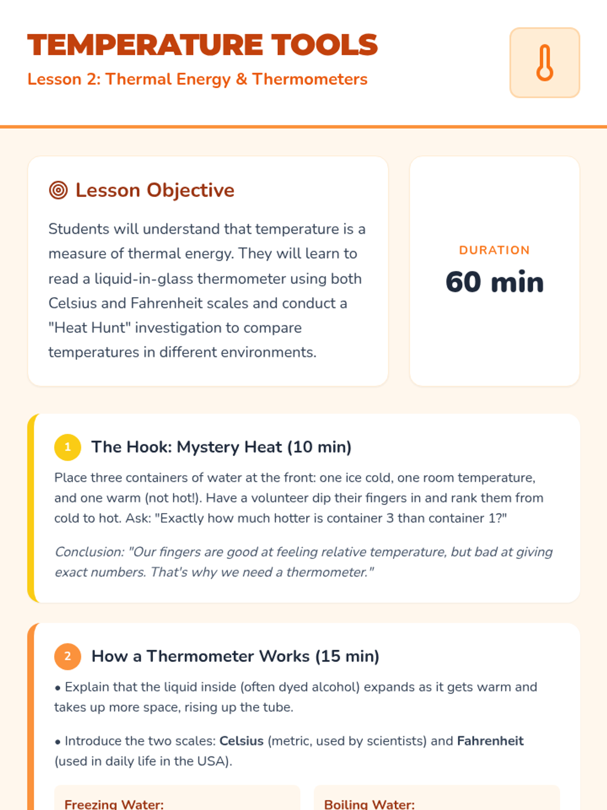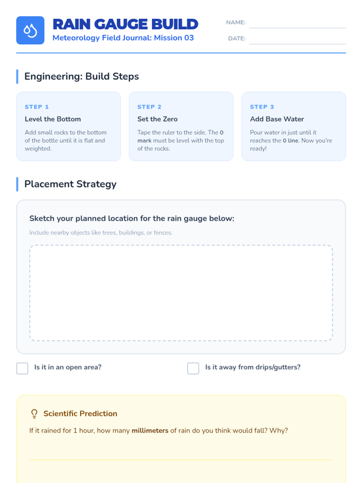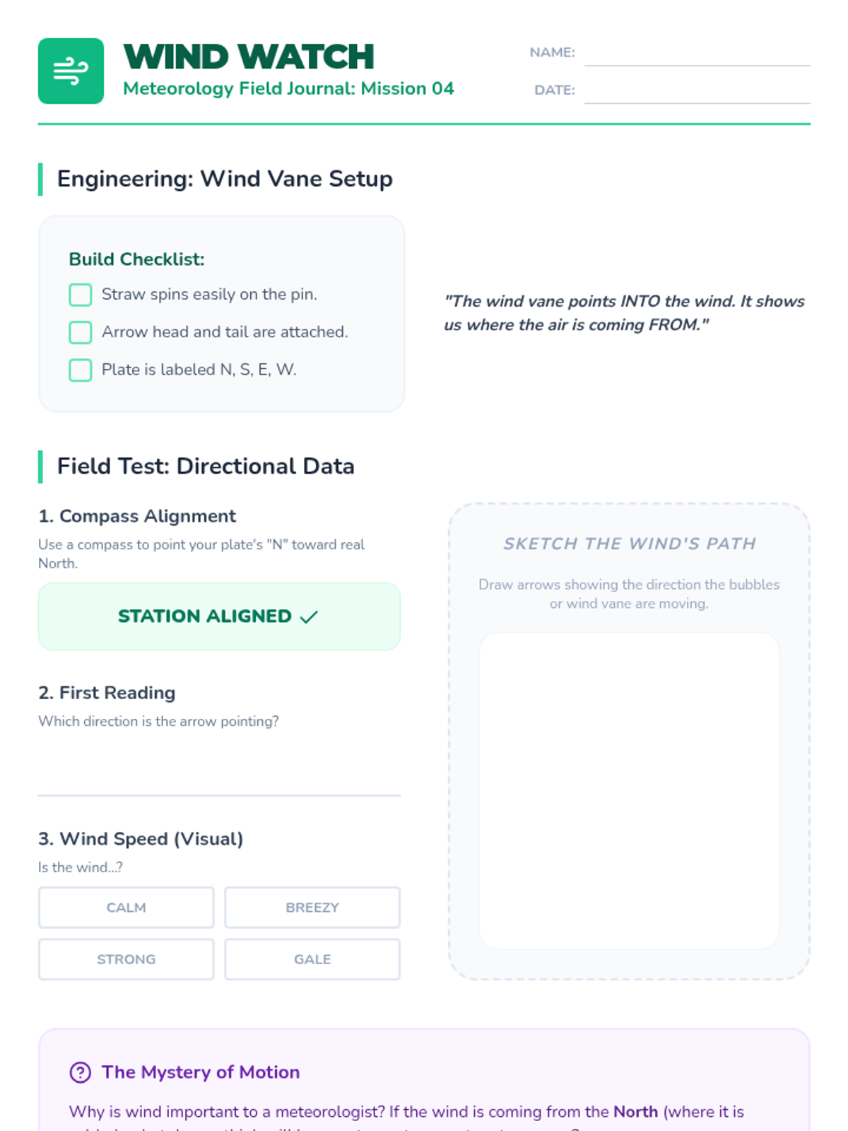 This sequence introduces students to the fundamental practice of meteorological observation, moving them from subjective feelings about weather to objective measurement. Students will explore the scientific method by learning to use specific tools to quantify atmospheric conditions including temperature, precipitation, and wind.