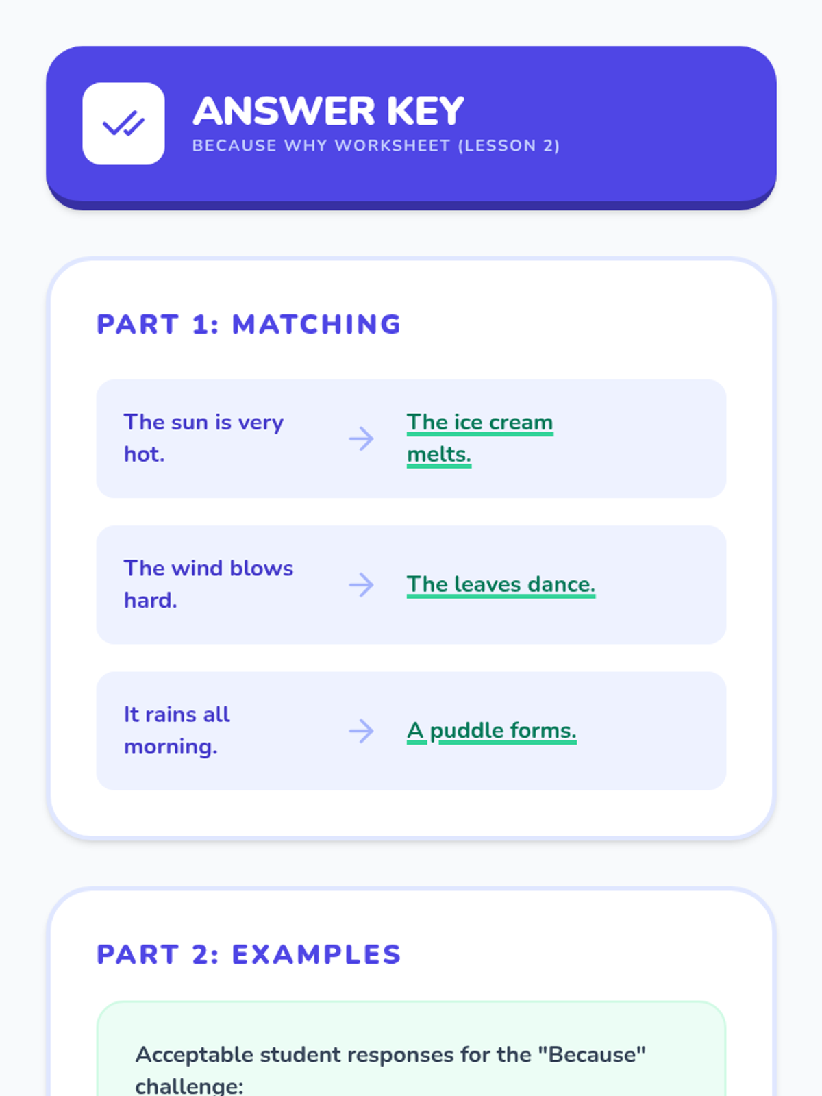 A foundational writing sequence for early learners focused on developing opinion writing skills. Students progress from stating simple preferences to supporting their opinions with reasons and descriptive details using 'I like' and 'because'.