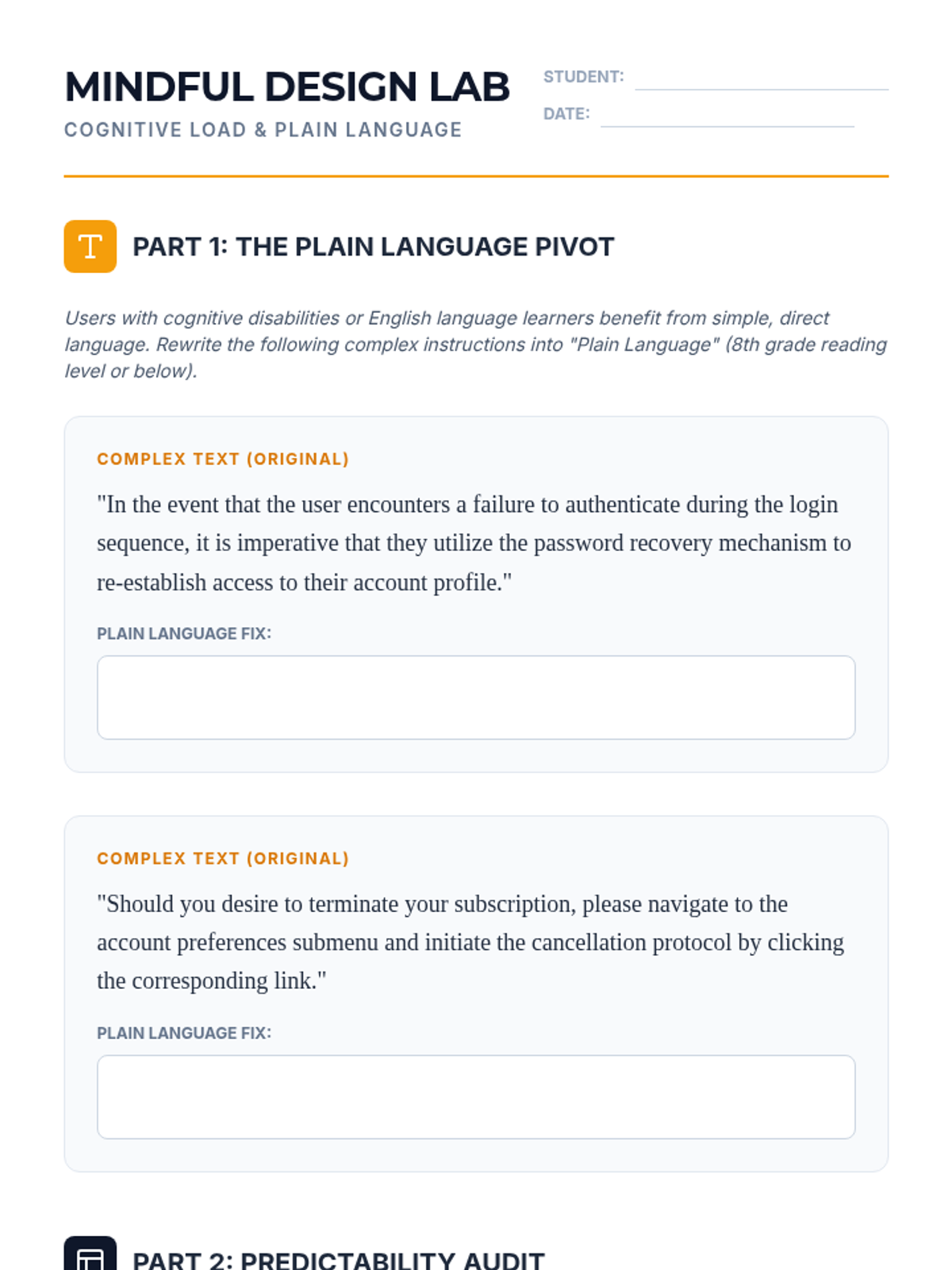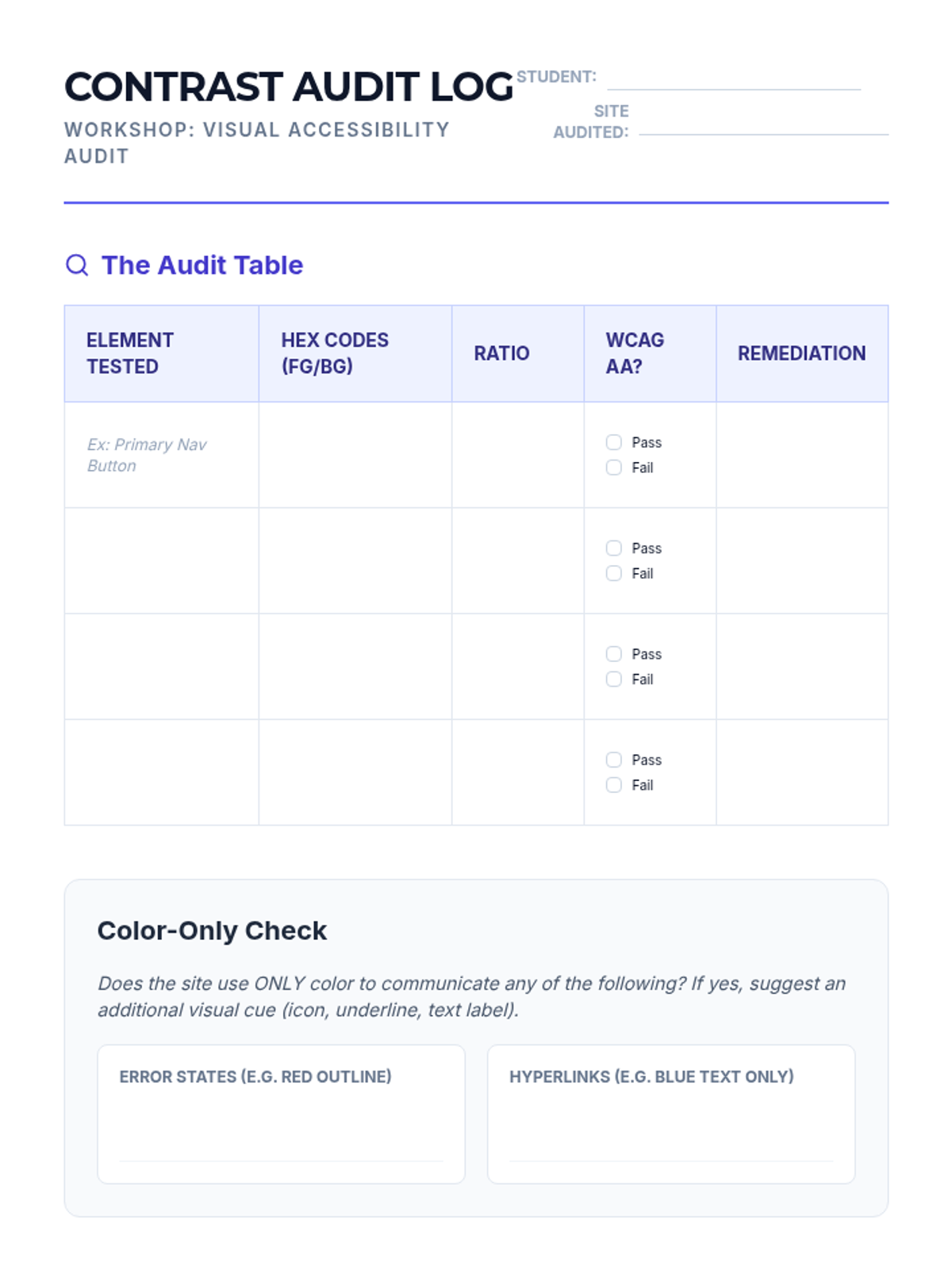 This sequence shifts focus from writing code to designing for human needs through User Experience (UX) and User Interface (UI) principles. Students adopt the role of UX researchers, analyzing existing sites for usability and accessibility failures before they write a single line of code.