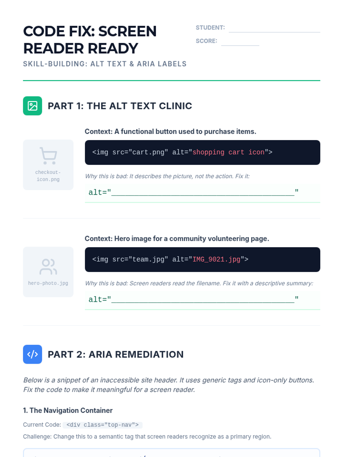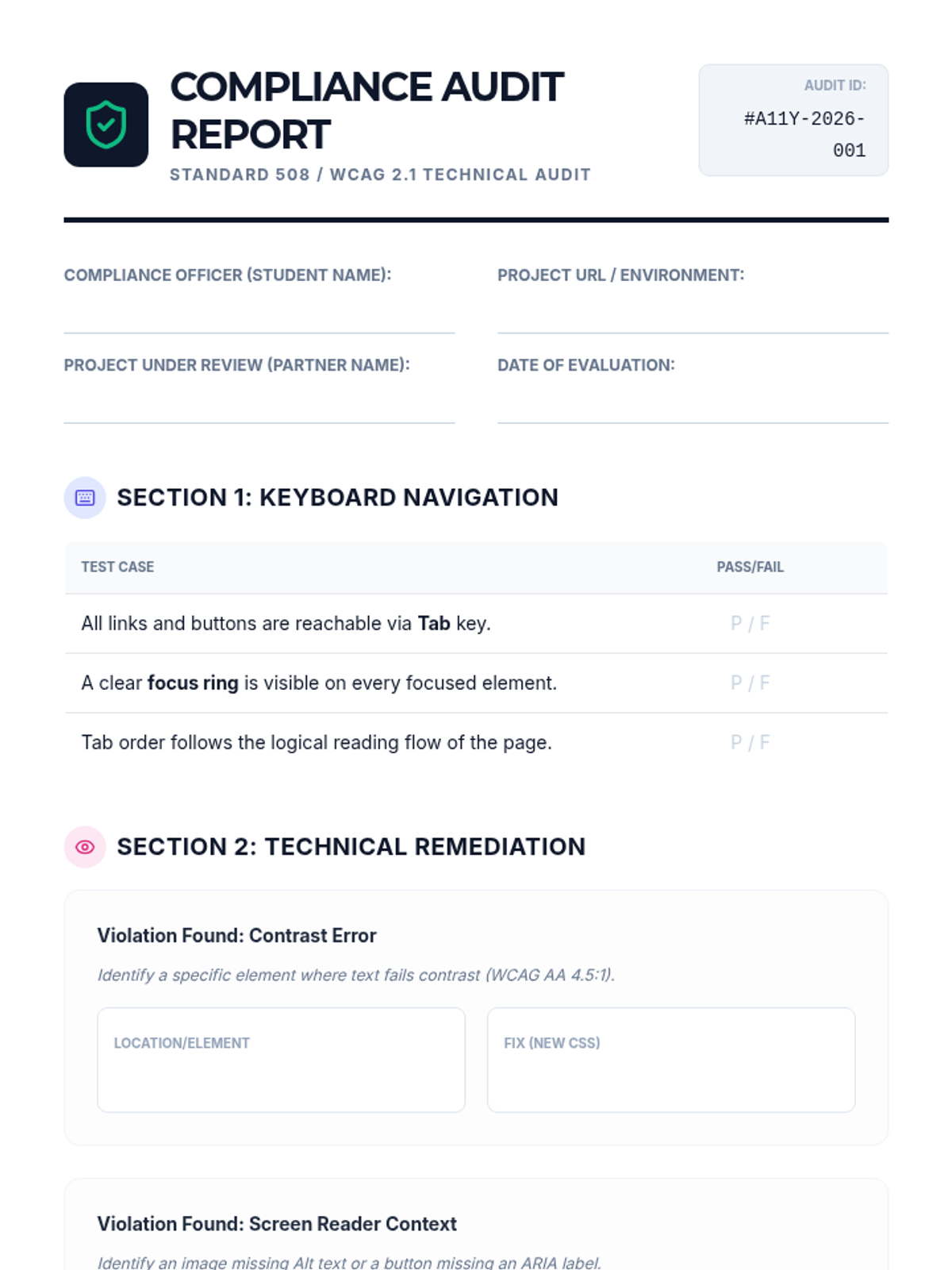 A comprehensive sequence for 10th Grade students exploring the ethical and technical standards of Web Accessibility (a11y), focusing on WCAG guidelines, inclusive design, and technical remediation for visual, motor, and cognitive disabilities.