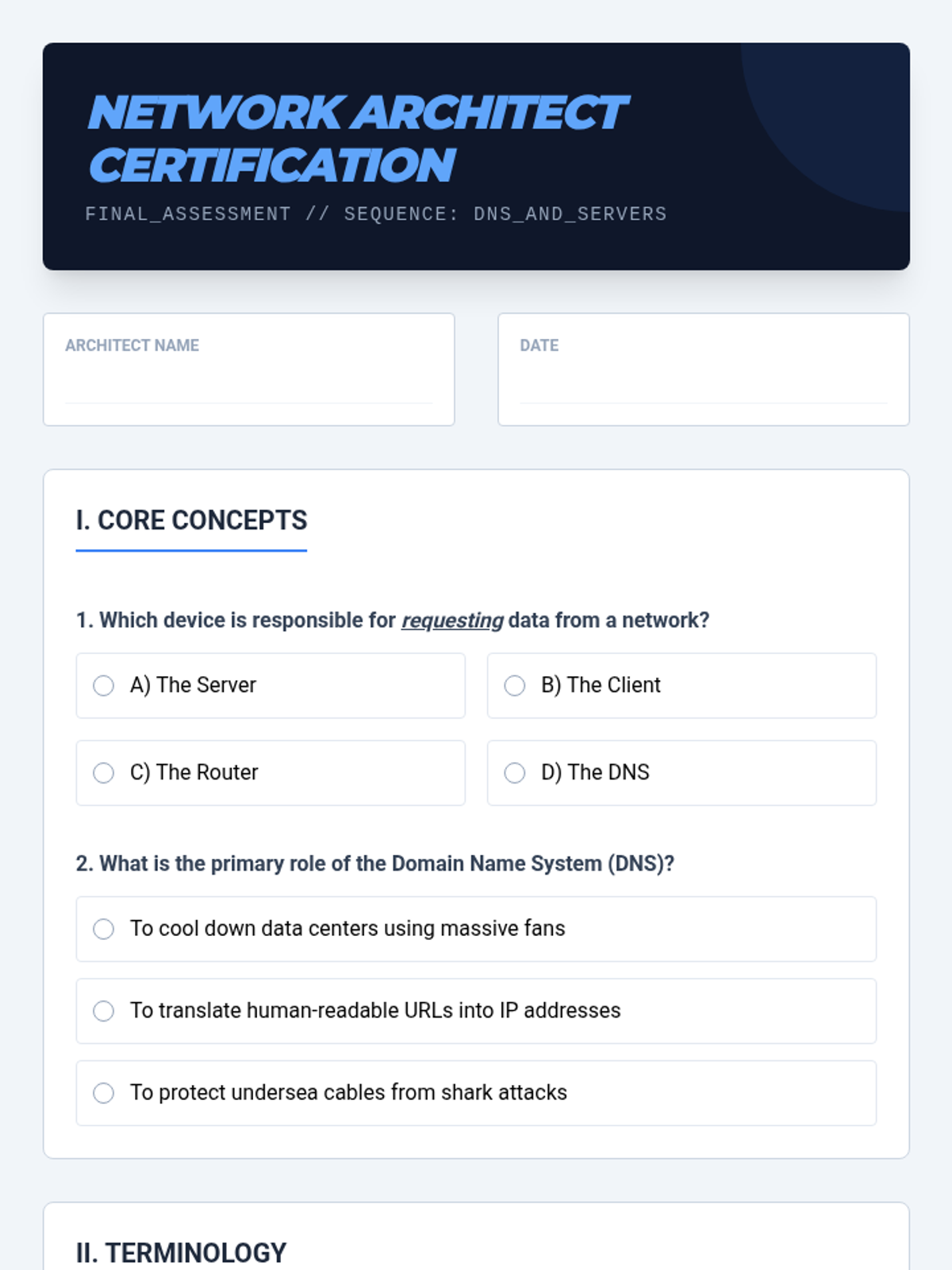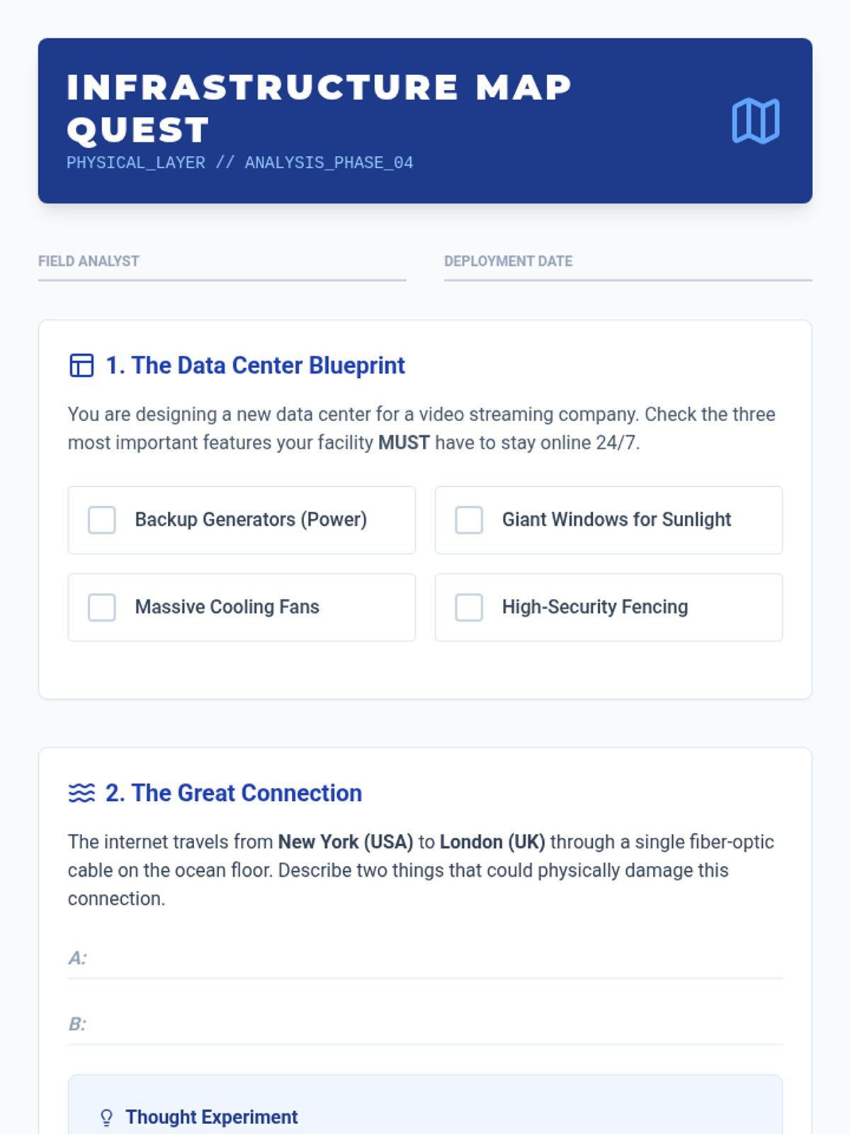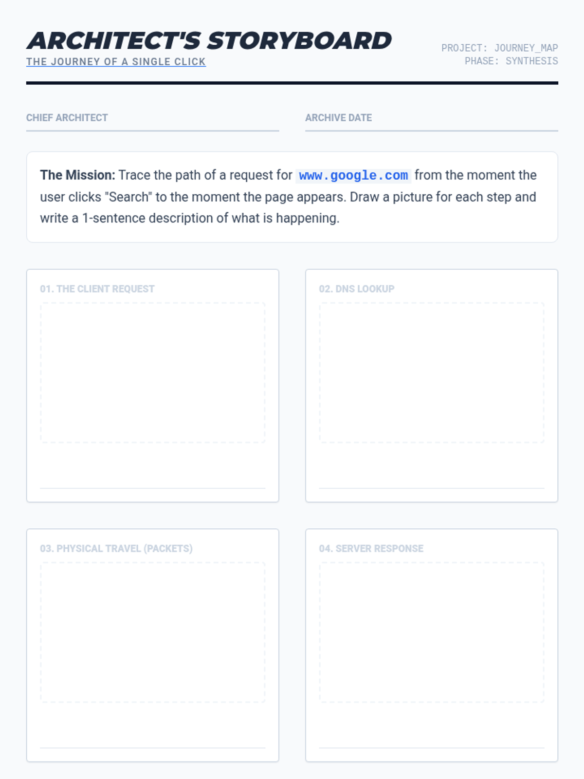 A comprehensive unit on how the internet functions, covering the client-server model, DNS, HTTP, and physical infrastructure. Students transition from users to 'Web Architects' by understanding the request-response cycle and the systems that power the World Wide Web.