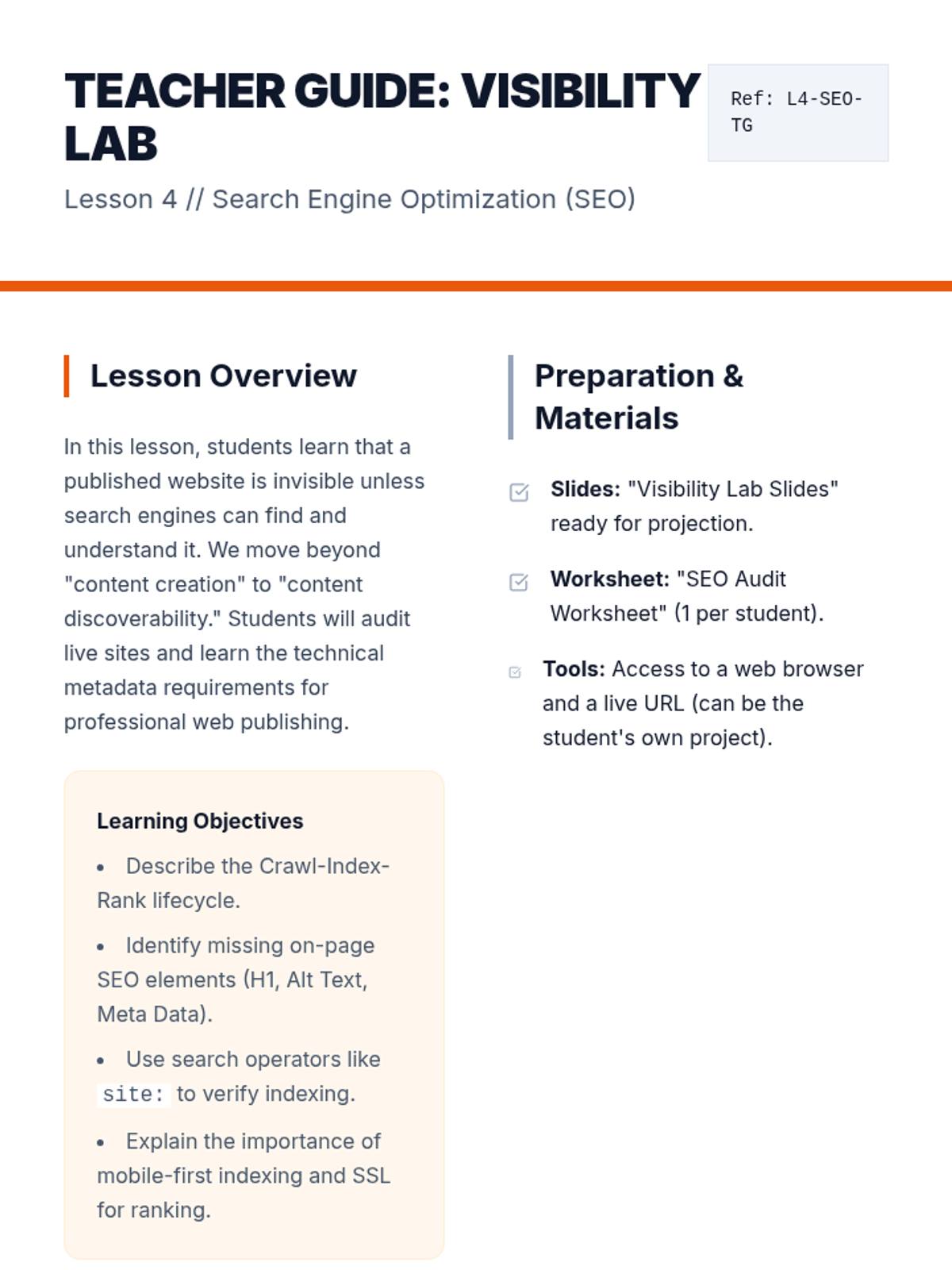 An 11th-grade digital literacy sequence focusing on the principles of User Experience (UX) and Web Accessibility. Students move from theoretical design thinking to practical application of WCAG standards and usability testing.