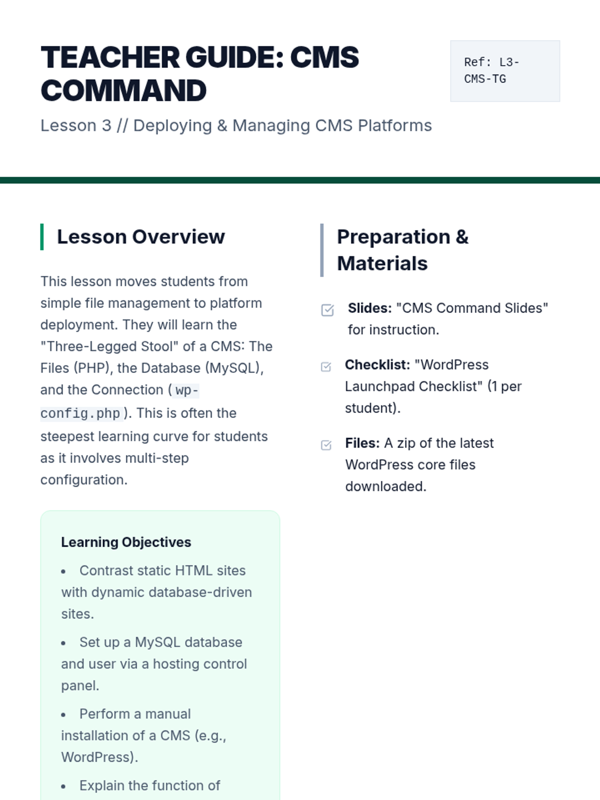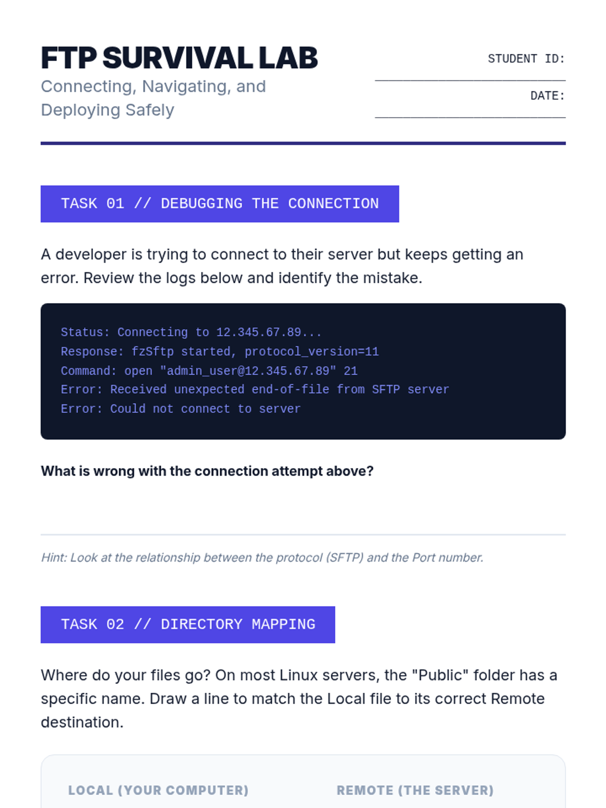 A comprehensive guide to the operational side of web development, covering DNS, hosting types, FTP, CMS deployment, SEO, and site security. Students learn the technical requirements for establishing and maintaining a professional digital presence.