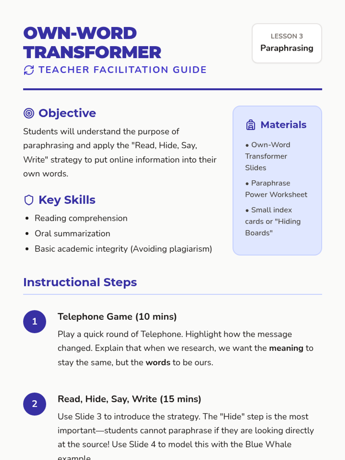 A project-based sequence for 3rd graders on the lifecycle of an online research project, from narrowing topics to synthesizing multiple sources into a mini-report.