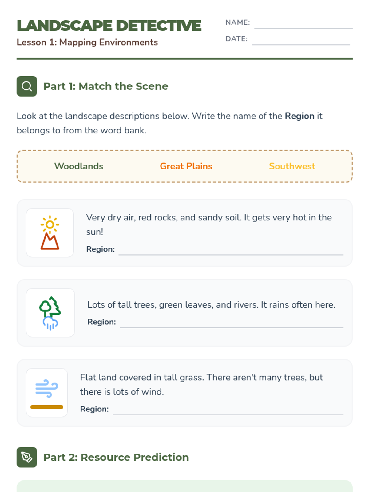 A comprehensive 5-lesson unit exploring the unique geography, climate, natural resources, diverse cultures, and political boundaries of the Southwest region of the United States.