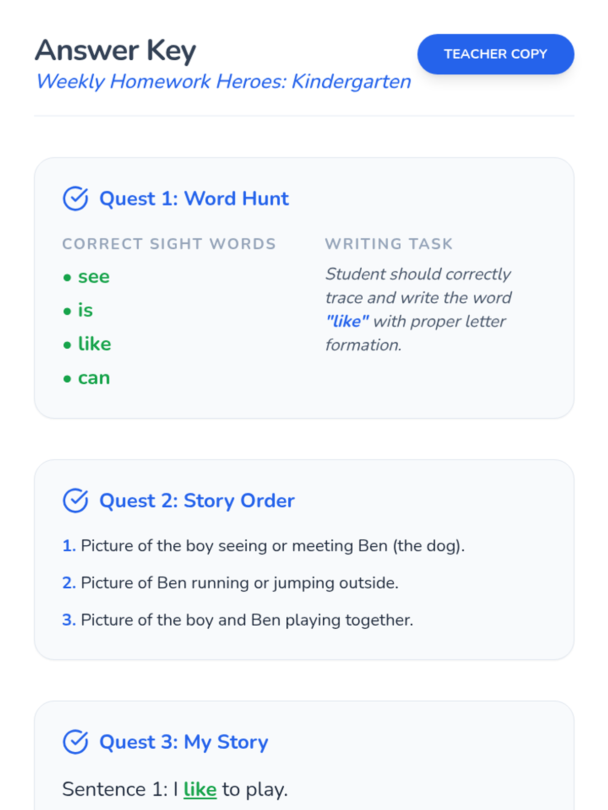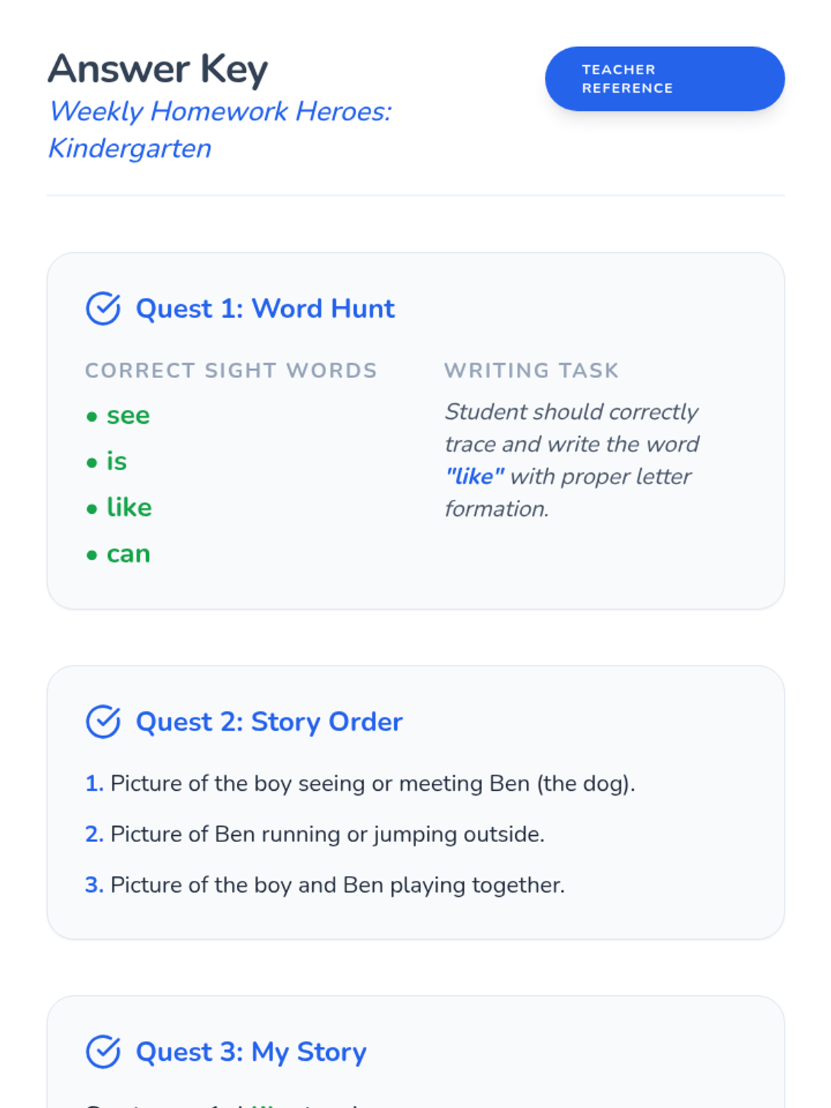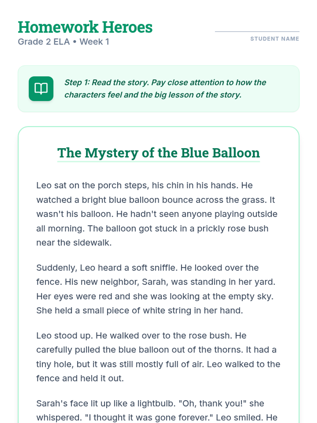 A comprehensive set of tiered ELA homework assignments for Kindergarten, 2nd Grade, and 4th Grade, focusing on level-appropriate reading skills including sight words, main idea, and making inferences.