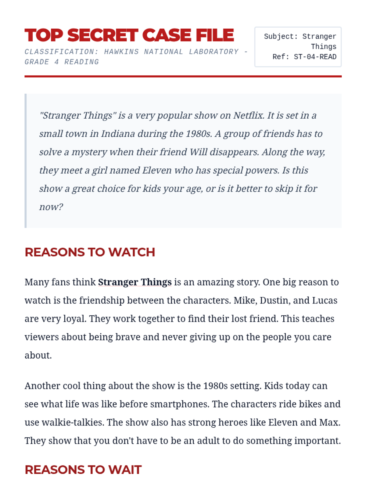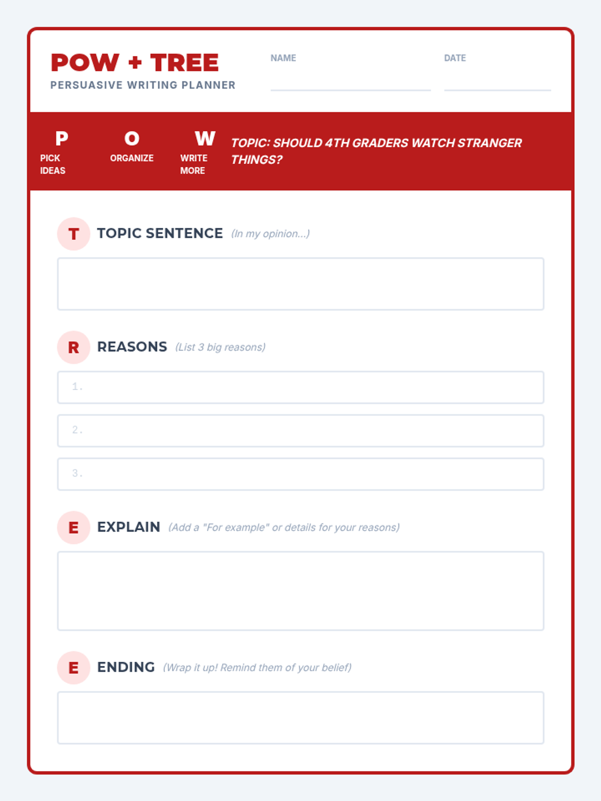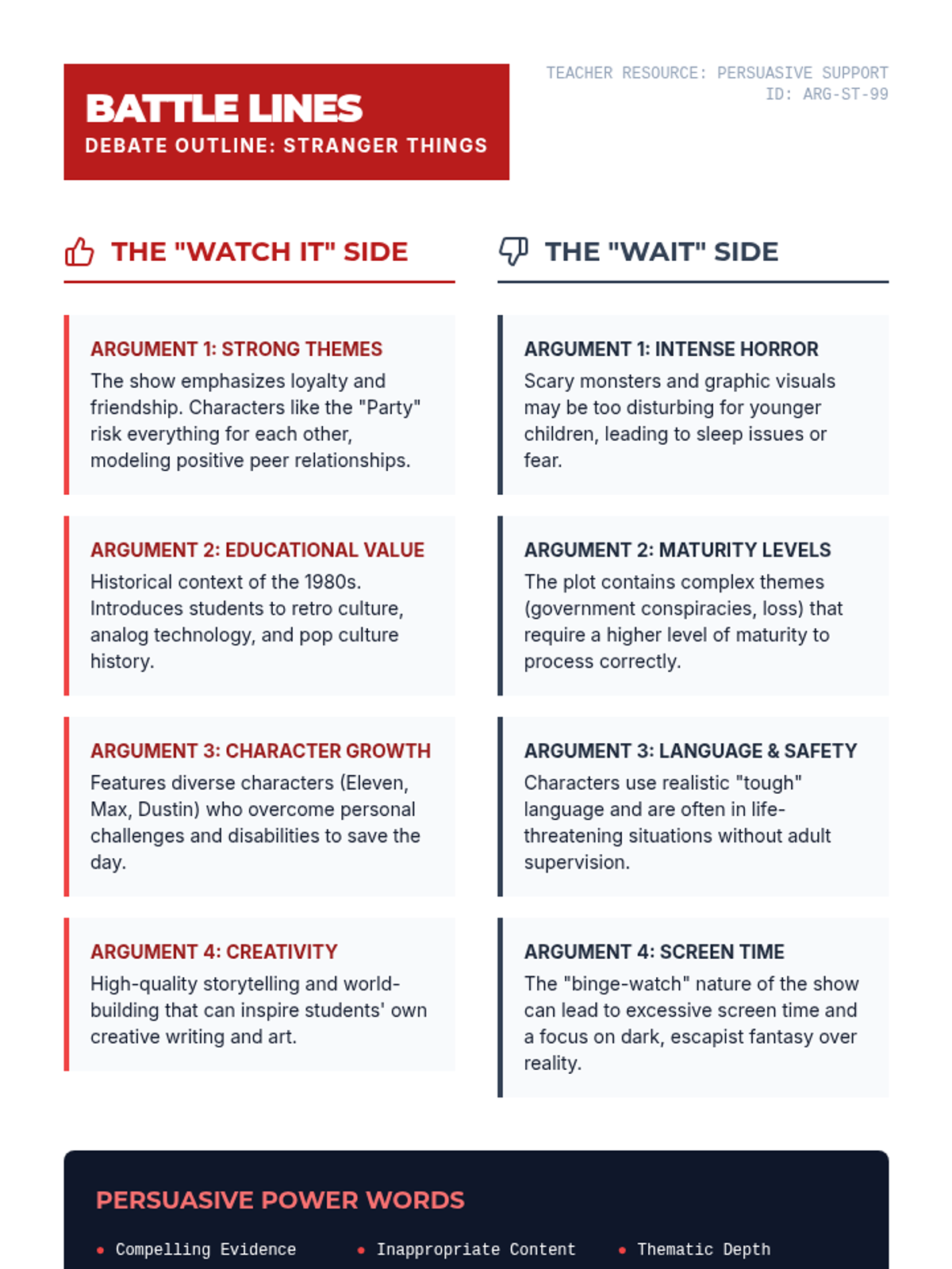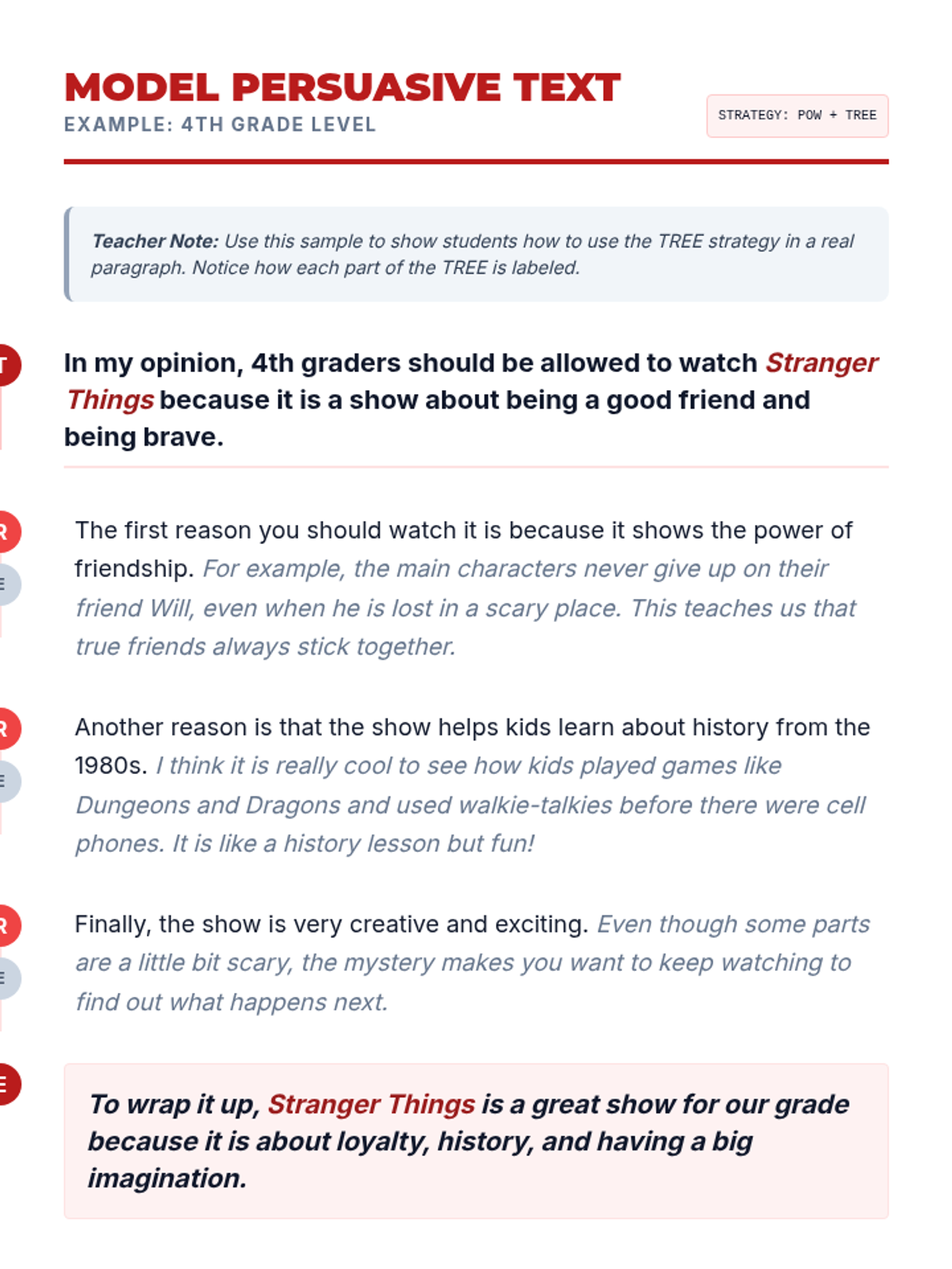 A persuasive writing unit centered on the TV show Stranger Things, using the SRSD (Self-Regulated Strategy Development) framework to help students craft compelling arguments.
