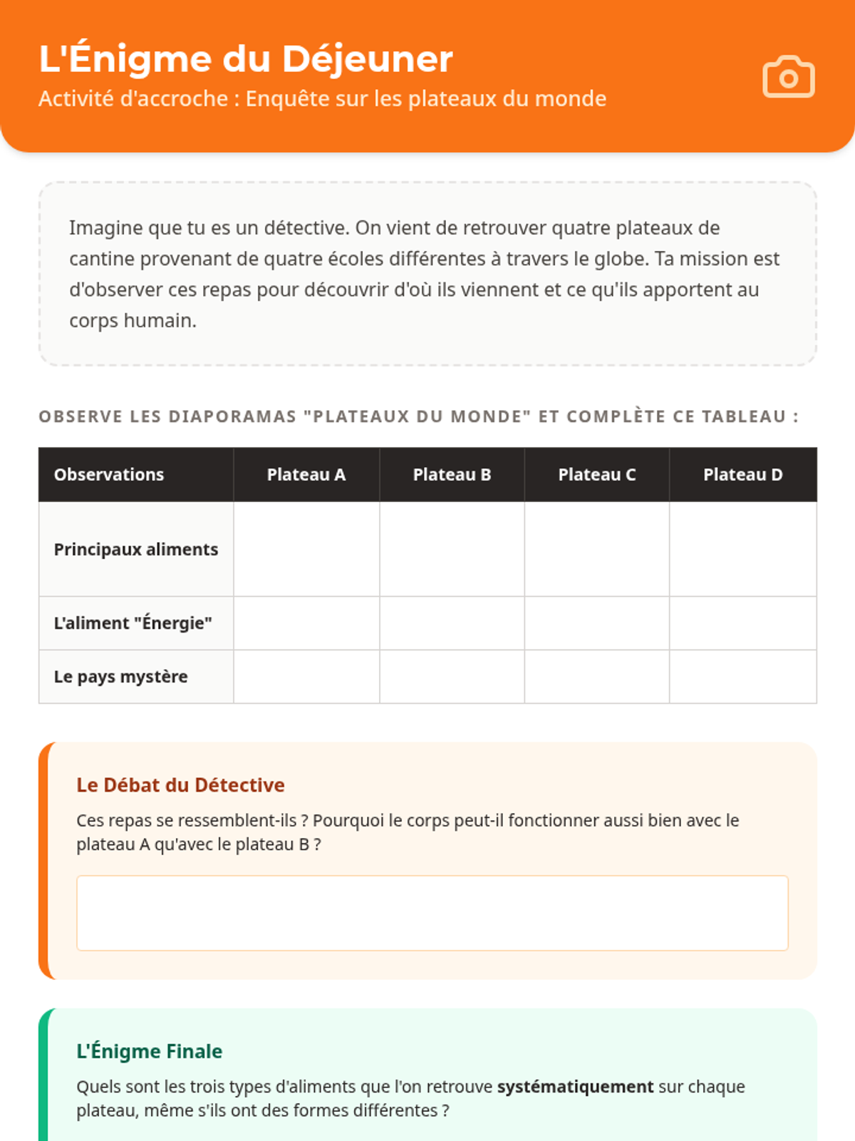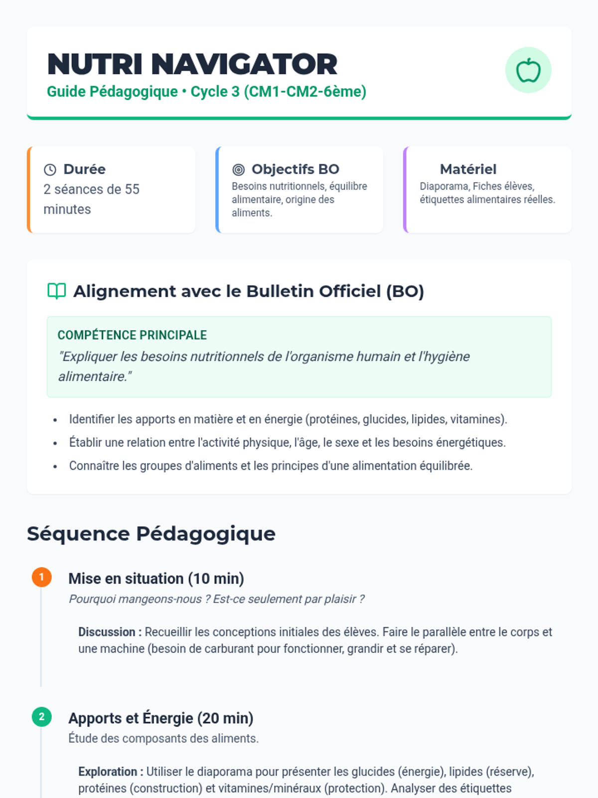 Une séquence complète sur les besoins nutritionnels humains, explorant l'équilibre alimentaire, l'influence des cultures mondiales sur l'alimentation et les modes de production durables.