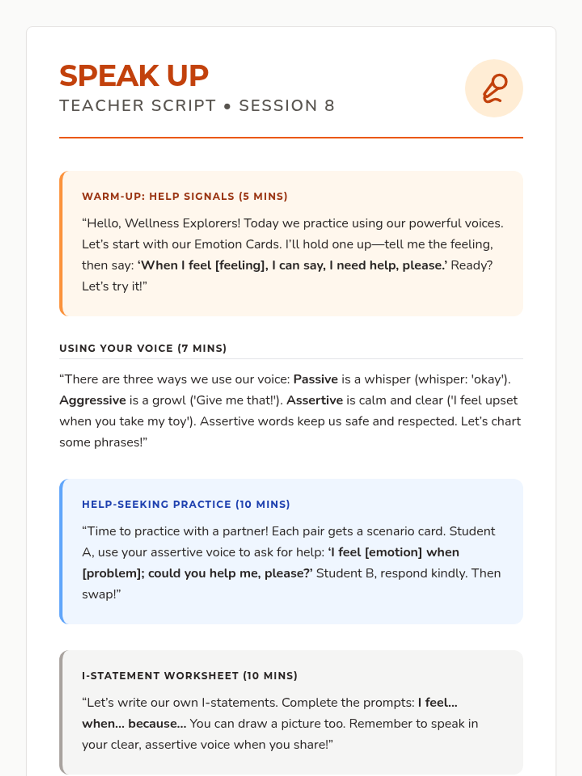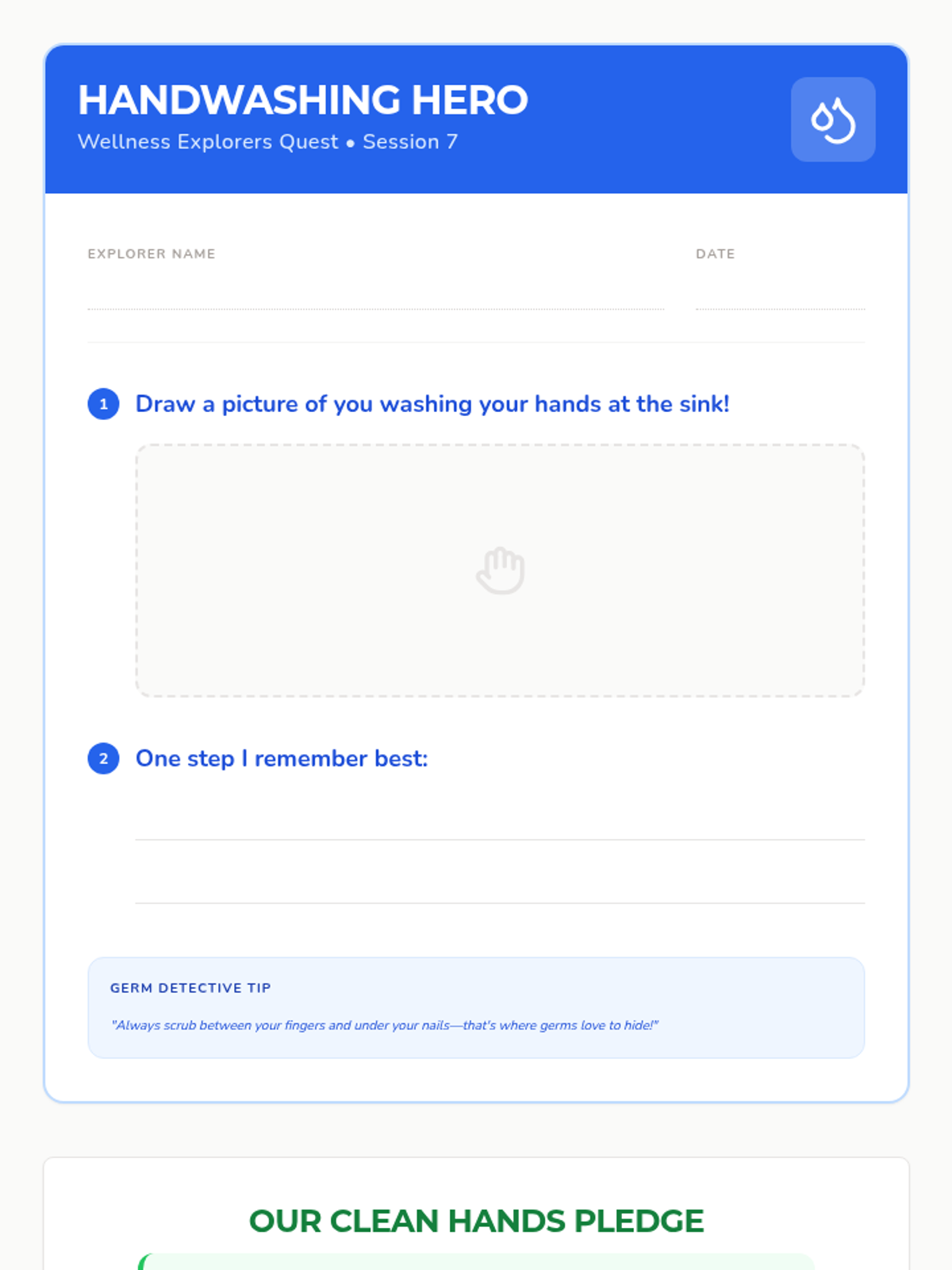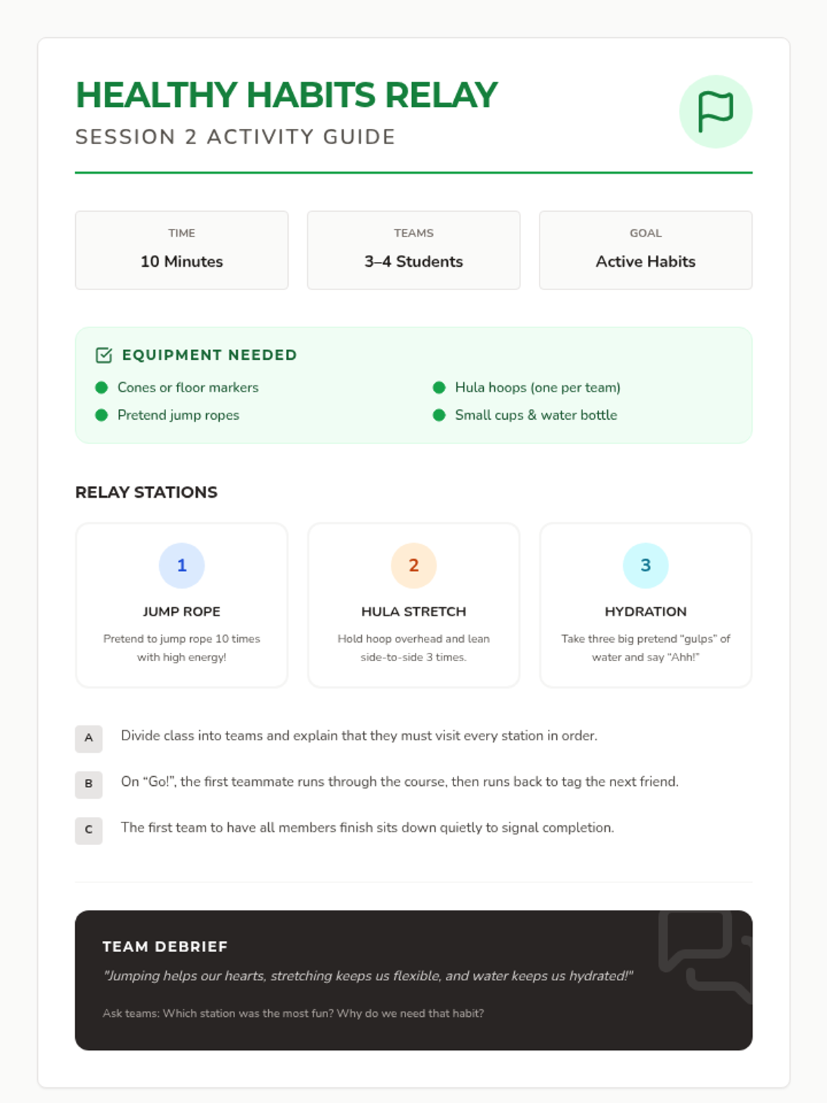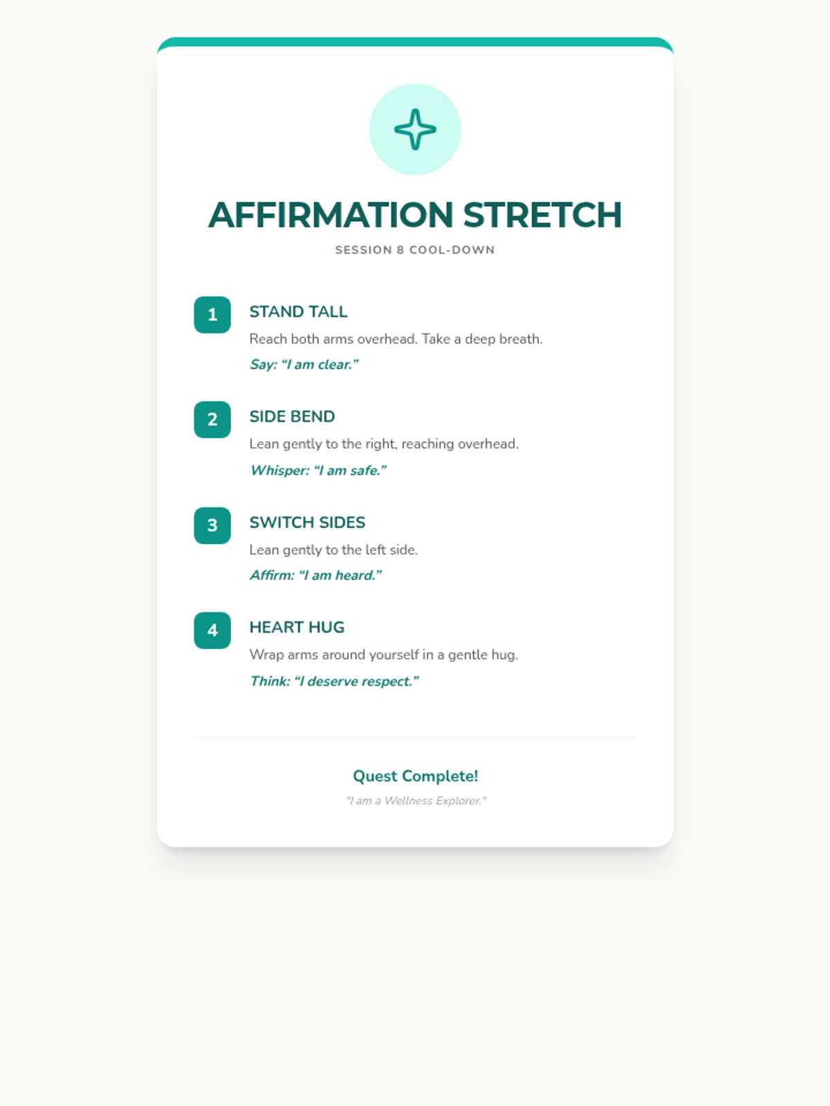 A 12-session group health and wellbeing program for Pre-K–2nd graders exploring functional health, goal-setting, communication, and physical wellness through a 'Quest' theme. This sequence includes the first 8 sessions with complete lesson plans, scripts, and student activities.