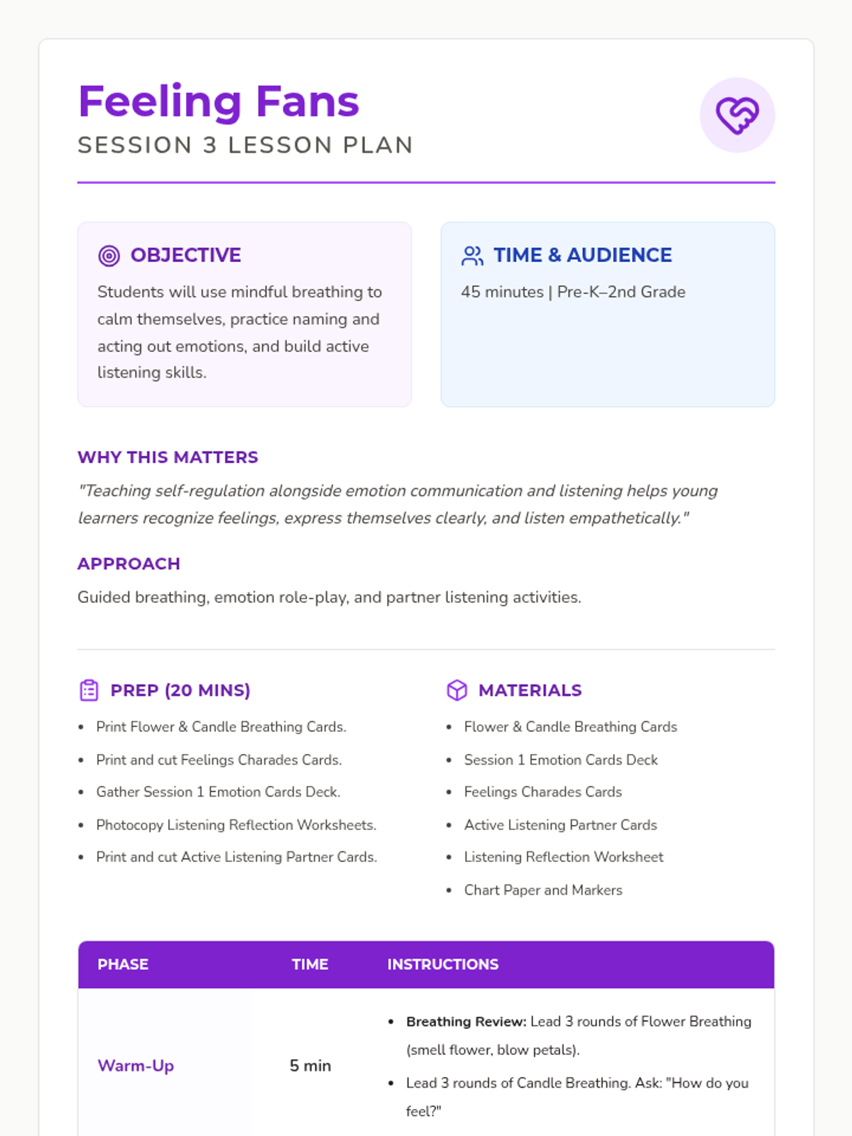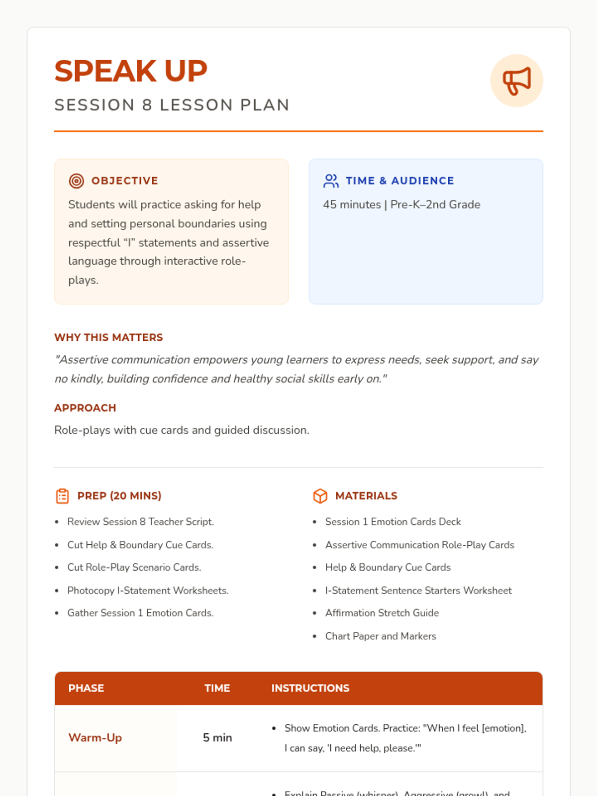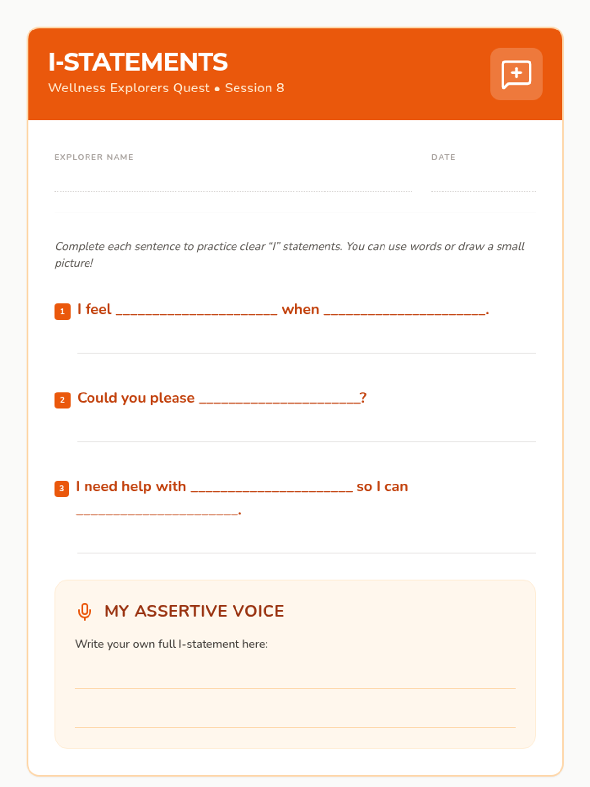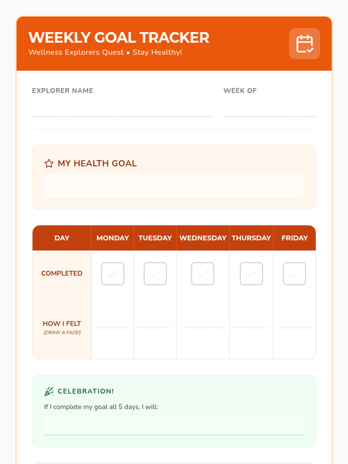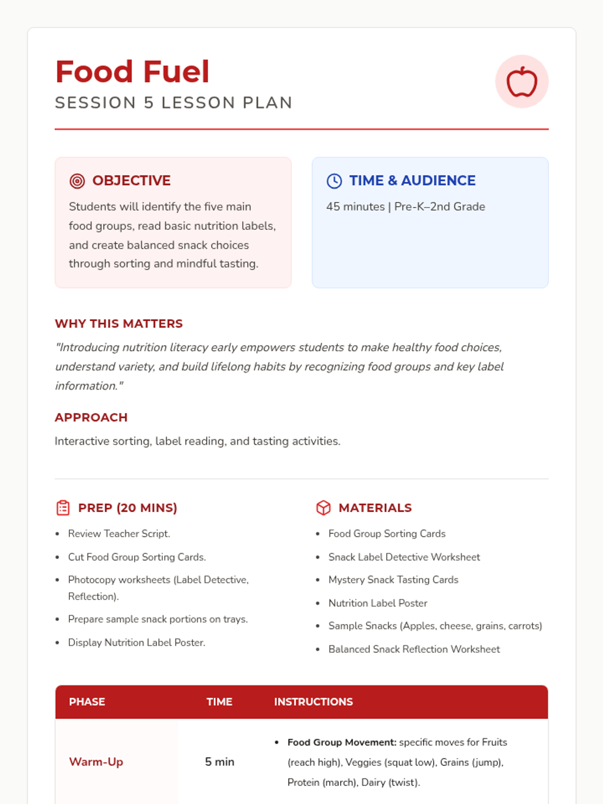 A 12-session group health and wellbeing program for Pre-K–2nd graders exploring functional health, goal-setting, communication, and physical wellness through a 'Quest' theme. This sequence includes the first 8 sessions with complete lesson plans, scripts, and student activities.