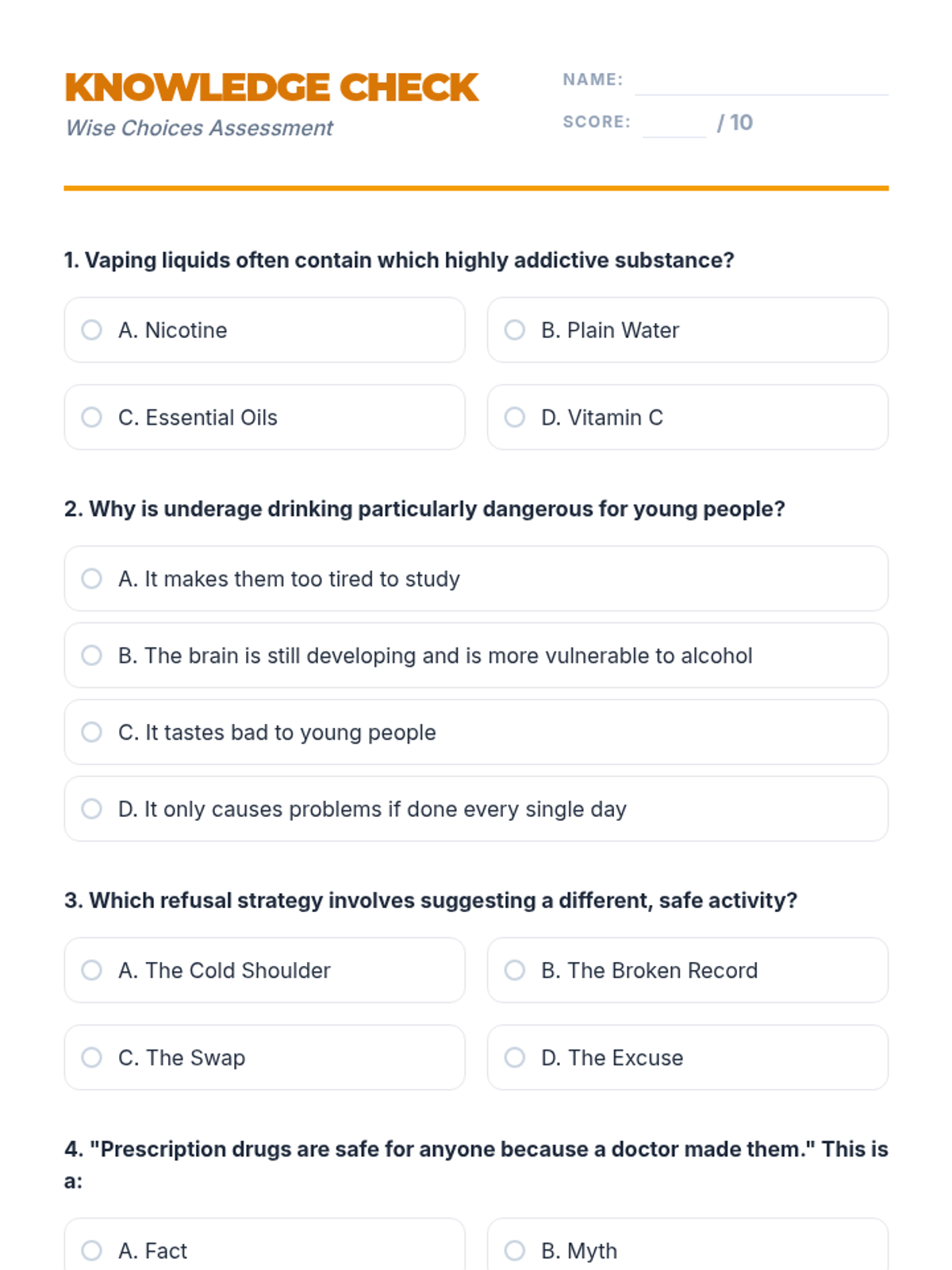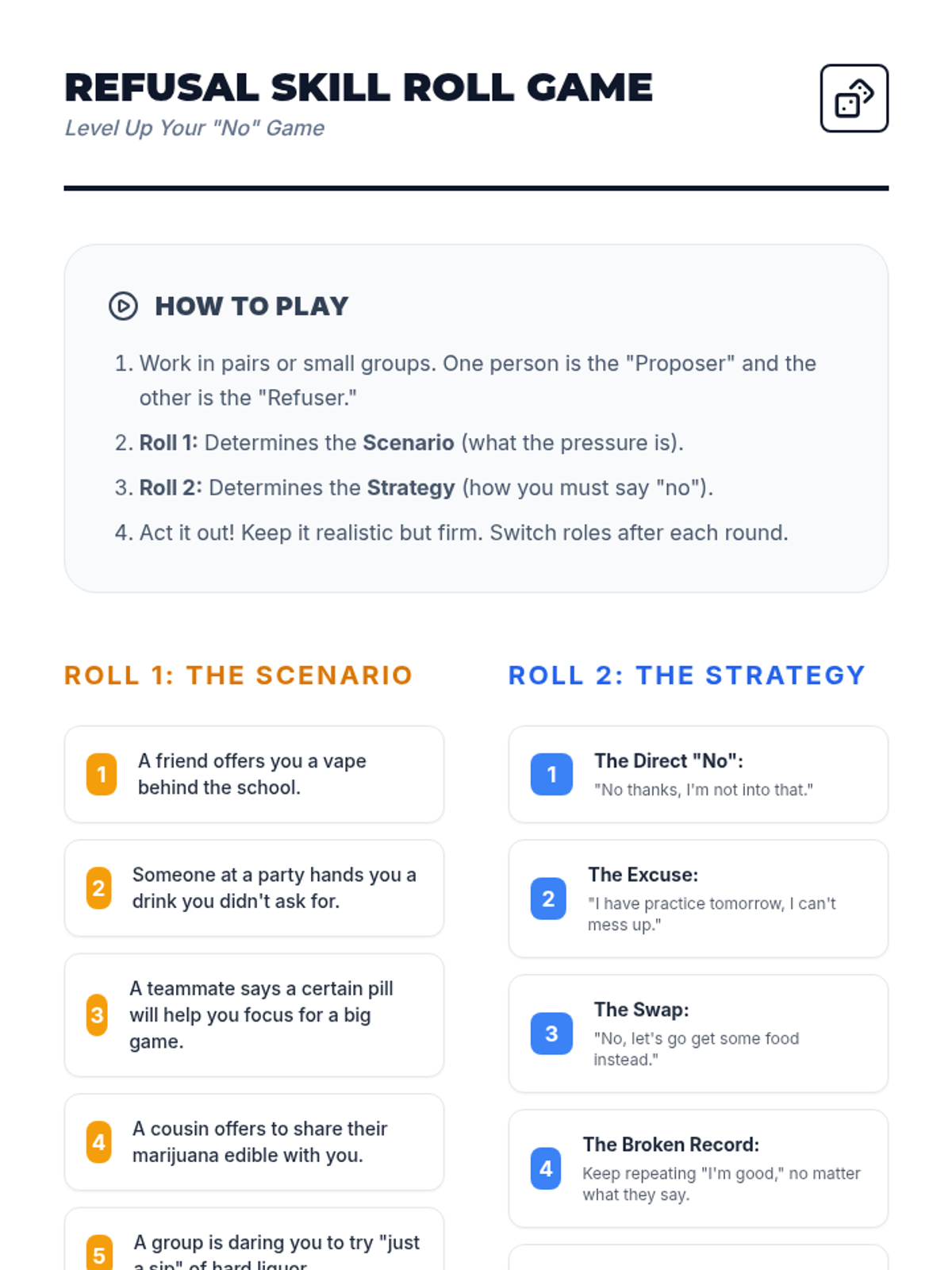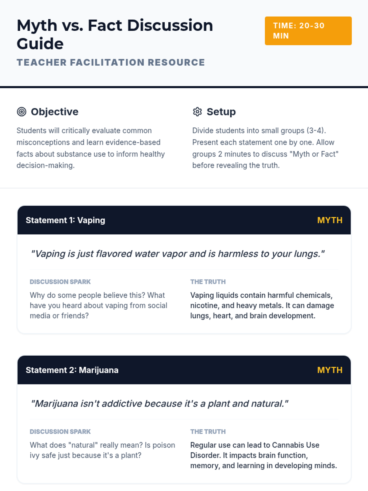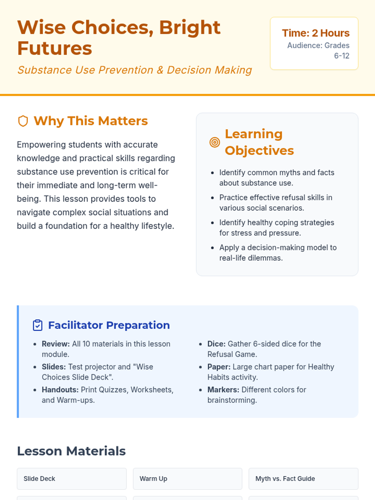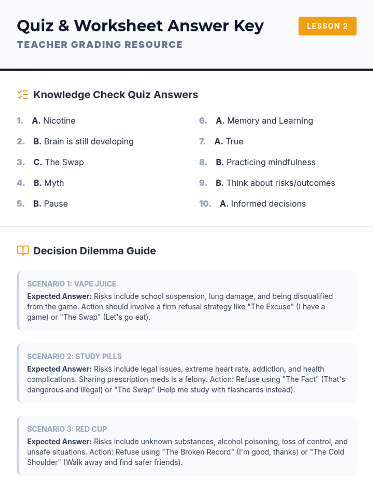 A comprehensive vaping prevention unit that covers health risks, the science of nicotine addiction, and social refusal strategies for middle and high school students.