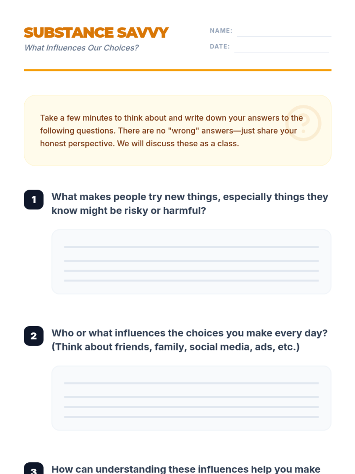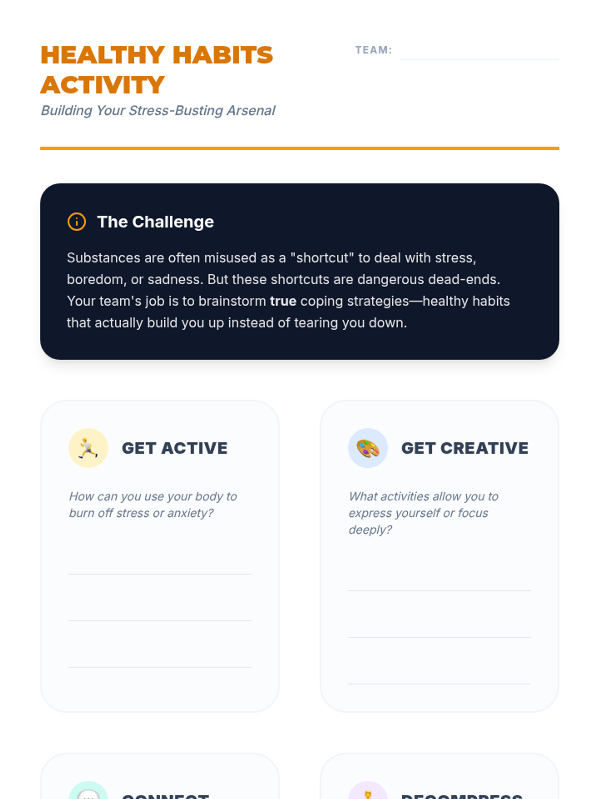 A comprehensive wellness sequence designed for middle and high school students, covering emotional intelligence and substance use prevention through interactive activities and reflection.