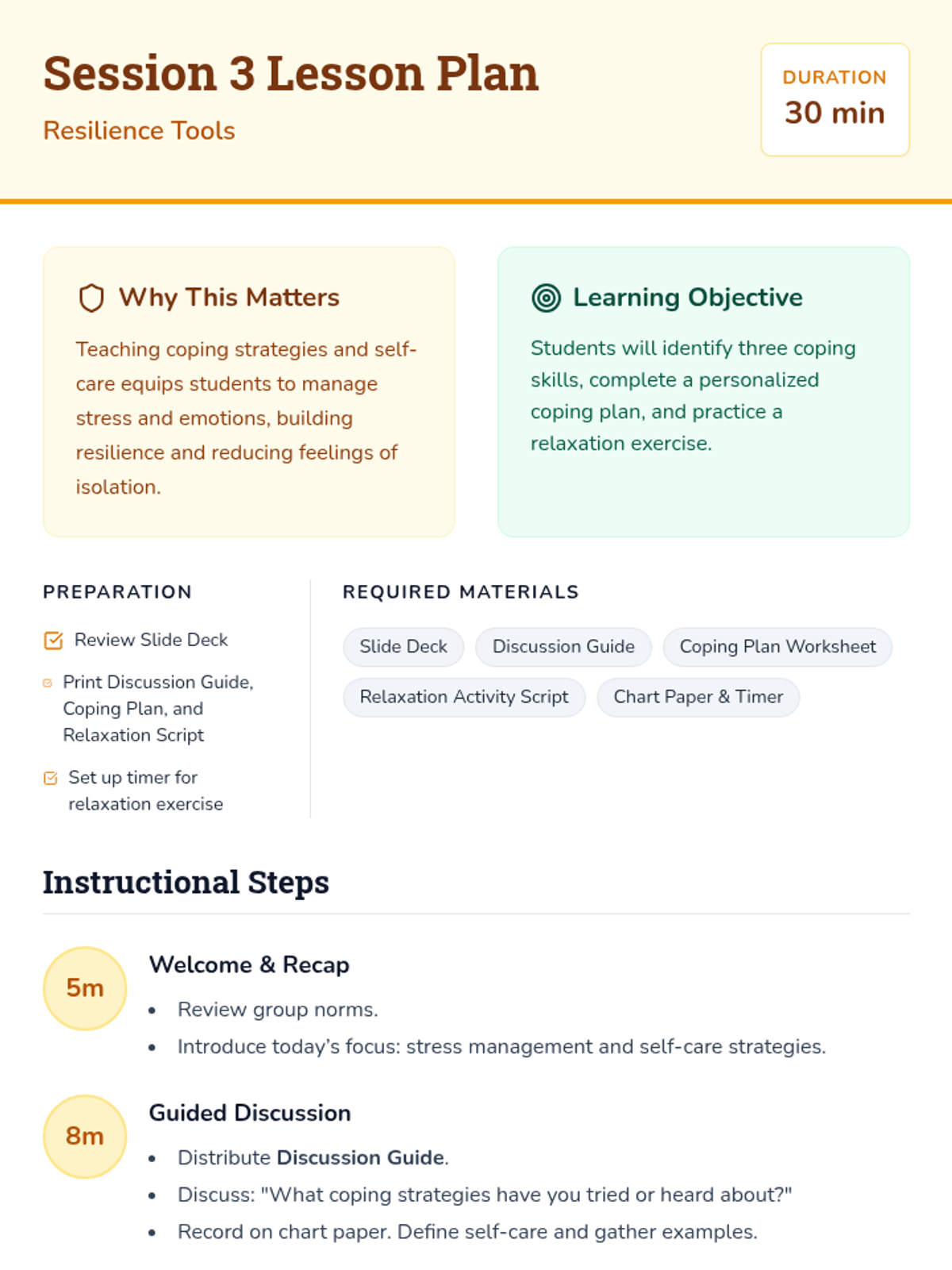 A comprehensive 8-lesson sequence for middle school students to master focus by distinguishing between and managing internal and external distractions. Each 20-minute session provides interactive instruction and practical activities.