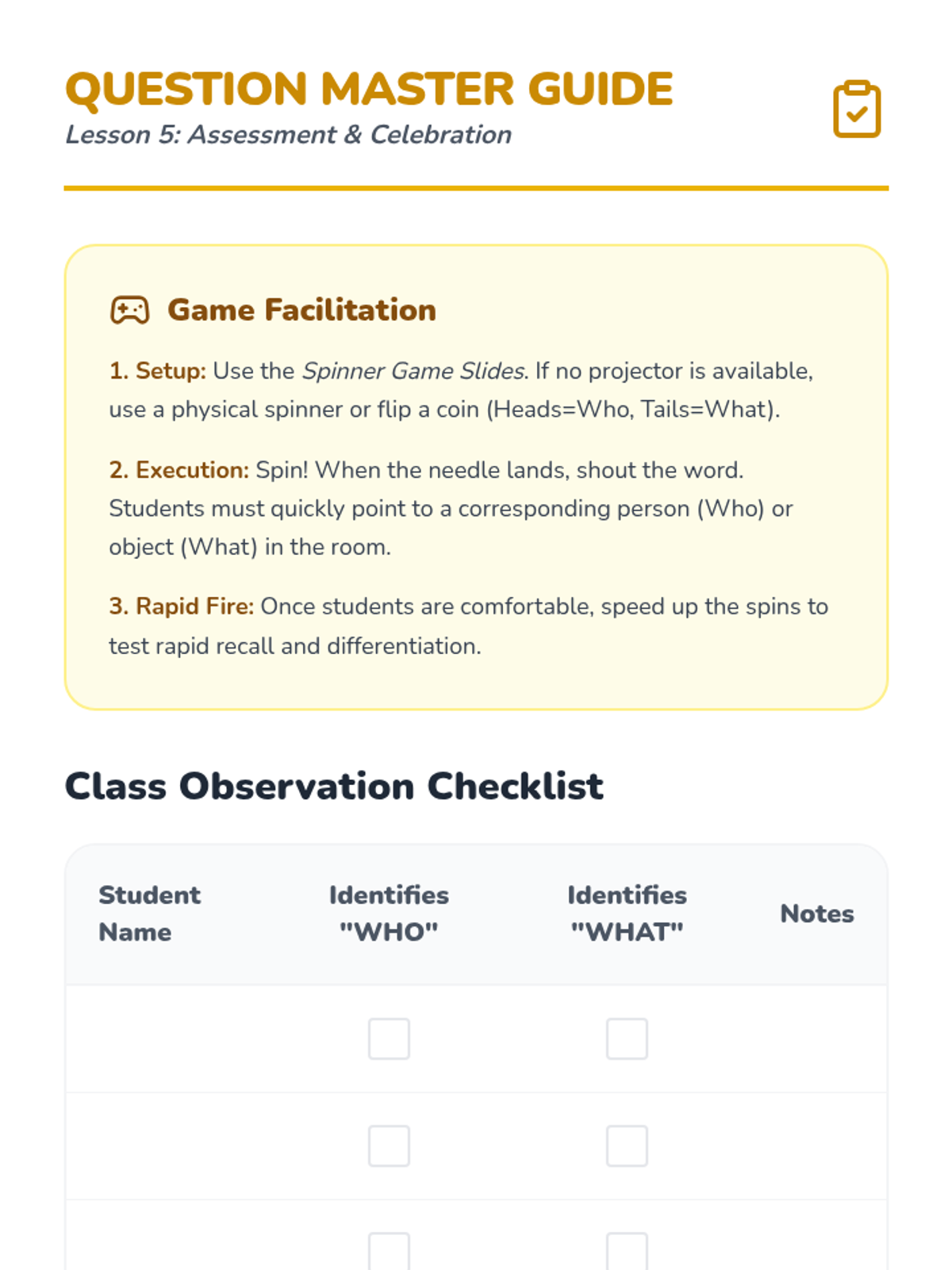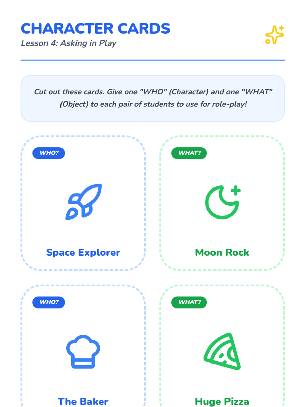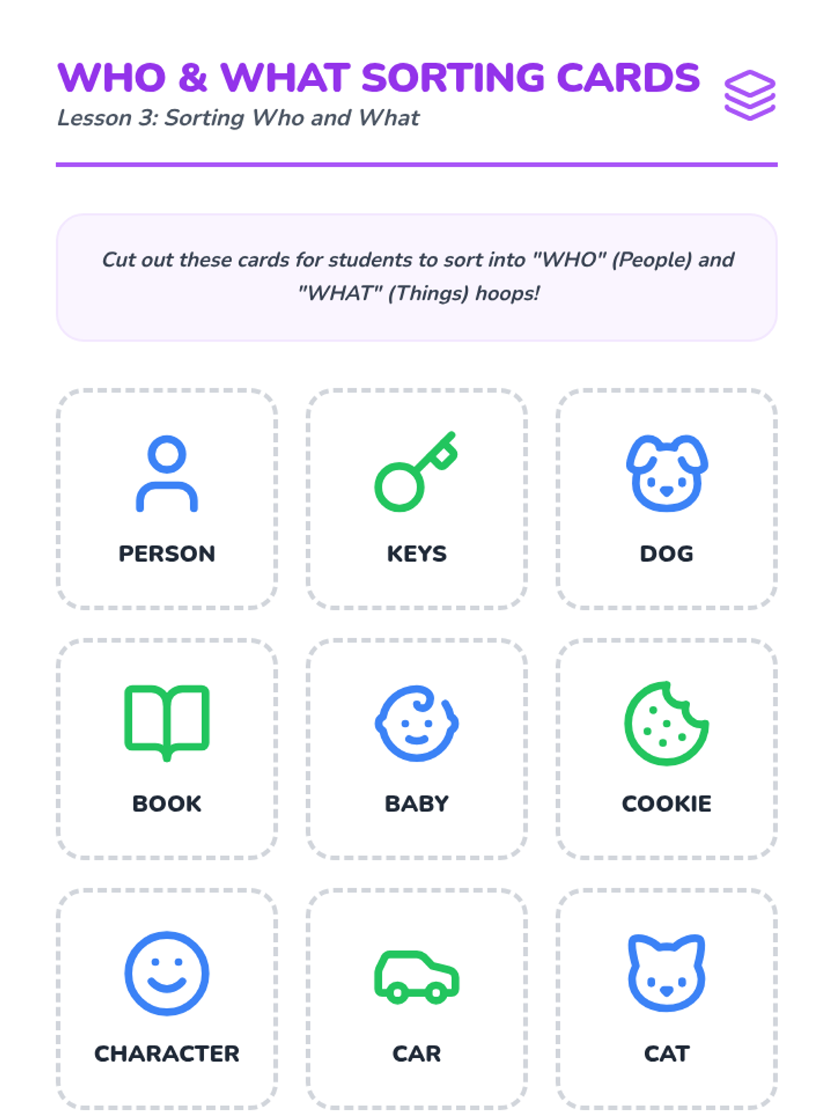 This sequence introduces Pre-K students to 'Who' and 'What' through interactive play, sorting, and dialogue, helping them distinguish between people and objects.