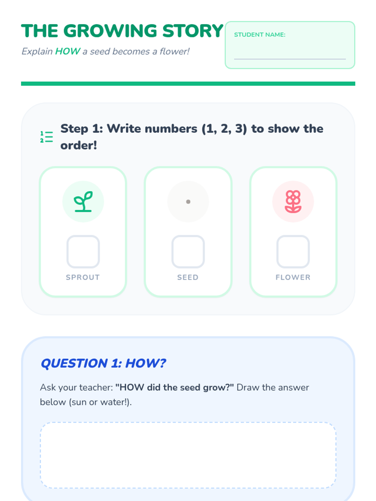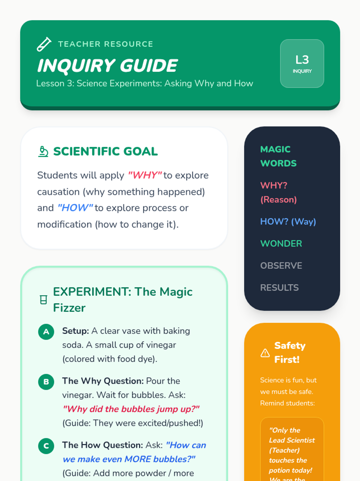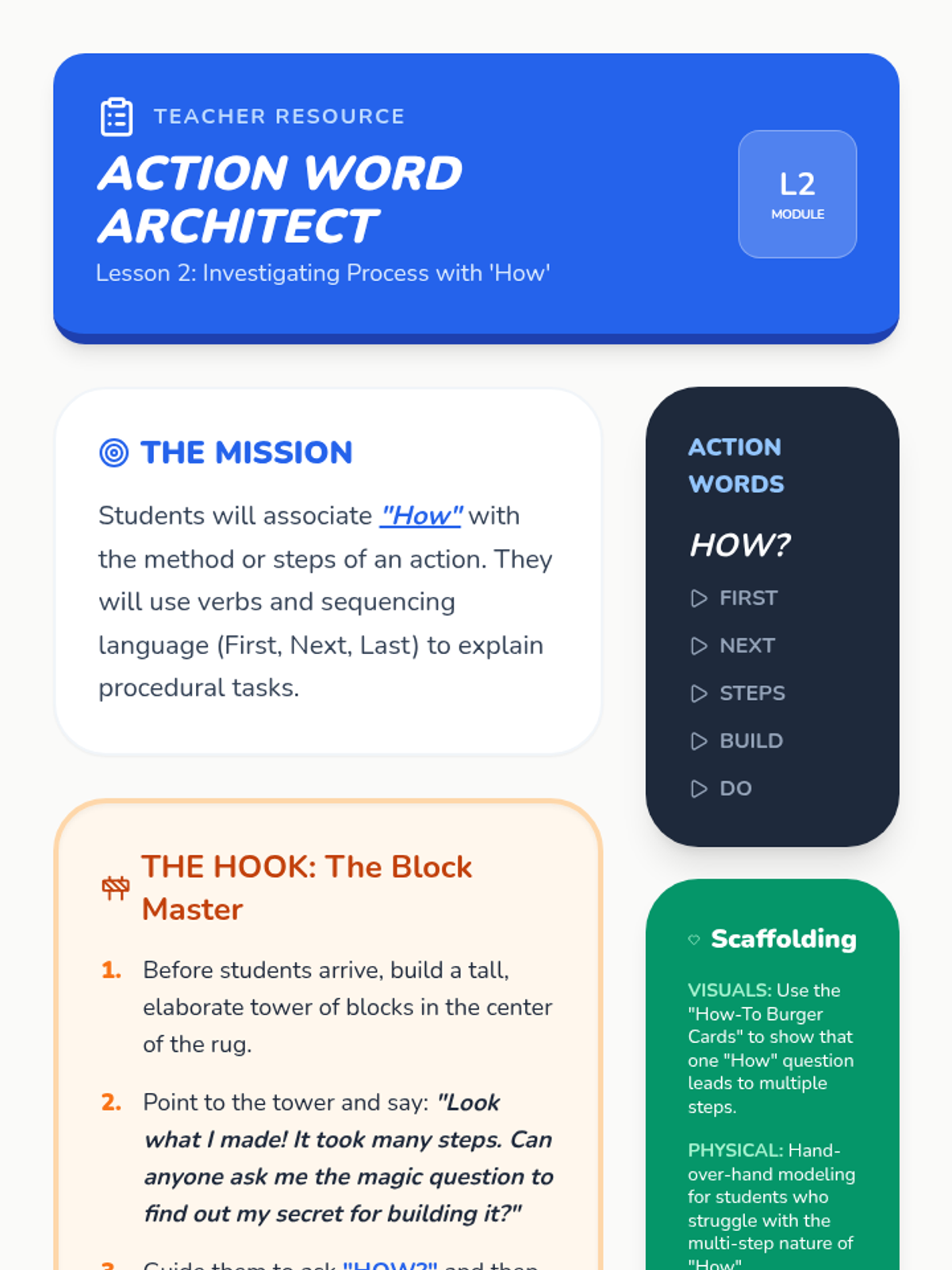 A Pre-K sequence focused on the question words 'Why' and 'How' through social-emotional learning, science, and procedural activities. Students learn to explain reasons for feelings and the steps of a process.