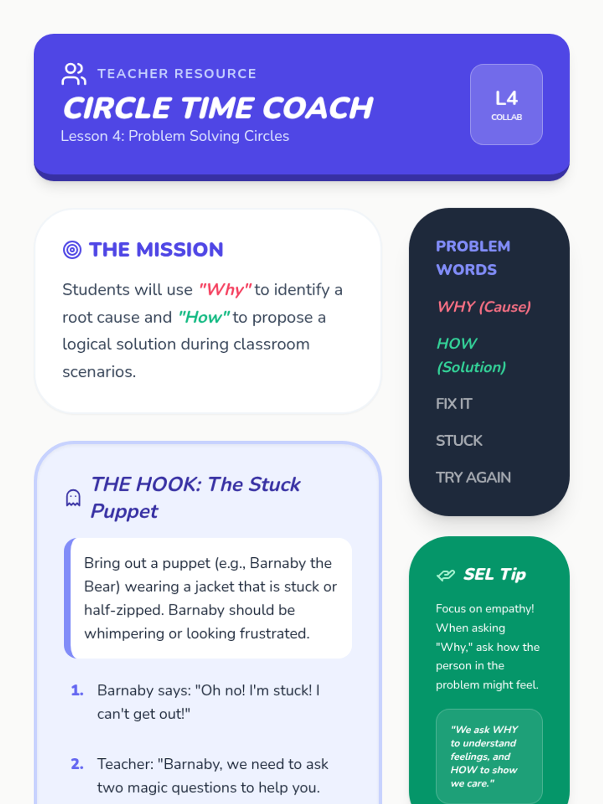 A series of supplementary social-emotional learning lessons for grades K-4, based on the Open Circle Curriculum. These lessons focus on community building, self-awareness, and interpersonal skills.
